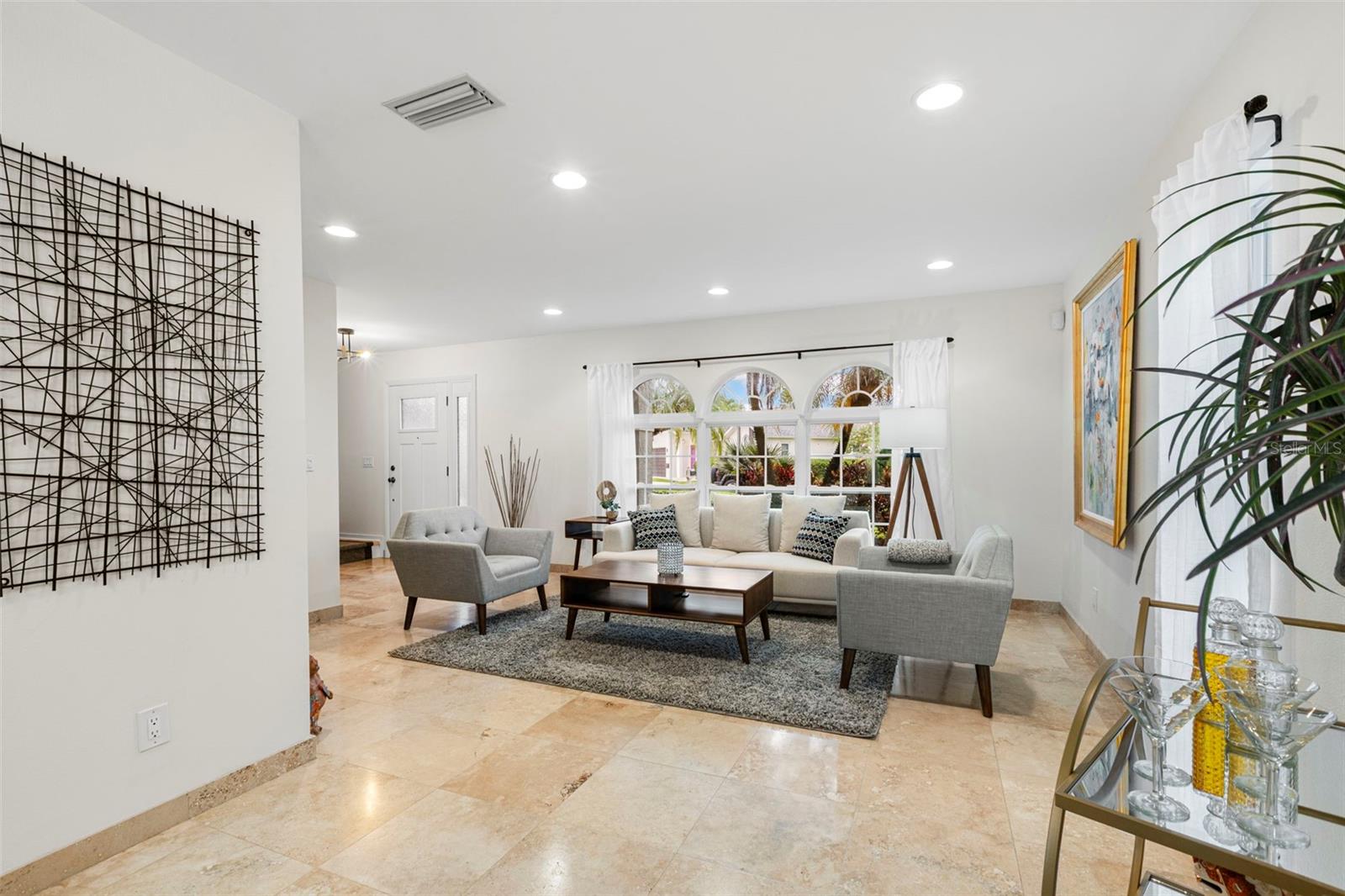 This newly remodeled block construction home has three bedrooms and three full baths. Sitting on nearly a half-acre lot directly on Glen Lake in North Saint Pete with 116 feet of waterfront you can enjoy watching ducks, swans, and egrets from almost anywhere in the house and with no neighbors in the back-just blissful views.Lakefront properties in this neighborhood are rarely available and are highly coveted. You actually own a portion of the lake and are able to fish from your seawall at any time.The home is located in one of the most private, serene and desirable North Saint Pete neighborhoods, Glen Lake Estates.It is truly a place where you know and like your neighbors. This home's interior was designed by a highly sought after local designer. It is freshly painted and showcases brand new true solid oak hardwood floors (not engineered) on the second level and the stairs and gleaming travertine on the main floor. The home has new hurricane windows on both floors and a modern design throughout.The home additionally features all new window treatments, light fixtures, ceiling fans, dimmer switches and upgraded architectural electrical outlets throughout. The roof was installed in December of 2022.The open layout highlights bright interiors and quality craftsmanship. Exterior features include updated landscaping and gorgeous towering oak trees and fancy palms, a spacious paver patio ideal for BBQs and entertaining, and a 2-car garage with ample parking. Offering both privacy and convenience, this property blends modern style with lasting value in one of the area’s most idyllic locations. The seller is willing to sell this custom-designed home furnished.Truly turnkey and ready to impress. With underground utilities, newly laid fiber optic, just minutes from I-275 the home is located only a few miles from downtown Saint Petersburg, the airport, South Tampa and the beaches.