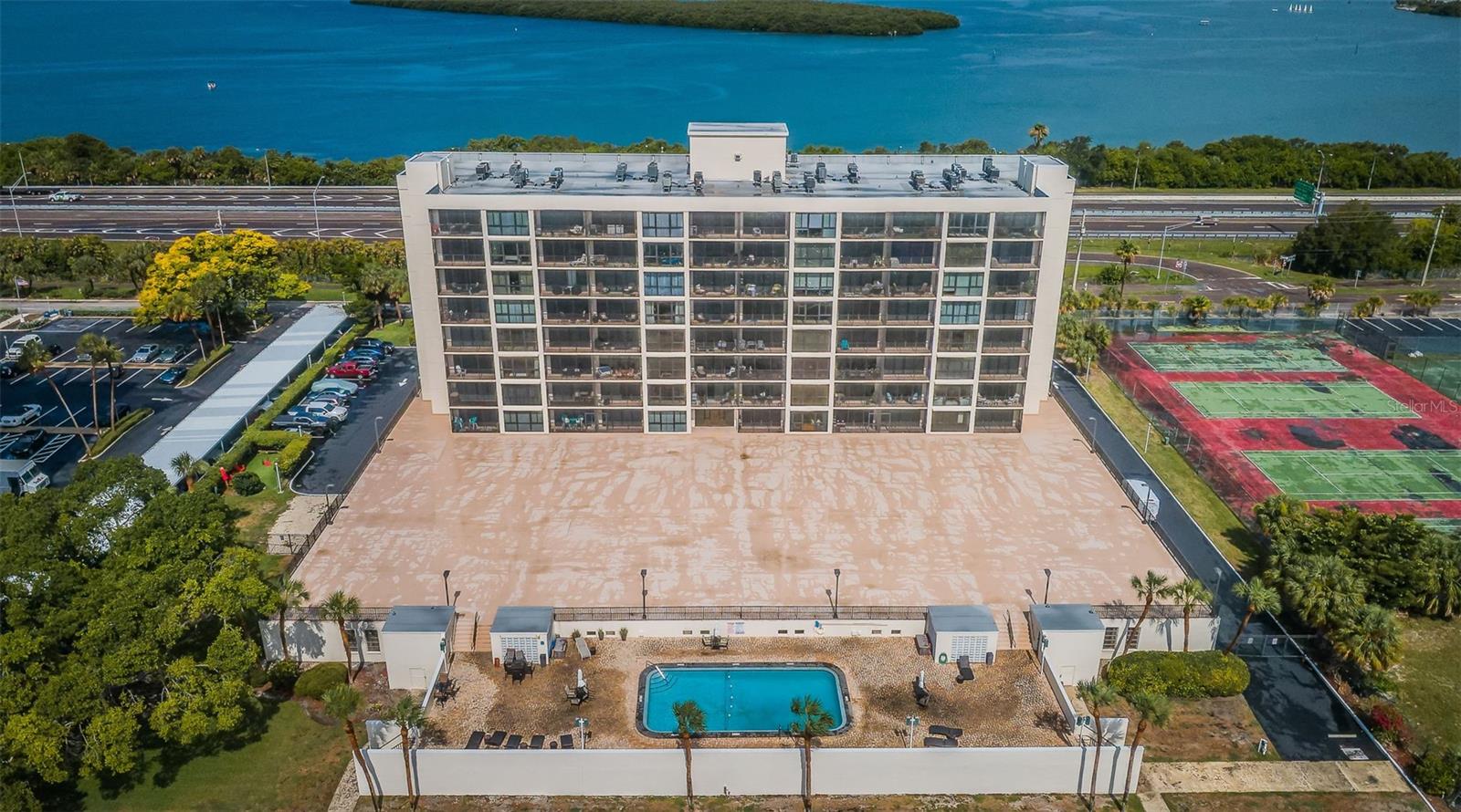 One or more photo(s) has been virtually staged. Welcome to Florida living at its FINEST! You have found Paradise on this Sixth floor 2 bedroom, 2 bath END UNIT Condo. Step inside this bright gem and be impressed with the straight on water view of Tampa Bay with the most vibrant and ravishing western SUNSETS. Enjoy natural light with the floor to ceiling windows in every room. Your days and nights will be filled with watching the dolphins, manatees, boats and birds from EVERY ROOM! This condo offers 2022 HVAC, 2020 hot water heater, washer hookup in the unit, laminate flooring throughout, new lighting fixtures, ceiling fans and wood kitchen cabinets with granite in-lay counter tops, plus so much more. The $1006.89 monthly HOA fee covers cable, internet, escrow reserves, building insurance, exterior building and grounds maintenance, outside pest control, water, sewer, trash, pool, recreational amenities, and secure building entry. The Bridgeton building is well maintained with fully renovated lobby, new flooring in common areas, freshly painted exterior and is FULLY FUNDED, have completed the MILESTONE INSPECTION / HOA STUDY for the 2022 Condo Guidelines. One small (16-35) Pet is ALLOWED with a dog walking area next to the building. There is a laundry facility on every floor, an enclosed garage with assigned parking, a secure storage unit on the garage level, private dock, and a heated pool that overlooks sparkling Tampa Bay. This is one of St Petersburg’s most sought after areas and is situated close to the Interstate, St Petersburg Country Club, Boyd Hill Nature Preserve, Pinellas Bayway, The Sunshine Skyway Bridge, and offers easy access to our award-winning Gulf Beaches, vibrant Downtown St Petersburg, Eckerd College, and all the new and exciting developments of The Skyway Marina District. If you have been searching for an incredible waterfront property in an amazing location, here it is!! This condo is ready for its NEW OWNER! Call today for your private showing of this wonderful unit!