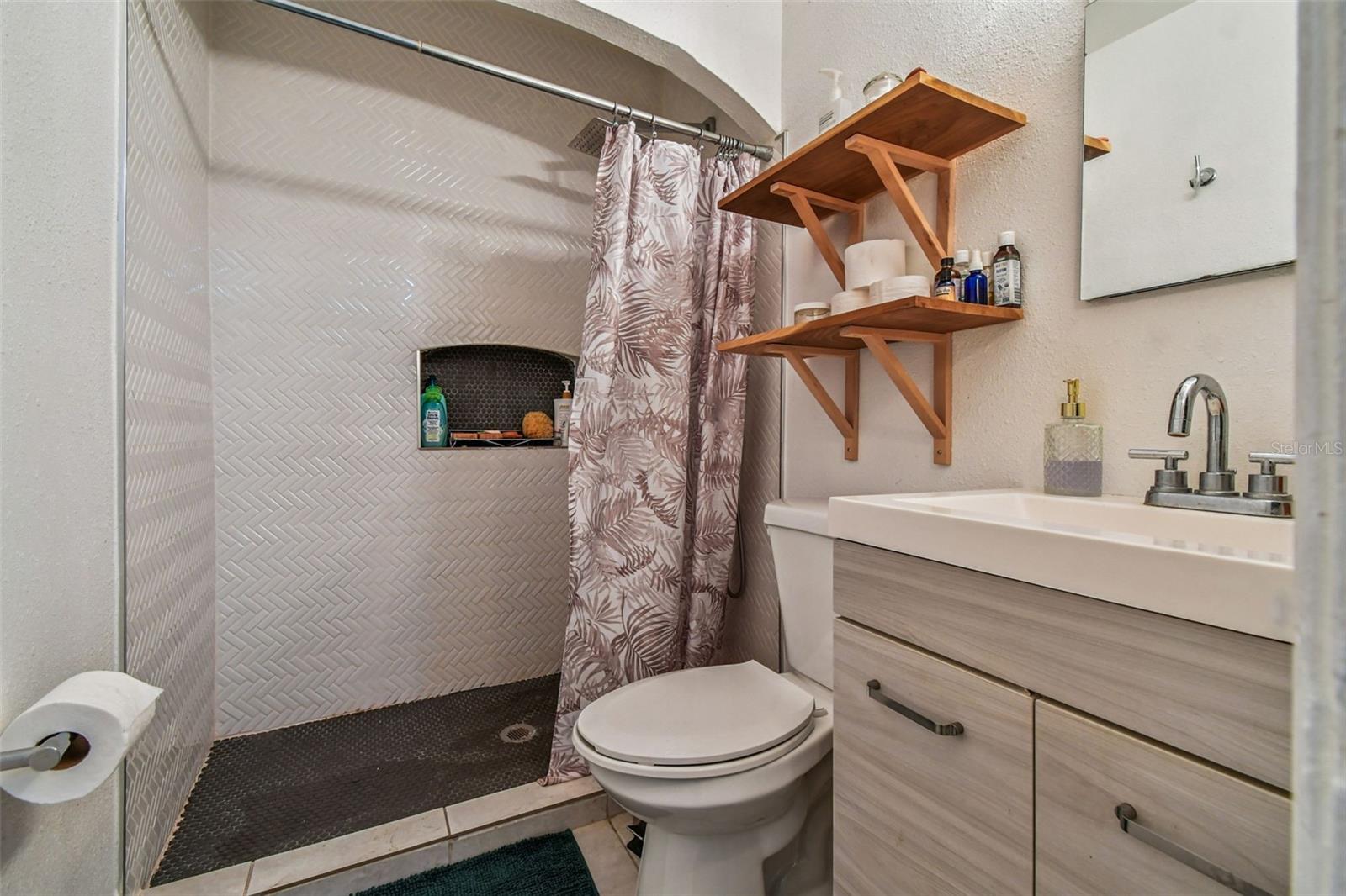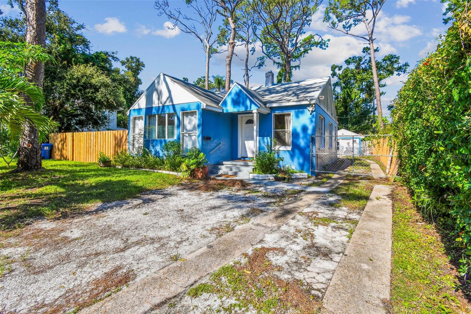 Welcome to this rare double-lot property offering a beautifully updated 3-bedroom, 1-bath main home plus a 1-bedroom, 1-bath guest house with kitchenette. Whether you’re an investor seeking rental income or a homebuyer looking to offset your mortgage, this home delivers exceptional value and versatility. Inside the main home, you’ll love the open, light-filled floor plan, perfect for entertaining or quiet evenings at home. The sunroom/Florida room is a flexible bonus space ideal for a home office, yoga studio, gym, or cozy library. The two spacious bedrooms in the heart of the home each feature walk-in closets with custom shelving, offering ample storage. The third bedroom is in the back of the home and also offers a walk in closet. The bathroom boasts a spa-like shower with a rainhead and handheld fixture for a touch of luxury. The kitchen is a true showstopper with granite countertops, a large eat-in bar, modern stainless steel appliances, solid wood cabinets, and a deep double-basin undermount sink; plenty of space for cooking and hosting. The guest house impresses with its high ceilings, solid wood butcher block countertops, spacious cabinetry, and private entrances - one to the living room and one to the backyard. A separate bedroom and bathroom with an enclosed toilet room make it a functional and private retreat for tenants, guests, or extended family. Situated on a 10,415 sq. ft. double lot, the outdoor possibilities are endless - envision a pool, garden, outdoor kitchen, and more. Enjoy evenings around the fire pit, summer barbecues, or simply soaking up the Florida sunshine. The yard can even be fenced to create separate private spaces for the main and guest homes, maximizing rental potential. This home comes with numerous updates and peace of mind: Roof (2017) New AC, ductwork, and insulation (2023) Water heater (2023) Upgraded 200-amp main breaker panel (2020) The property incurred no flooding during recent storms. During Hurricane Milton, a fallen tree caused damage to the flat roof over the rear room, but it was professionally repaired along with new insulation and drywall, ensuring the home is in excellent condition. Located in South St. Pete, this home is just minutes from downtown, multiple parks, beautiful Gulf beaches, shopping, dining, Skyway and 275 access. With the neighborhood continuing to grow and attract new development, this property is perfectly positioned for long-term value and appreciation. Please note: There are large dogs on the property. Please do not approach property. All showings must be scheduled by appointment only through the listing agent. Schedule your private showing today to uncover the potential this property holds!