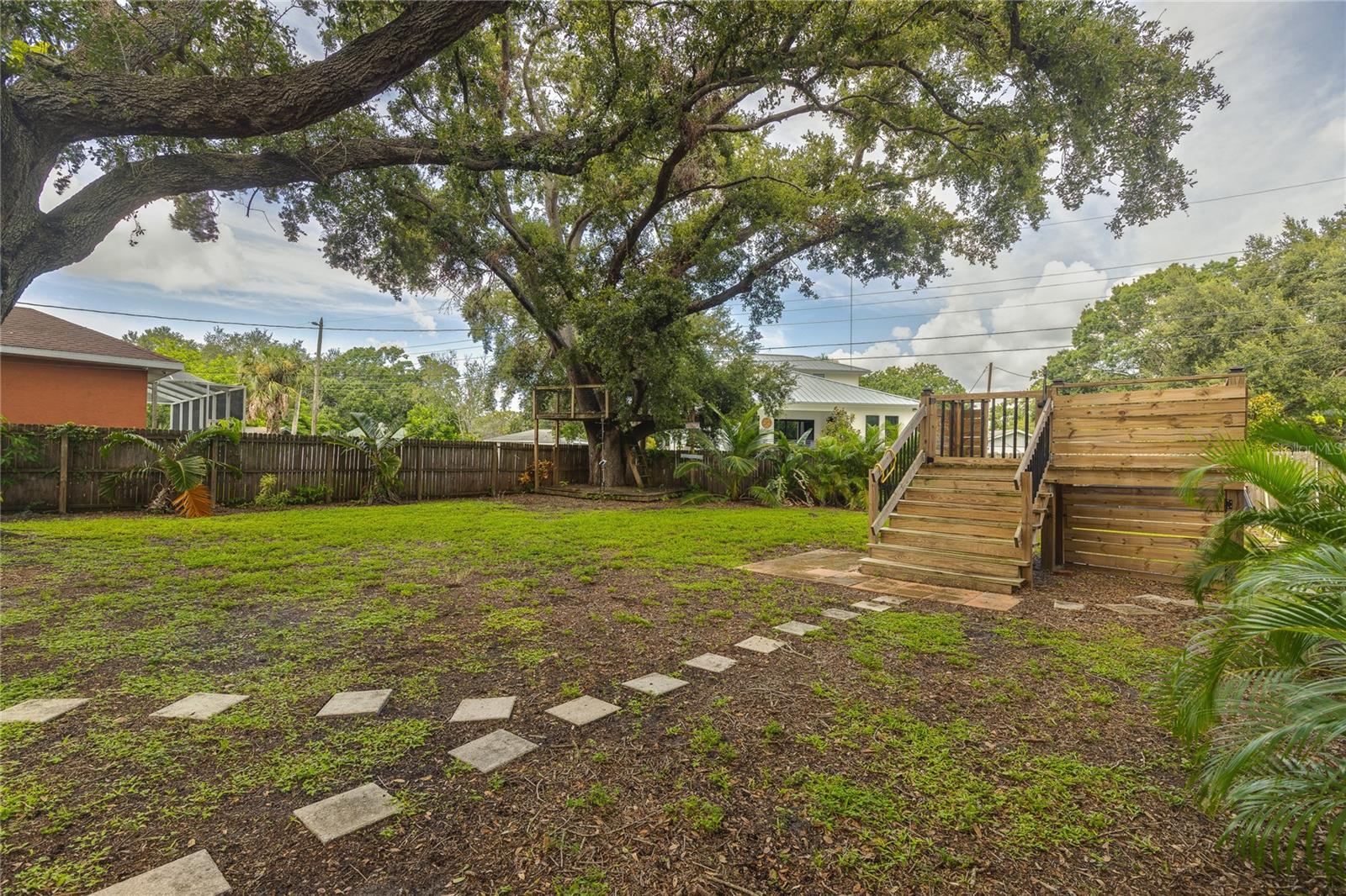 Backyard Bliss & Energy Independence – Your Next Chapter Starts Here. Welcome to this beautifully updated block-build and move-in ready 3-bedroom, 2-bath residence in the highly desirable Edgemoor Estates neighborhood of St. Petersburg. You’ll feel like you’re in nature, yet you’re only minutes from the city. Offering 1,505 sq. ft. of thoughtfully designed living space on a spacious 10,484 sq. ft. lot, this home combines modern upgrades with the serenity of a large, shaded backyard. Best of all, it has not had any water intrusion during all storms and hurricanes. Inside, you’ll find: -Porcelain tile floors throughout for easy maintenance and style -A renovated kitchen with upgraded cabinetry, pantry storage and premium appliances -An open-concept floor plan flowing into a welcoming living room with a wood-burning fireplace -A custom quartz desk/workspace, perfect for remote work or creative projects -A split-bedroom layout, including a spacious primary suite with built-out closets and a large shower - Secondary bathroom has a bathtub -Indoor laundry room with washer and dryer included - Large windows throughout for plenty of natural light. Energy Independence is a standout feature here: - Roof-top solar panels (paid off, installed in 2020) - Spray Insulation in Attic - Energy-efficient hot water heater (replaced in 2020) All will help significantly lower monthly utility bills! Your Private Backyard Retreat: -Shaded by majestic 200-year old oak trees -Fully fenced backyard with ample room for entertaining, gardening or play -Areca, coconut, and foxtail palms along fence line for added privacy -Treehouse with zip line -Above-ground pool deck and electrical wiring, ready to install a new Intex 24' x 12' x 52" Ultra XTR Deluxe Rectangular Above Ground Swimming Pool. Major updates include: -Architectural Shingle Roof (installed in 2015) -A/C system with UV cleaning system (installed in 2015, regularly serviced) -Plumbing (replaced in 2015) Prime Location Benefits: -Around the corner from the new Speer Aquatics, Fitness Center and Mangrove Bay Middle School -Around the corner from Puryear Park with tennis courts, kayak launch, playground, running trail and soccer fields -Nearby Shorecrest Preparatory and Shore Acres Elementary -Convenient access to scenic trails to downtown St. Pete (20-minute bike ride or 10-minute drive) -5-minute drive to Publix, Whole foods, Trader Joes and Crunch Fitness. This property offers the perfect balance of modern convenience and natural tranquility—all in one of St. Pete’s most welcoming neighborhoods.