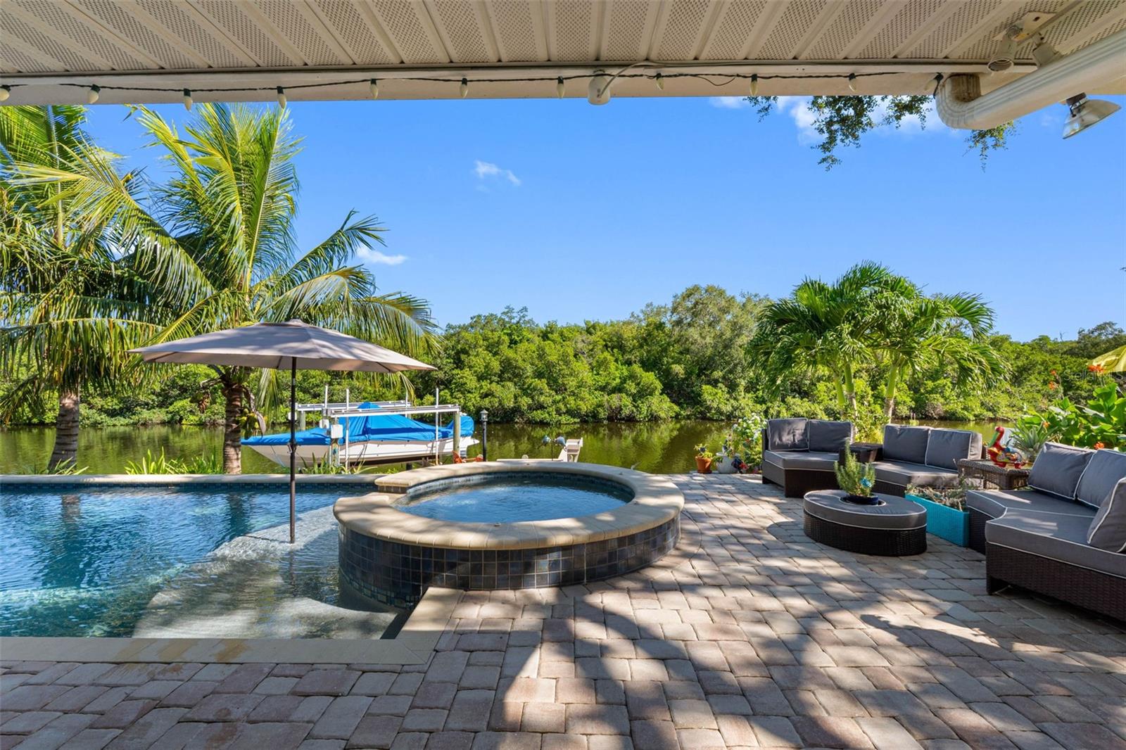 BACK ON MARKET after only one day due to buyer personal situation and not due to seller or the property. Discover the perfect blend of privacy, luxury, and durability in this stunning waterfront home—designed for effortless living and has NEVER FLOODED. Nestled on a quiet canal with direct access to Tampa Bay, this rare jewel offers an undisturbed view of a protected preservation area, ensuring your backyard remains a sanctuary of natural beauty and PRIVACY. From your dock or living room window, enjoy daily encounters with manatees, dolphins, and a vibrant array of coastal birds—your own private connection to Florida’s wildlife. The pool and spa (2014) create a resort-style oasis, complemented by a natural gas outdoor kitchen (2020)—ideal for entertaining year-round. Recent upgrades include new raised sea wall (2020) and a gas Hayward spa/pool heater. Inside, the home shines with a fully renovated kitchen (2019) featuring modern cabinetry and countertops, paired with high-end appliances including a French door LG refrigerator (2021), GE Profile gas stove, and new GE dishwasher (2025). Natural light floods the living space through newly replaced windows (2021), including a dramatic picture window in the living room. Additional features include: New shingle roof (2019) and flat roof (2025), Gas tankless water heater (2021), Lennox A/C with gas furnace (2023), Updated ductwork and insulation (2019), 8x10 Tuff Shed and boat trailer pad (2021), and Security system. Enjoy direct water access from your private dock, featuring composite decking, a fish cleaning station, and a Hi-Tide 9,000 lb aluminum gear drive boat lift with remote control (2013). Whether you’re boating, fishing, entertaining, or simply relaxing as dolphins glide by the dock, this home offers a seamless blend of natural beauty, privacy, modern luxury and peace of mind.