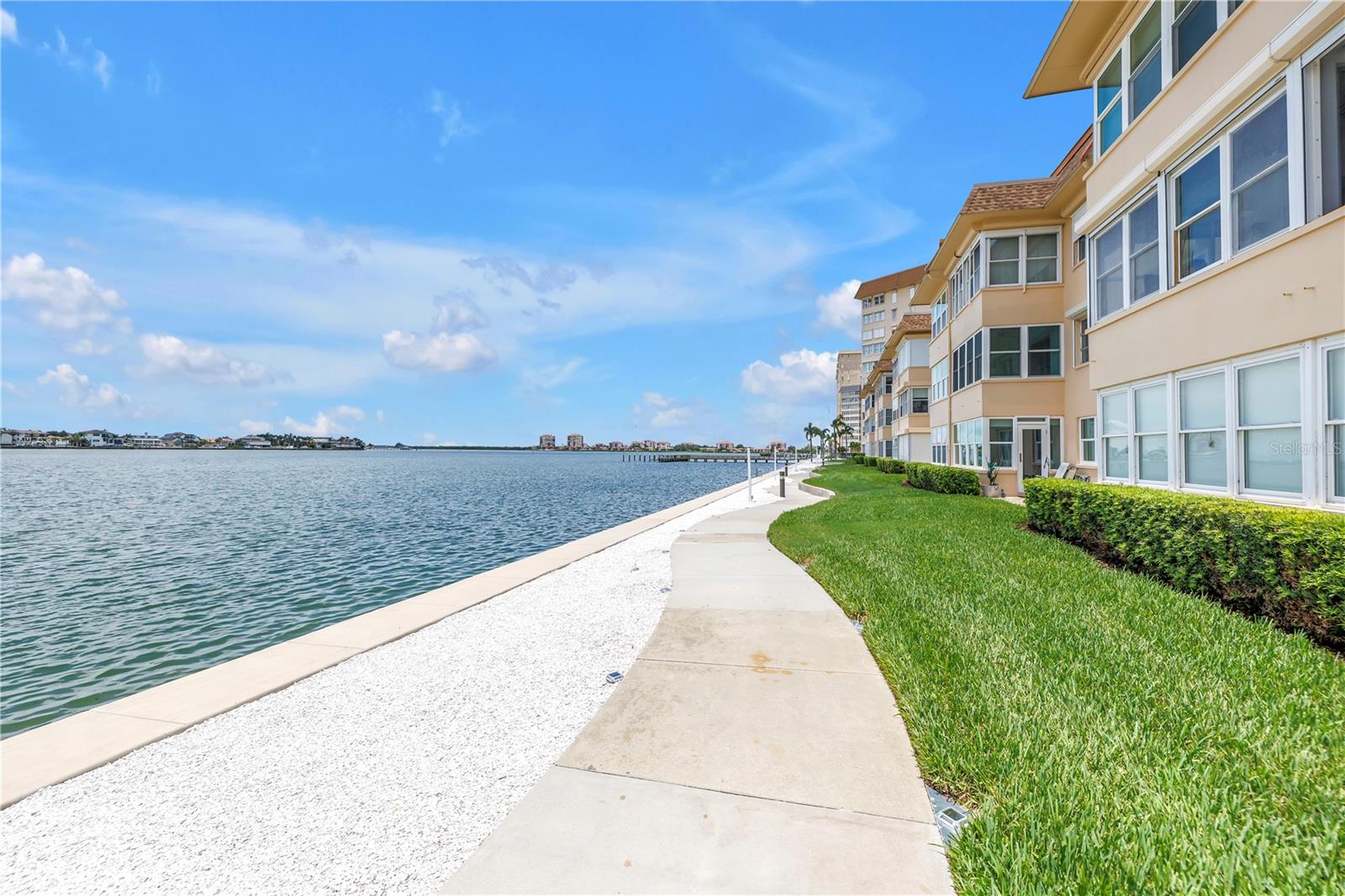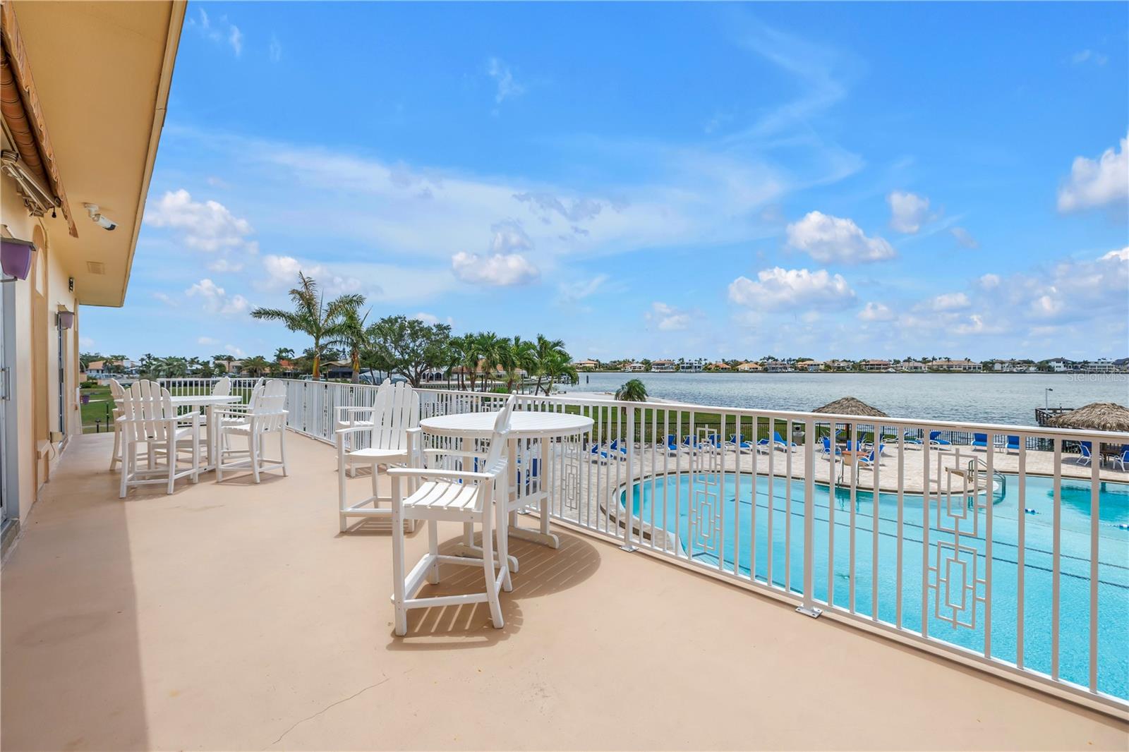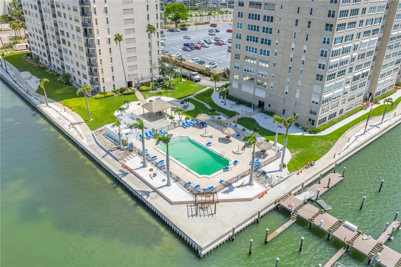 This 1700 sq. ft. 2 bedroom, 2 bath - with a bonus den/office - waterfront property offers you direct panoramic views of Boca Ciega Bay, the Gulf of Mexico, and the Skyway Bridge. The spacious open floor plan offers an abundance of natural sunlight, with water views from every window. Recently renovated, the entire condo has tile flooring, the updated kitchen features solid wood cabinetry, stainless steel appliances, granite countertops, a tile backsplash, a built-in desk, and a breakfast bar, and is open to the dining area and living room. The primary bedroom has dual closets and French doors that allow for sweeping waterfront views and open to a den/office. The ensuite bath features dual sinks, a walk-in shower, and granite countertops The generous 2nd bedroom has a walk-in closet. There is a laundry closet with a stackable washer ad dryer, and a few doors down on the same floor there is a storage room with 2 large units dedicated to this condo. And most importantly....... a under-building garage space is included! Point Brittany is a 55+ resort-like community with amenities such as 4 heated pools, a clubhouse, a fitness center, a spa, saunas, newly resurfaced tennis/pickleball courts, walking paths, a gazebo, pavilion, fire pit, bar-b-que areas, boat slips, fishing piers, kayak storage, yoga/dance studio, ballroom, arts and crafts studio, billiards, ping-pong, poker room, library, meeting and reception rooms. Come and enjoy the vacation lifestyle!