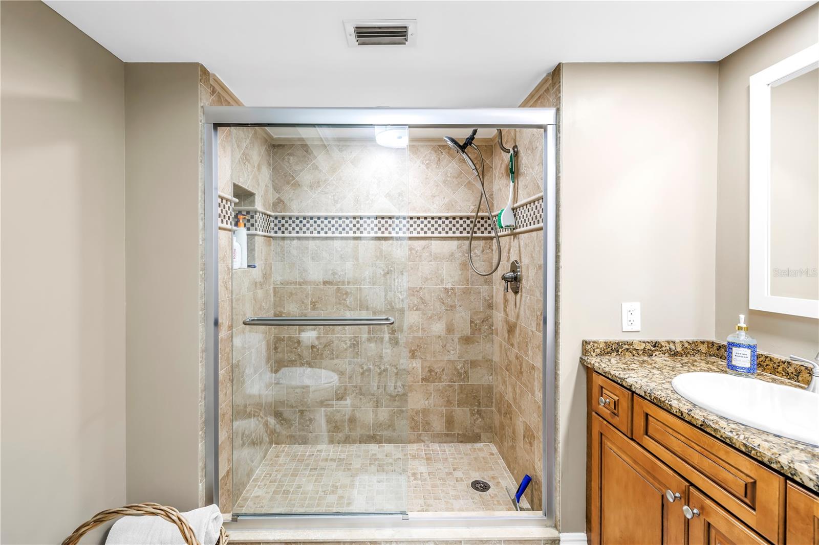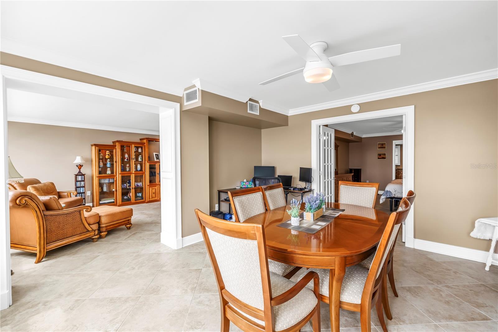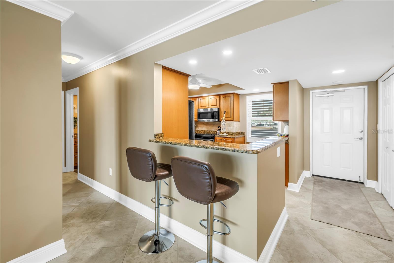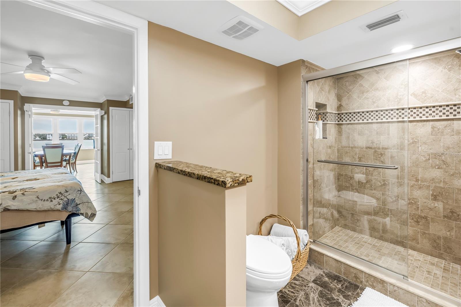 This 1700 sq. ft. 2 bedroom, 2 bath - with a bonus den/office - waterfront property offers you direct panoramic views of Boca Ciega Bay, the Gulf of Mexico, and the Skyway Bridge. The spacious open floor plan offers an abundance of natural sunlight, with water views from every window. Recently renovated, the entire condo has tile flooring, the updated kitchen features solid wood cabinetry, stainless steel appliances, granite countertops, a tile backsplash, a built-in desk, and a breakfast bar, and is open to the dining area and living room. The primary bedroom has dual closets and French doors that allow for sweeping waterfront views and open to a den/office. The ensuite bath features dual sinks, a walk-in shower, and granite countertops The generous 2nd bedroom has a walk-in closet. There is a laundry closet with a stackable washer ad dryer, and a few doors down on the same floor there is a storage room with 2 large units dedicated to this condo. And most importantly....... a under-building garage space is included! Point Brittany is a 55+ resort-like community with amenities such as 4 heated pools, a clubhouse, a fitness center, a spa, saunas, newly resurfaced tennis/pickleball courts, walking paths, a gazebo, pavilion, fire pit, bar-b-que areas, boat slips, fishing piers, kayak storage, yoga/dance studio, ballroom, arts and crafts studio, billiards, ping-pong, poker room, library, meeting and reception rooms. Come and enjoy the vacation lifestyle!