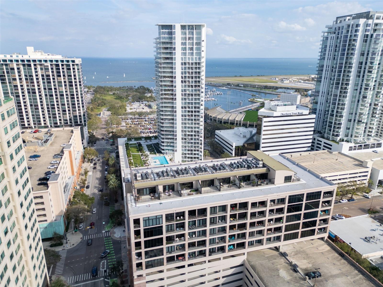 Experience luxury living in this exceptional 3-bedroom, 2-bathroom penthouse corner unit in the highly sought-after McNulty Lofts Condo Association. Boasting 11ft ceilings and floor-to-ceiling windows, this light-filled residence offers panoramic views of Tampa Bay and downtown St. Petersburg from nearly every room. The modern open-concept kitchen features sleek stainless-steel appliances, a breakfast bar, and ample storage—perfect for both casual dining and entertaining. The primary suite includes a spacious walk-in closet and an elegant en-suite bathroom, creating a private retreat. Upstairs, you’ll find two additional bedrooms, including one with an en-suite bathroom. Both upper-level bedrooms provide access to expansive rooftop patios, offering unparalleled views of the water and city skyline—ideal for outdoor entertaining or relaxing under the stars. Additional highlights include tile flooring throughout, a private balcony, and two covered assigned parking spaces. McNulty Lofts is a pet-friendly community that offers an array of premium amenities, including an expansive fitness center, a recently updated stylish social room with a wet bar, bike and kayak storage, and two EV charging stalls for added convenience. Residents also enjoy the peace of mind of having a dedicated on-site manager available Monday through Friday, ensuring a seamless and well-maintained living experience. Located in the heart of downtown St. Petersburg, this condo offers unmatched accessibility to everyday essentials and exciting attractions. Walk to nearby grocery stores, banks, parks, and the bustling weekend market. Indulge in the city’s world-class dining, vibrant bar scene, marinas, museums, and iconic St. Pete Pier—all just steps away. For entertainment lovers, live music, theaters, and sporting venues are easily accessible. Beach enthusiasts will appreciate the short drive to the pristine shores of the Gulf Coast. To fully appreciate the sophisticated design and dynamic location of this remarkable home, take an immersive 3D virtual tour or schedule a private showing. Don’t miss the chance to own a luxurious condo that reflects the perfect blend of style, comfort, and downtown vibrancy!