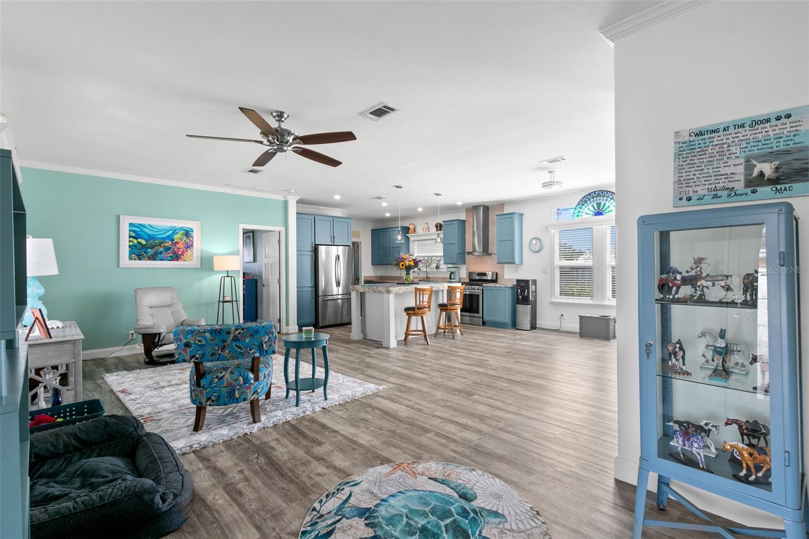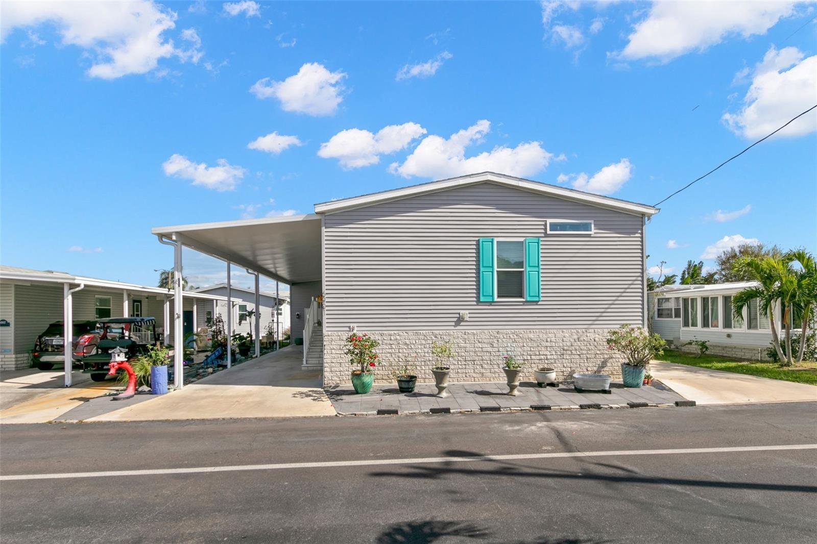 Stunning 2019 Palm Harbor custom home built to Wind Zone III standards, the toughest in the state. With more than 1,700 sq. ft of living space, you'll fall in love with this move-in ready luxury home that comes with a high-end golf cart and gas generator. Price includes share for the lot and ownership in the co-op. Features include: open kitchen/dining/living area with a large island for entertaining friends and family; split bedroom plan gives extra privacy; two living areas--make one a den or office; kitchen features high-end stainless appliances including gas stove with hood, walk-in pantry and lots of cabinet space; utility room with washer and dryer; in March 2024, new luxury wide-plank waterproof vinyl flooring was installed and new paint throughout; primary bedroom suite with room for office or sitting area, walk-in closet and bath with large shower; on opposite side of home, there is a guestroom and guest bath close to living area creating an inviting guest area. Custom blinds throughout and stained glass in horizon windows in living area. In 2022, extra parking pad added that holds two cars easily in addition to 2-car carport. Large shed with shelving and double doors. Back patio with gas hookup ready for a grill. Price includes 2022 Icon fully loaded gulf cart with neo lights, lift kit, side steps, heavy duty cover, blue tooth stereo and comes with one-year repair service. Home went through Hurricanes Helene and Milton with no issues! No flooding. Home has an elevation of 11.6 ft and has elevation certificate. Located in popular Americana Cove, a 55+ waterfront community, only 10 mins from downtown St. Petersburg. Low monthly maintenance fee of $380 includes water/sewer/trash pick up/lawn mowing/private streets/24 hr manned gate and all amenities of the community including fitness center, clubhouse, heated pool, billiards, two boat ramps, kayak launch and so much more! Two dogs or cats up to 35 pounds are welcome; 2 pets total each household. Proof of funds or lender pre-approval with contract. Discerning buyers looking for a newer home at a great value, this is it!