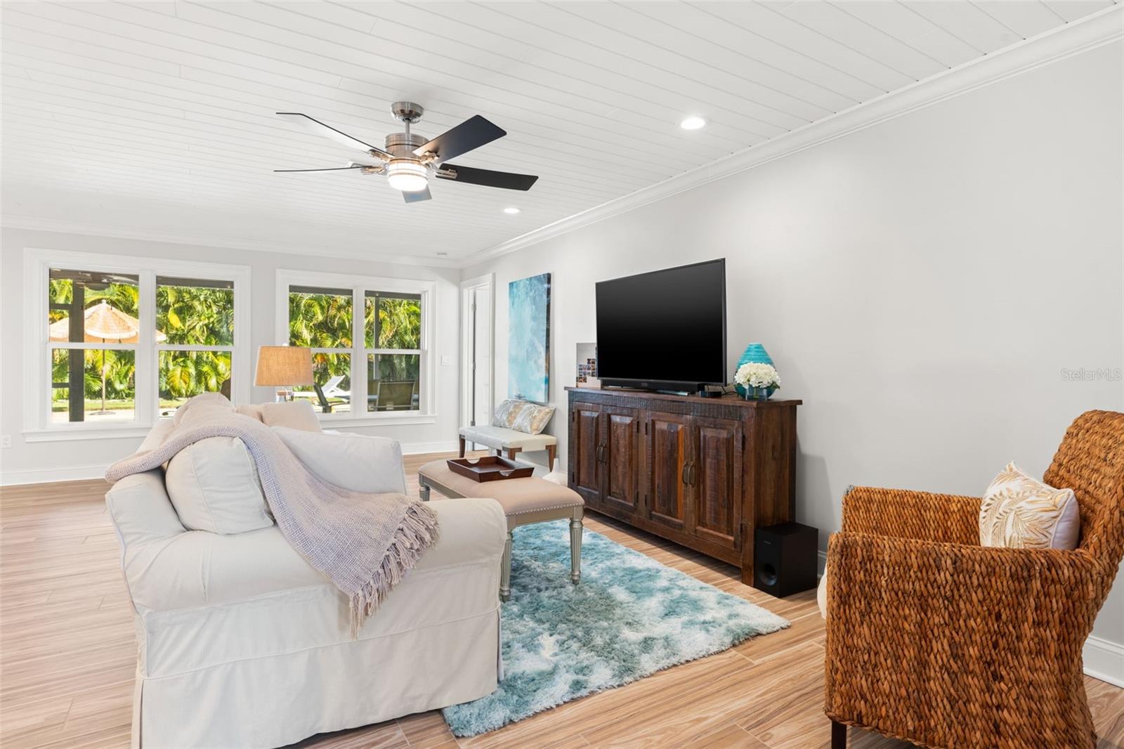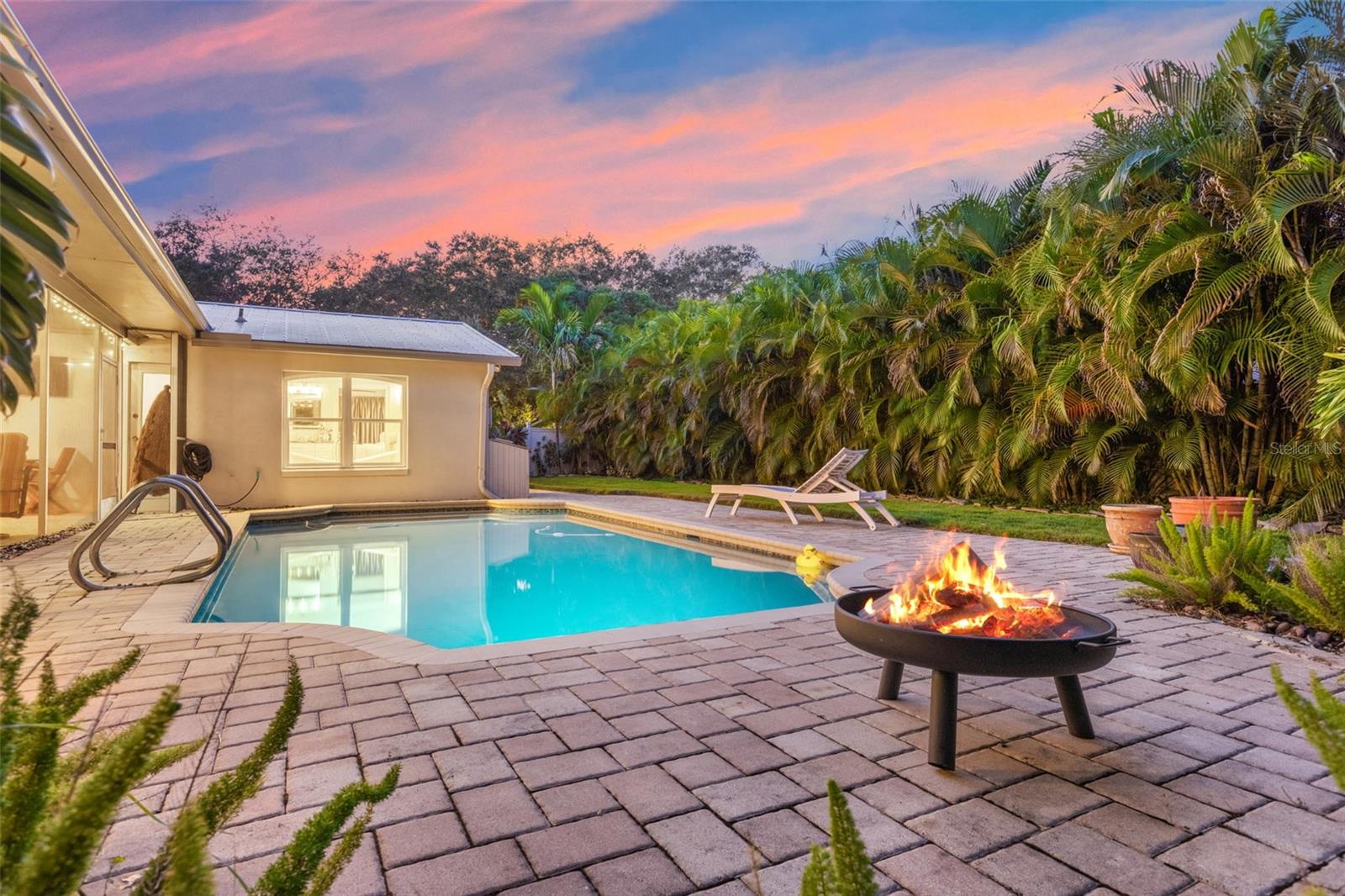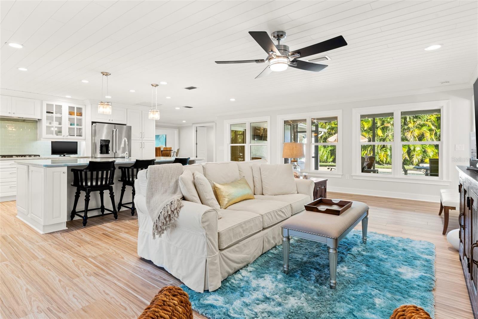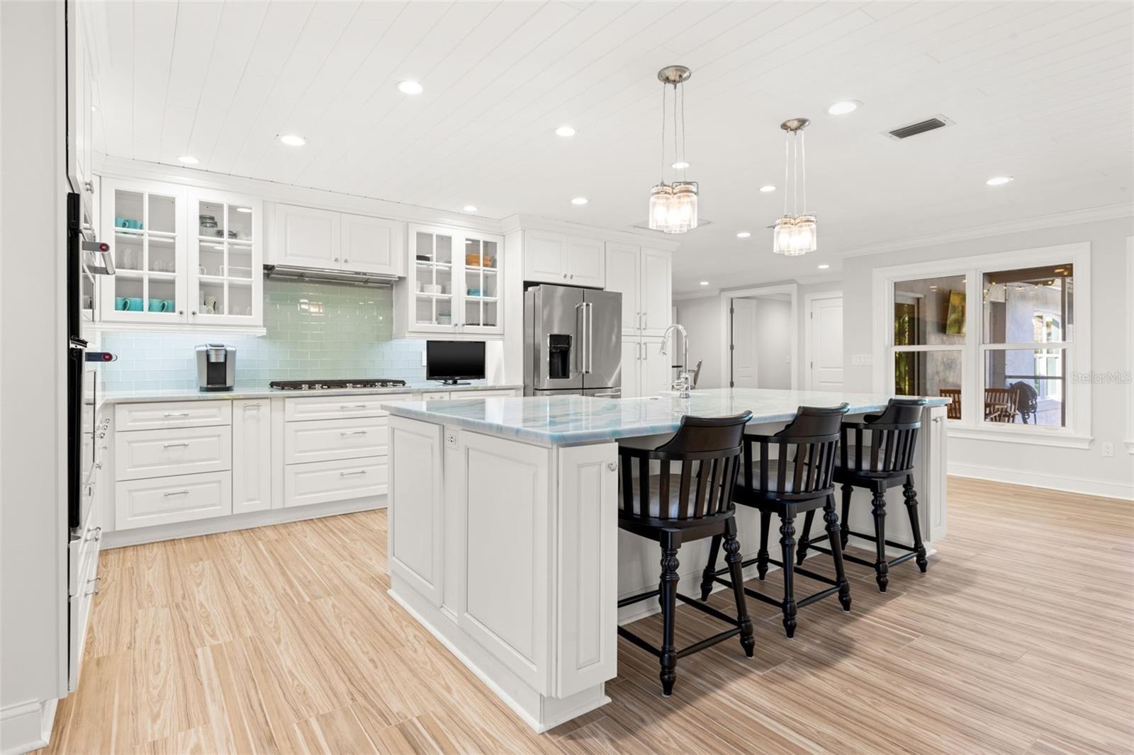 Broadwater is booming, and this custom-upgraded pool home puts you at the heart of one of St. Petersburg’s most exciting neighborhoods for growth, convenience, and coastal living. No stone was left unturned in this thoughtful, top-to-bottom remodel. Set on an oversized corner lot, this block-construction 2 bedroom, 2.5 bath ranch-style POOL home lives large with an open concept layout where the living room and chef’s kitchen flow seamlessly together. Walls of oversized, impact windows frame the tropical backyard oasis and bathe the interiors in natural light. The entertainer’s kitchen features custom wood cabinetry with oversized soft-close and spice drawers, a dramatic 10x5 island with farmhouse sink, dishwasher and extra storage/seating, striking quartzite countertops, and premium KitchenAid appliances—including a 36" 6-burner gas range, 5-door refrigerator, combo wall oven/microwave, plus a wine fridge and ice maker in the butler’s pantry. Porcelain tile flooring carries throughout. The split plan offers two spacious bedrooms, each with an ensuite bath, plus a convenient half bath that opens to the screened lanai for easy pool access. The serene primary suite provides a custom walk-in closet, sitting area, and a spa-worthy bath with dual vanities with quartzite countertops, a marble walk-in shower boasting four niches, and a Victoria + Albert Marlborough double-ended slipper tub overlooking the lush landscape including 30+ Eureka palms—designed for everyday resort living. Enjoy glimpses of Boca Ciega Bay from the dining area and the primary suite and prepare for sunsets that will take your breath away. Arrive through the garage to a charming laundry/mudroom with a custom farmhouse sink. Outdoors, Florida living shines: a large screened porch (accessed by a sliding pocket door) overlooks the sparkling pool and fully fenced, private backyard, complete with a Meyer lemon tree. Notable upgrades include a 2017 metal roof, a Trane 3.5-ton HVAC with transferable 10-year warranty (installed 2021), updated plumbing and electrical, water softener, tongue-and-groove pine ceiling accents, Moen fixtures, crown moulding with upgraded trim/baseboards, solid wood interior/exterior doors, a security-minded front door with triple deadbolt and insulated sidelights, designer lighting, extensive LED recessed and under-cabinet lighting, refreshed exterior stucco, gutters with guards and soffits, pool equipment updates, newer toilets, exterior security cameras and motion lighting, added insulation, new ceiling fans, and a wide driveway with extra guest and boat/RV parking. All of this in a superb location a few blocks to the multi-million-dollar Maximo Marina, close to waterfront dining, and just minutes to St. Pete Beach and vibrant Downtown St. Petersburg, with quick I-275 access for easy commutes and airport runs. Come experience Broadwater’s best—schedule your private tour and make this stunning residence your new place to call home.