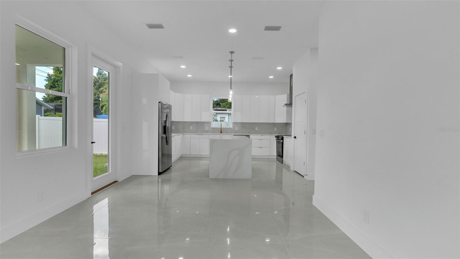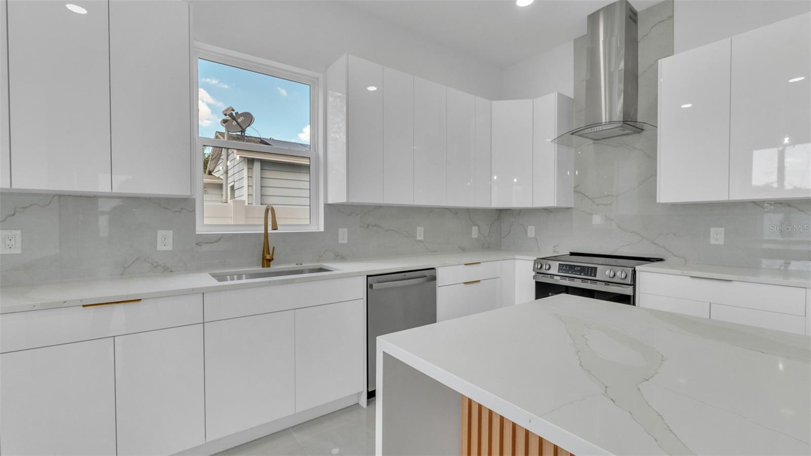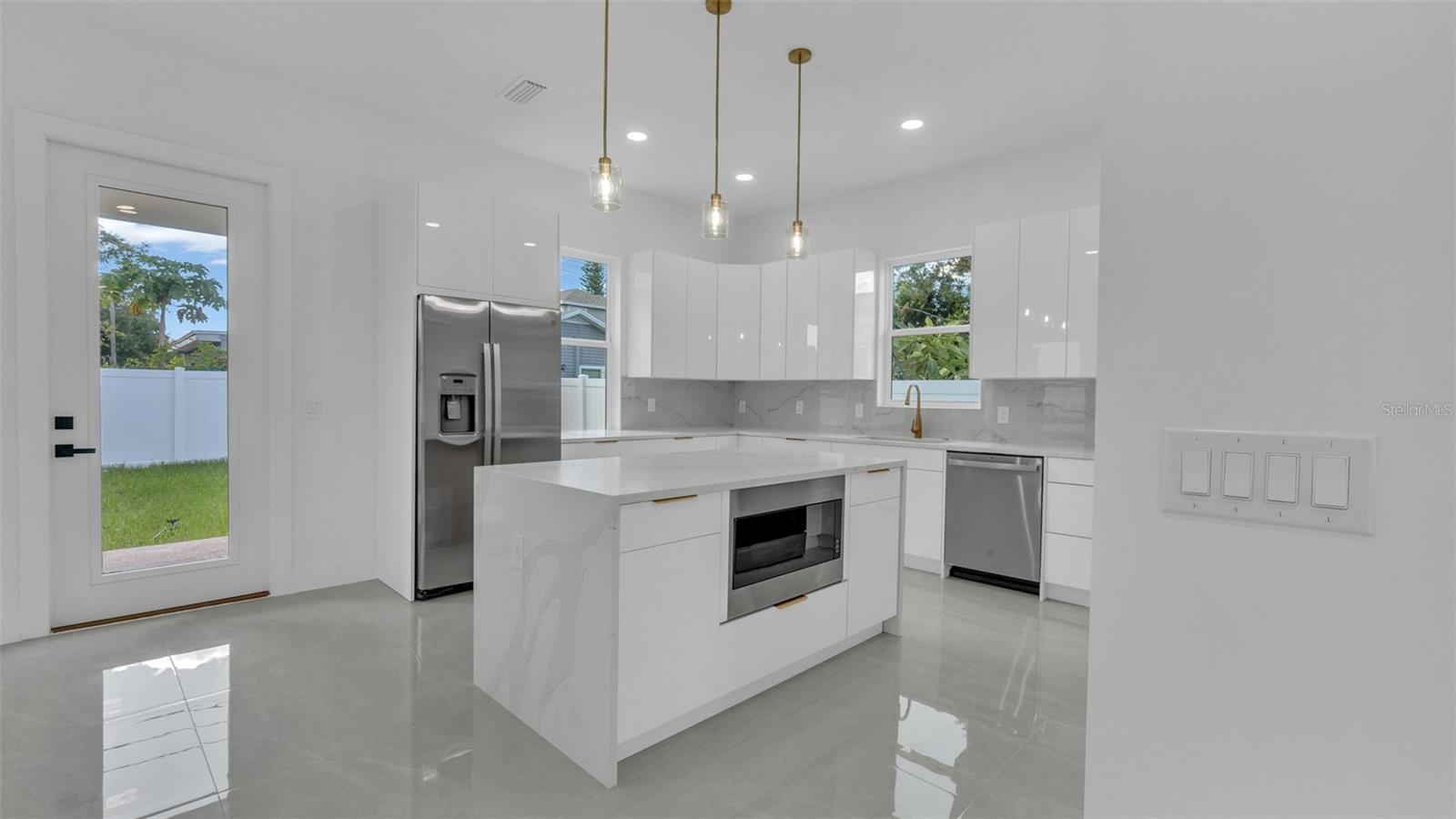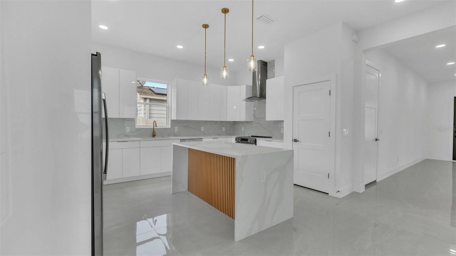 Experience contemporary LUXURY in this newly completed home designed with premium upgrades and peace of mind at every turn. From the moment you walk through the 8-ft impact entry door, soaring 10-ft ceilings, and high-polished tile floors create a dramatic and open feel. The chef’s kitchen is a true showpiece with waterfall quartz countertops, sleek high-gloss cabinetry, built-in microwave, and striking gold finishes that elevate every detail. A formal dining room, spacious family room, and stylish guest bath complete the first floor, while the epoxy-coated garage with an impact door provides both durability and function. Upstairs, wide-plank luxury vinyl flooring flows into each bright and spacious bedroom. The primary suite is a true retreat with an oversized walk-in closet, spa-inspired bath featuring a freestanding tub, floor-to-ceiling tiled shower, quartz dual vanities, LED mirrors, and matte blackfinishes. Two additional bedrooms boast large picture windows and walk-in closets, while the upstairs laundry offers tall high-gloss cabinets for added storage and convenience. Every detail of this home is thoughtfully crafted for modern living, style, and comfort. Best of all, it’s located in an X NON Flood Zone, less than 9 minutes from vibrant Downtown St. Petersburg and just 19 minutes from Tampa International Airport delivering luxury living in a prime, convenient location.