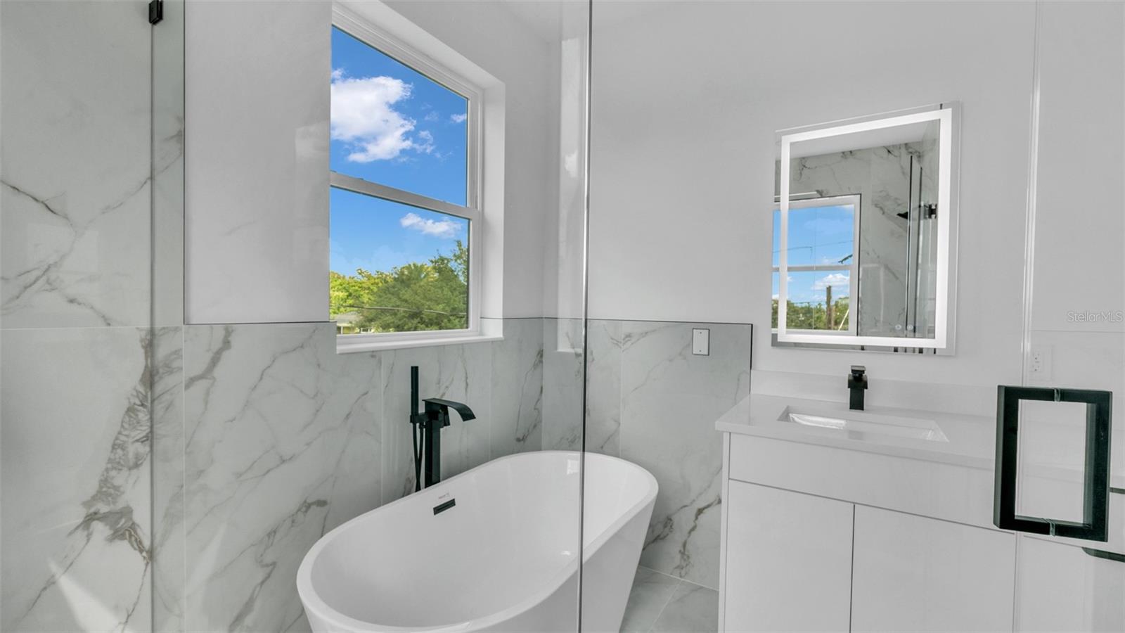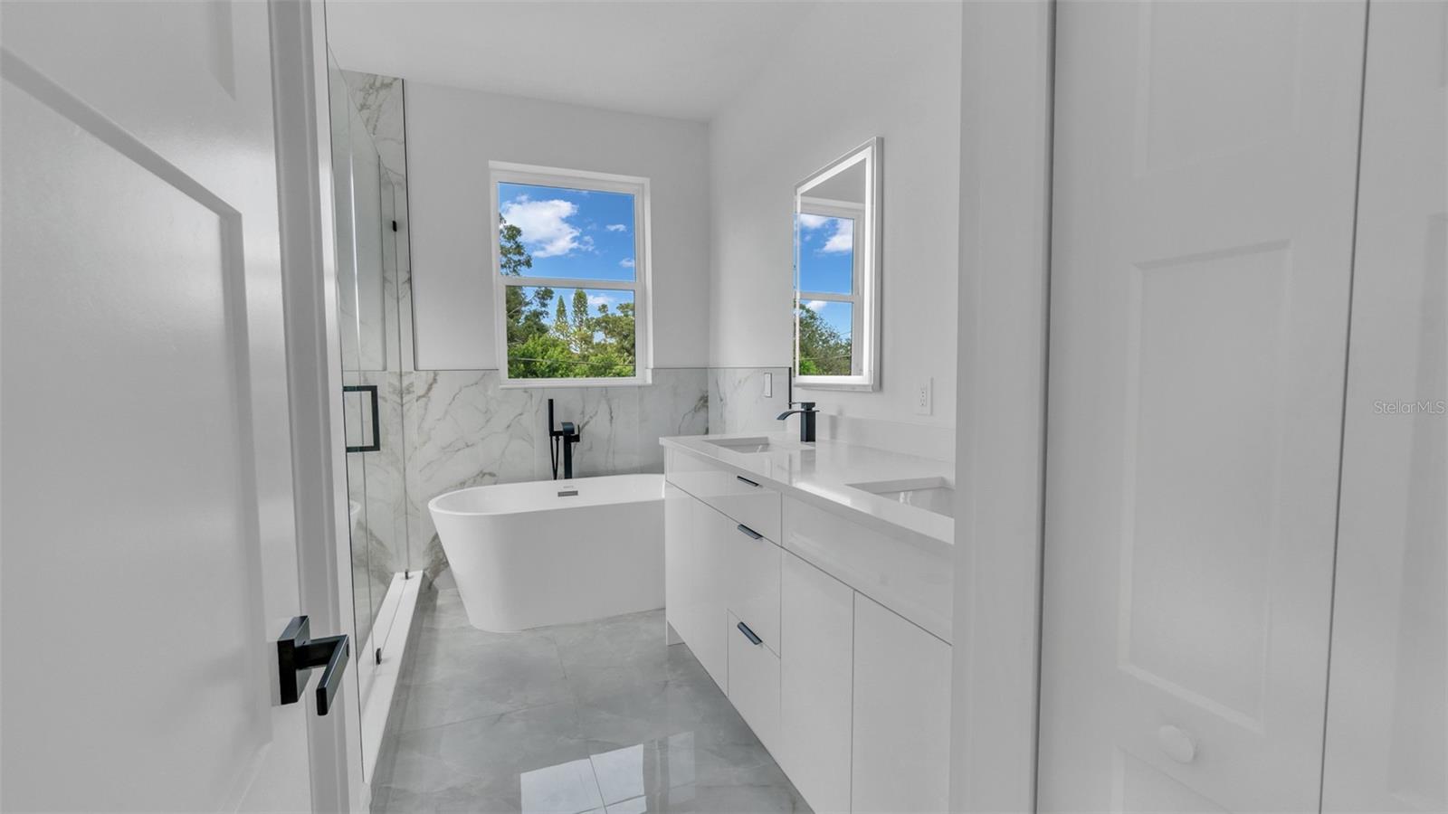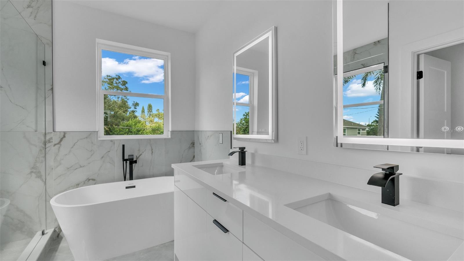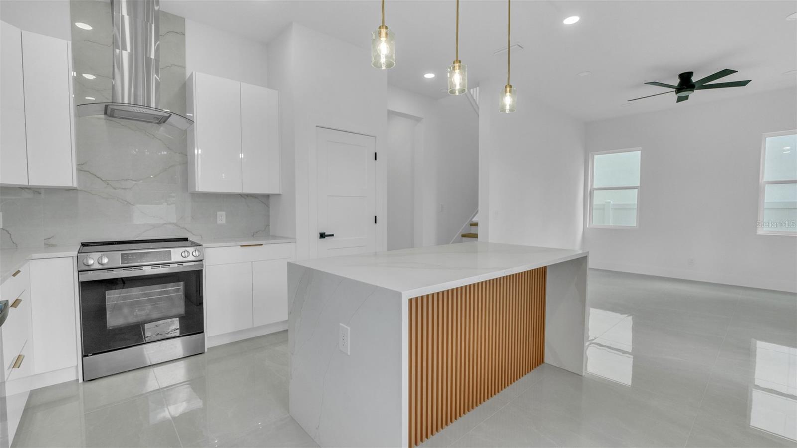 Experience contemporary LUXURY in this newly completed home designed with premium upgrades and peace of mind at every turn. From the moment you walk through the 8-ft impact entry door, soaring 10-ft ceilings, and high-polished tile floors create a dramatic and open feel. The chef’s kitchen is a true showpiece with waterfall quartz countertops, sleek high-gloss cabinetry, built-in microwave, and striking gold finishes that elevate every detail. A formal dining room, spacious family room, and stylish guest bath complete the first floor, while the epoxy-coated garage with an impact door provides both durability and function. Upstairs, wide-plank luxury vinyl flooring flows into each bright and spacious bedroom. The primary suite is a true retreat with an oversized walk-in closet, spa-inspired bath featuring a freestanding tub, floor-to-ceiling tiled shower, quartz dual vanities, LED mirrors, and matte blackfinishes. Two additional bedrooms boast large picture windows and walk-in closets, while the upstairs laundry offers tall high-gloss cabinets for added storage and convenience. Every detail of this home is thoughtfully crafted for modern living, style, and comfort. Best of all, it’s located in an X NON Flood Zone, less than 9 minutes from vibrant Downtown St. Petersburg and just 19 minutes from Tampa International Airport delivering luxury living in a prime, convenient location.