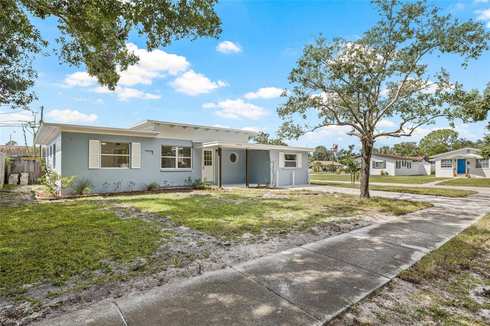 Just Remodled and move in ready! This Must-see home features new roof 2024, brand-new Hvac units and air ducts, updated elecrical wiring, new kitchen and bathroom cabinets, fresh drywall and paint,new doors including two farm slide doors and front door. Luxury flooring with modern baseboards throughout. The kitchen shines with all-new appliances,while new irrigation system and fresh sod will create a lush, green lawn. Enjoy a beautifully paved back patio(not reflected in photo just added) that now matches the new pavers on driveway,-plus upgraded sliding glass doors leading to porch.The spacious backyard offers ample room to store boats or other recreational wehicles-perfect for boaters! Located close to downtown St. Petersburg, love the convience of nearby shopping,dining and entertainment.Experience the best of St. Pete lifesyle in this fully updated home