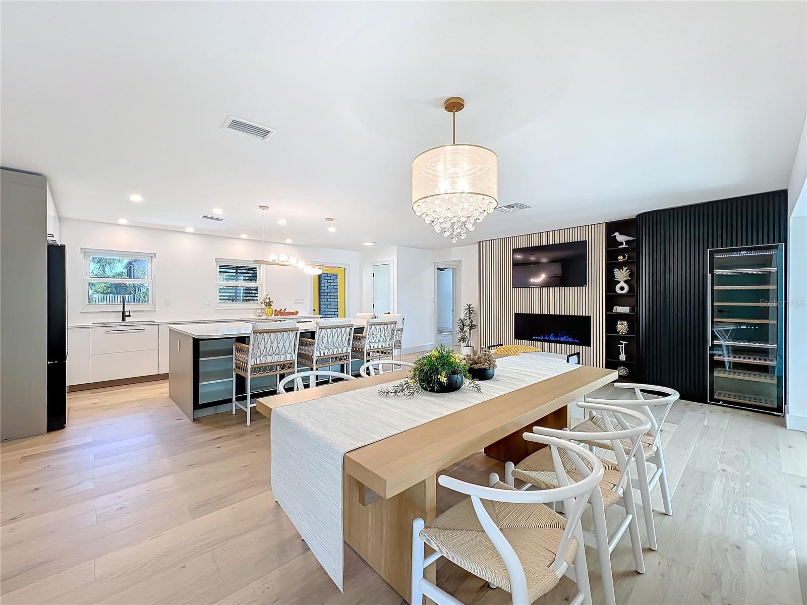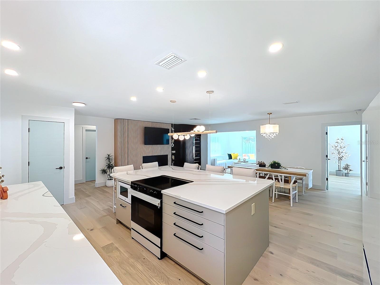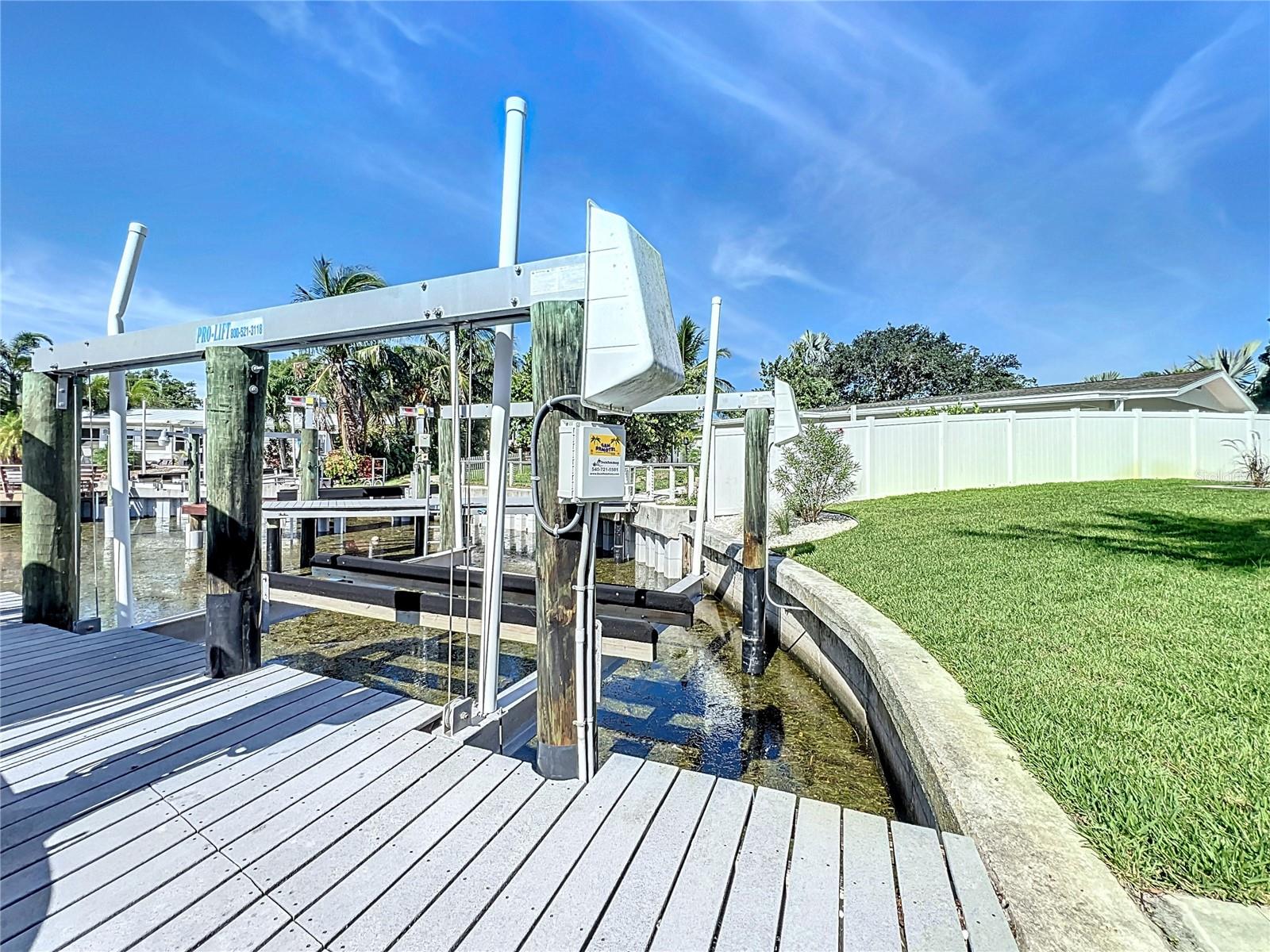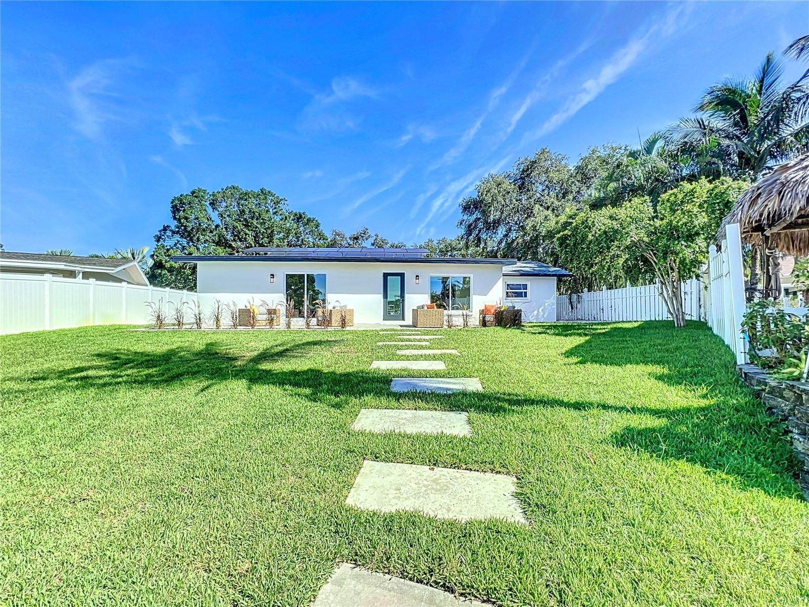 Priced under recent appraised value with no history of flooding, welcome to this one of a kind beachy-modern waterfront oasis! With custom finishes galore, superb quality and details to please even the most discerning eye, this meticulously renovated and fully permitted 3 bedroom 2 bathroom split floor plan home is both stylish and functional with the aura of high class fashion that Modernizing Florida has become known for. It feels bright, airy, crisp and has just the right amount of open concept while reserving partial privacy for the spacious living room. The glamorous European designed custom kitchen features Calacatta Gold Quartz countertops, lacquer finish soft-close cabinets, small appliance cabinets with built-in outlets, Kraus granite deep bowl sink with pull-out faucet, Kitchen-Aid 3-rack fully integrated dishwasher, Samsung Bespoke Smart refrigerator with filtered ice and water dispenser and a vast island with Samsung Bespoke Smart range and built-in GE microwave. The open kitchen and dining space share their grandeur with a custom designed entertainment wall that features a 170 bottle, dual zone wine fridge, an articulating TV mount, a LED steam fireplace, a book shelf and two hidden cabinets. The warmth of the waterproof engineered hardwood oak floor will lead you to some of the other amazing elements of the home such as the custom relief wall in the primary bedroom, the chic bathrooms, or outside to the expansive patio with built-in planters that overlooks the beautiful water view and the lushly landscaped backyard that is big enough to add a pool. Indoor laundry room, new plumbing to the meter and waste lines inspected, new electric, new HVAC and ductwork with smart thermostat, new insulation, new reclaimed irrigation system, 2012 roof in great condition with roof certification, fully paid solar panels, 16,000 lbs boat lift, Rheem Hybrid Smart 50 gallon water heater with heat pump, automatic garage door opener, ceiling fans with remotes in bedrooms and living room. Walking distance to the Coquina Key Community Park which offers a jogging trail, dog park, pickle ball, tennis, soccer fields, and a playground; just minutes to downtown St Pete by land or sea, while still a short drive to beaches, airports, Tampa & Clearwater.