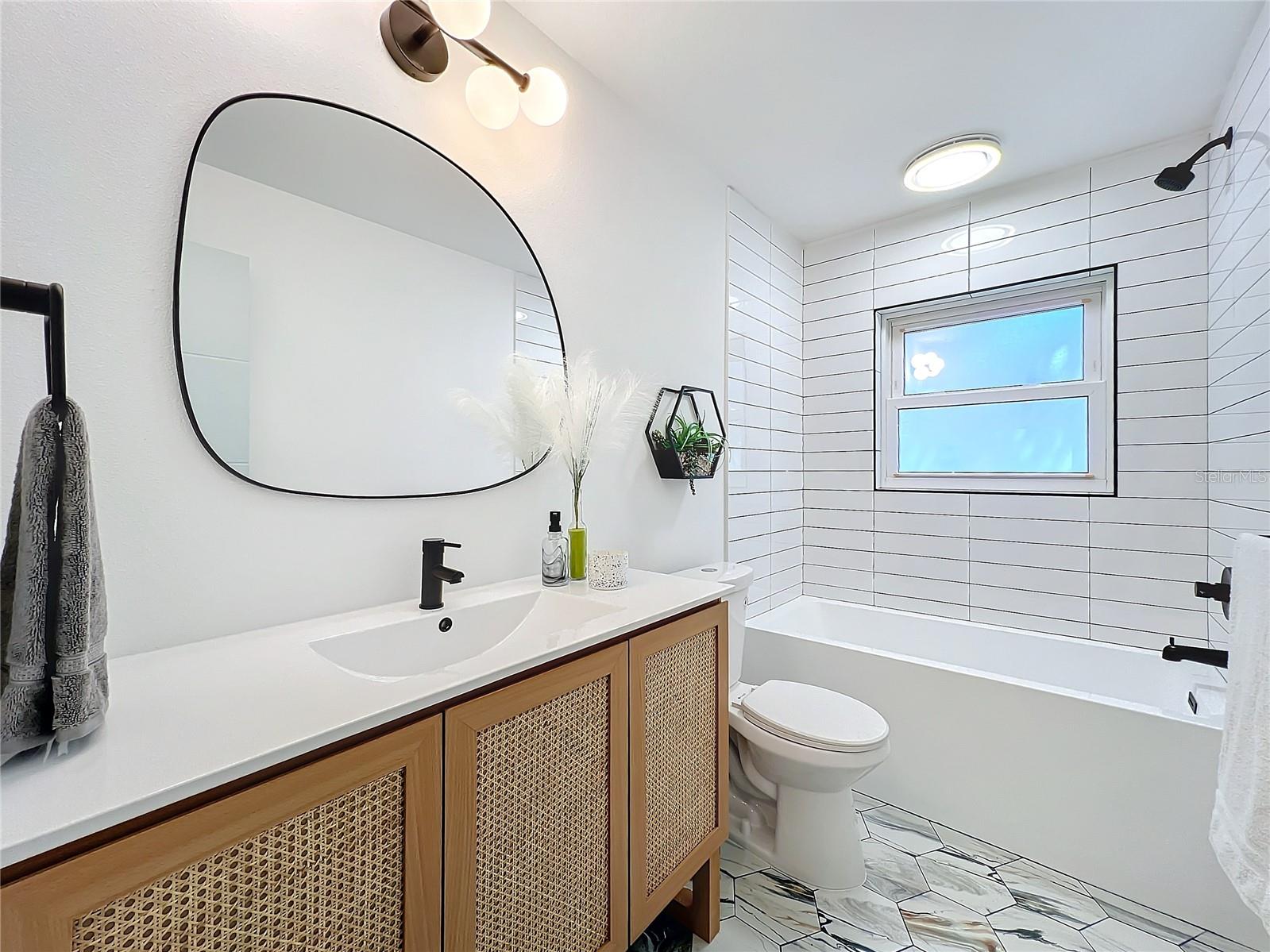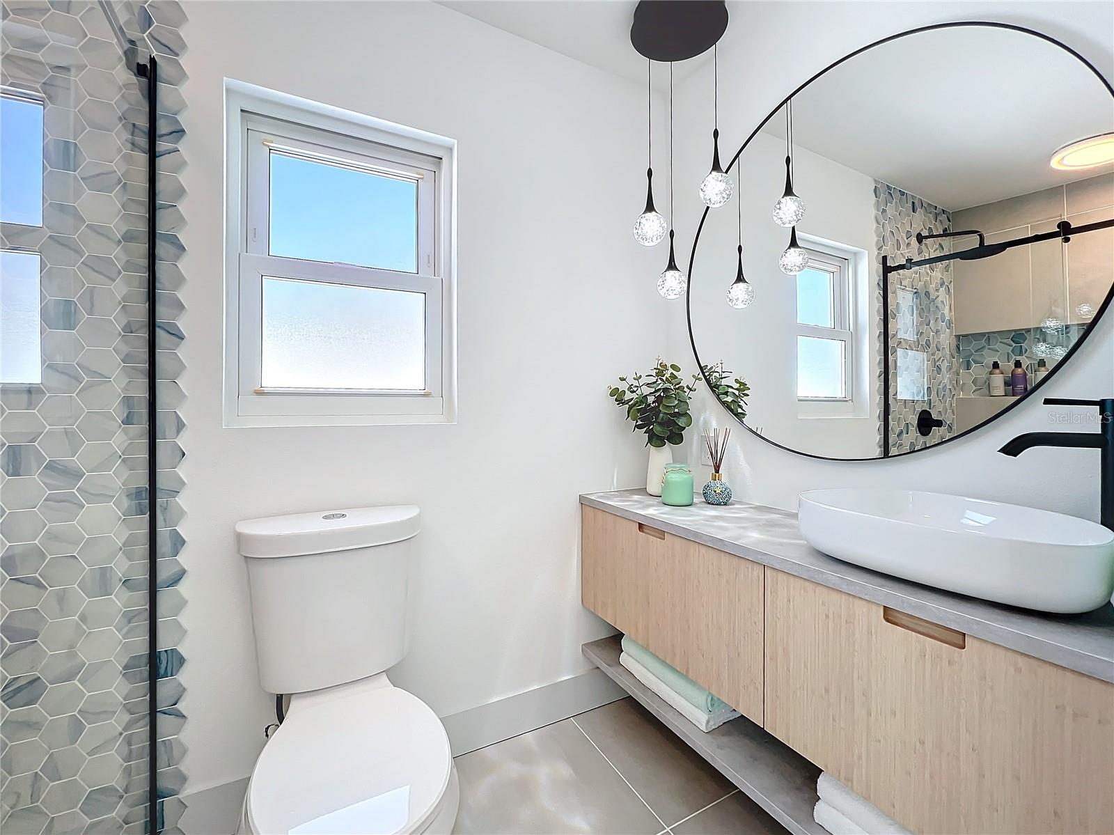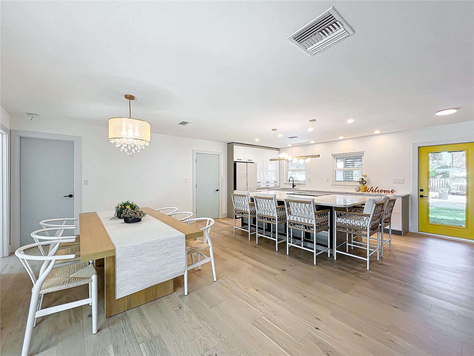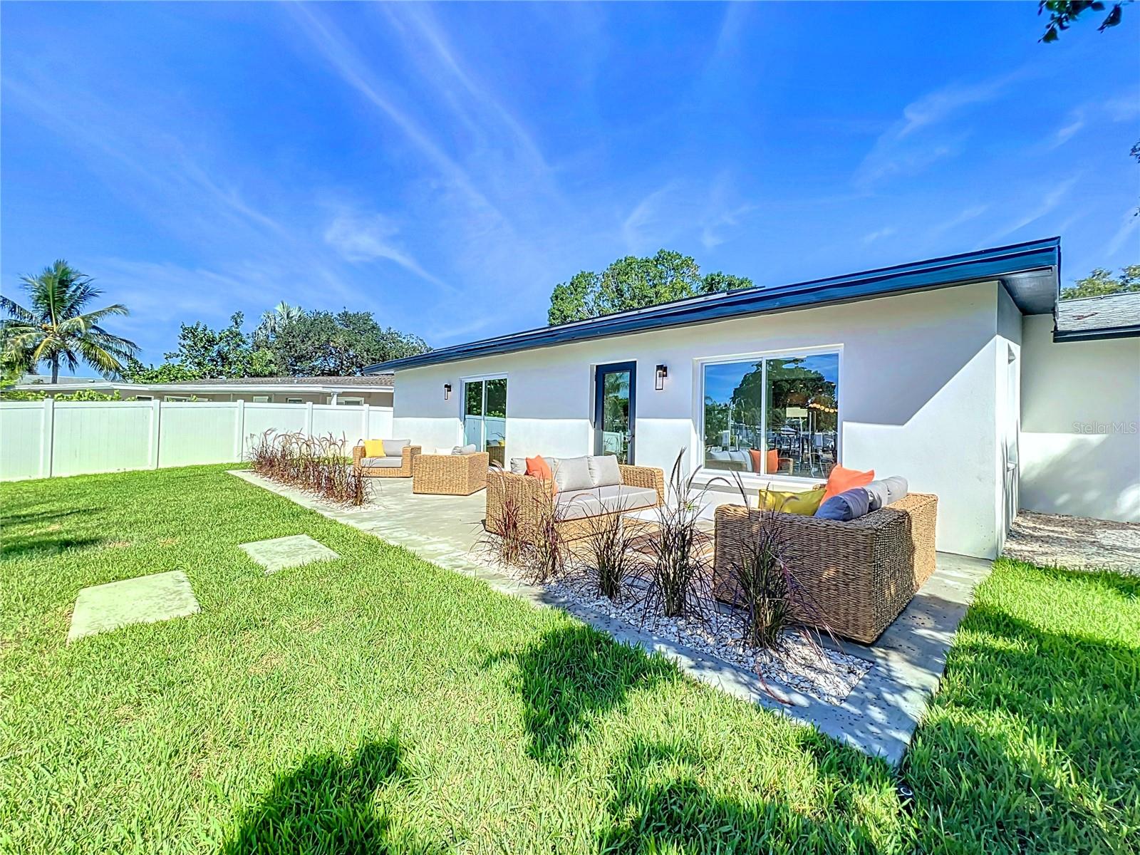 Priced under recent appraised value with no history of flooding, welcome to this one of a kind beachy-modern waterfront oasis! With custom finishes galore, superb quality and details to please even the most discerning eye, this meticulously renovated and fully permitted 3 bedroom 2 bathroom split floor plan home is both stylish and functional with the aura of high class fashion that Modernizing Florida has become known for. It feels bright, airy, crisp and has just the right amount of open concept while reserving partial privacy for the spacious living room. The glamorous European designed custom kitchen features Calacatta Gold Quartz countertops, lacquer finish soft-close cabinets, small appliance cabinets with built-in outlets, Kraus granite deep bowl sink with pull-out faucet, Kitchen-Aid 3-rack fully integrated dishwasher, Samsung Bespoke Smart refrigerator with filtered ice and water dispenser and a vast island with Samsung Bespoke Smart range and built-in GE microwave. The open kitchen and dining space share their grandeur with a custom designed entertainment wall that features a 170 bottle, dual zone wine fridge, an articulating TV mount, a LED steam fireplace, a book shelf and two hidden cabinets. The warmth of the waterproof engineered hardwood oak floor will lead you to some of the other amazing elements of the home such as the custom relief wall in the primary bedroom, the chic bathrooms, or outside to the expansive patio with built-in planters that overlooks the beautiful water view and the lushly landscaped backyard that is big enough to add a pool. Indoor laundry room, new plumbing to the meter and waste lines inspected, new electric, new HVAC and ductwork with smart thermostat, new insulation, new reclaimed irrigation system, 2012 roof in great condition with roof certification, fully paid solar panels, 16,000 lbs boat lift, Rheem Hybrid Smart 50 gallon water heater with heat pump, automatic garage door opener, ceiling fans with remotes in bedrooms and living room. Walking distance to the Coquina Key Community Park which offers a jogging trail, dog park, pickle ball, tennis, soccer fields, and a playground; just minutes to downtown St Pete by land or sea, while still a short drive to beaches, airports, Tampa & Clearwater.