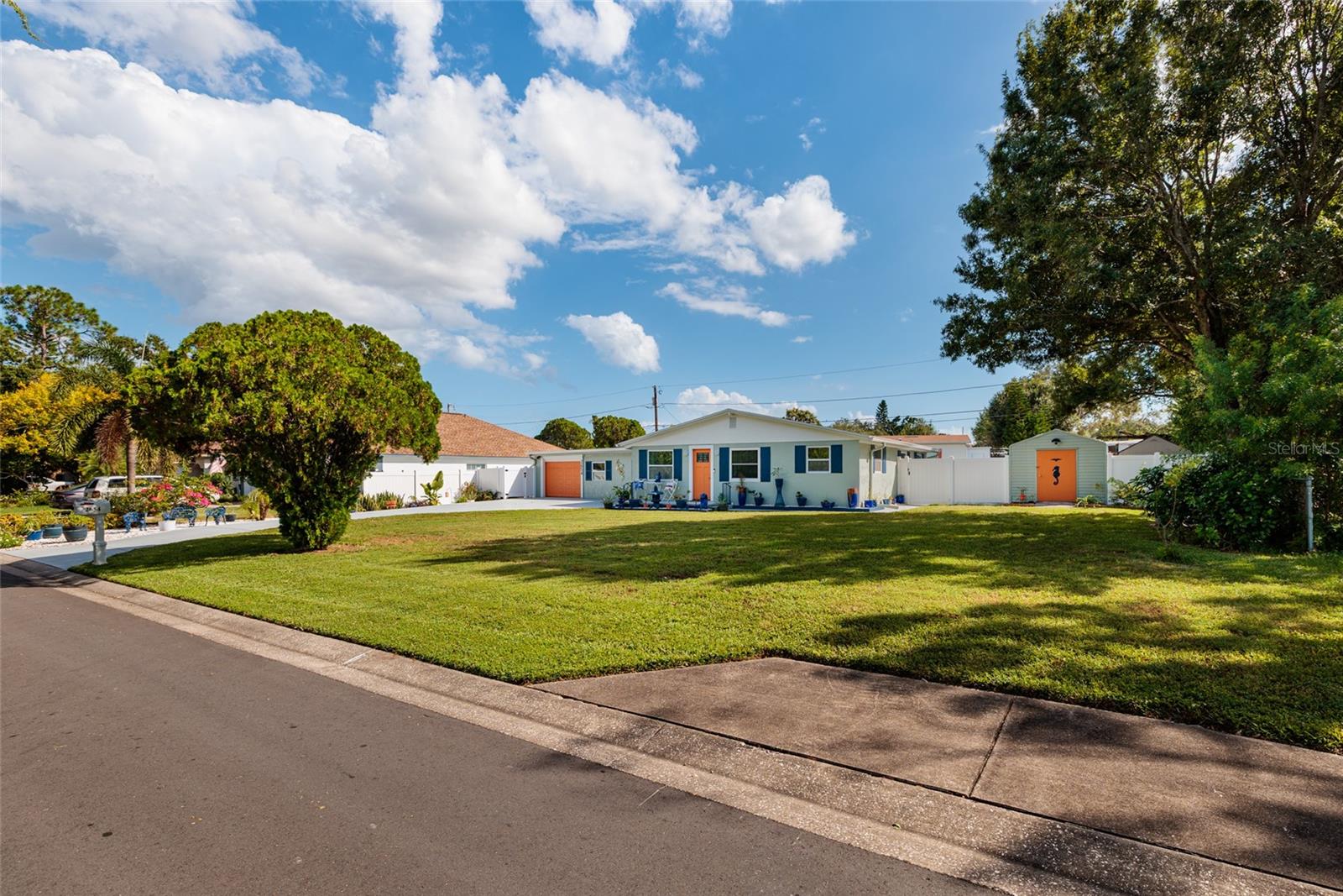 Welcome to this beautifully updated and centrally located five-bedroom, two-bathroom residence situated on a rare double lot in a non-flood zone. This home offers incredible flexibility, featuring two additional flex rooms—perfect for a home office, playroom, gym, or multigenerational living. With over a quarter acre of land, there’s plenty of room to relax, entertain, or expand your outdoor living space. Extensively updated and meticulously maintained, this home offers peace of mind with newer roof (2017), foundation repair and dehumidification system (2021), and termite treatment (2019). Interior enhancements include all-new laminate flooring throughout, tile in the kitchen and hallway, a bathroom remodel (2020), and a new stand-up shower (2022). You’ll also find a new front and back door (2020–2021), underground electrical wiring to the shed (2021), and new vinyl fencing and gates (2025) for added privacy and style. Freshly painted in 2023, both the home and the large shed/workshop shine inside and out. A new combination washer and dryer unit adds modern convenience. The one-car garage, generous driveway, and cul-de-sac location offer ample parking and a quiet, private setting—perfect for families or anyone seeking space and versatility. Located in the heart of St. Petersburg, this home is close to shopping, dining, parks, downtown entertainment, and just a short drive to the beautiful Gulf beaches. Whether you’re looking for a spacious family home or a multi-generational layout, this property delivers comfort, style, and functionality in one perfect package. Don’t miss this unique opportunity—schedule your private tour today!