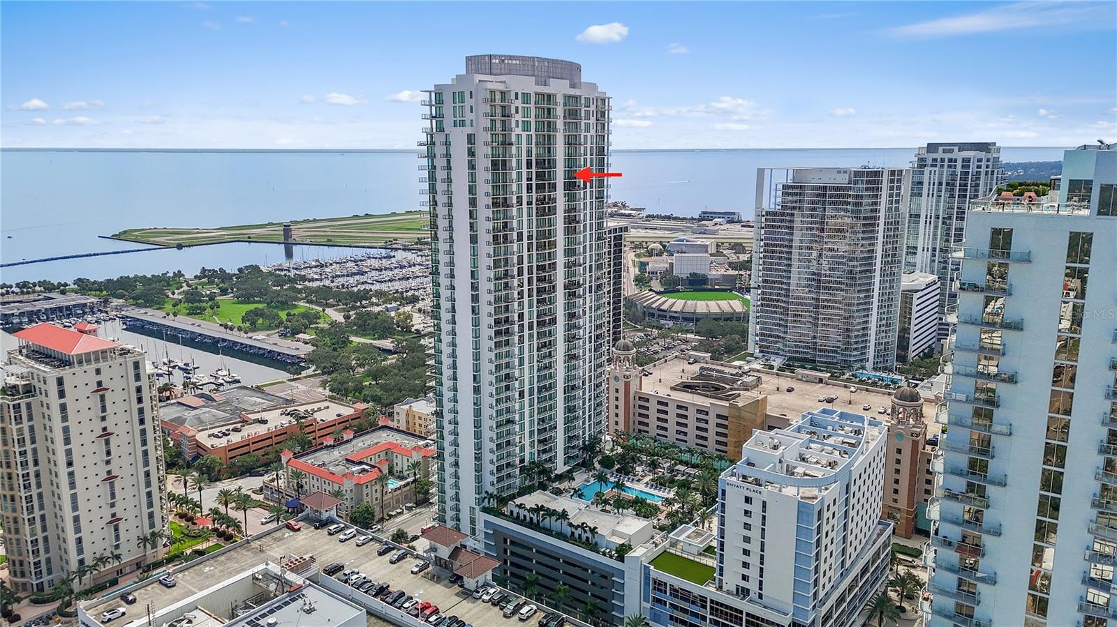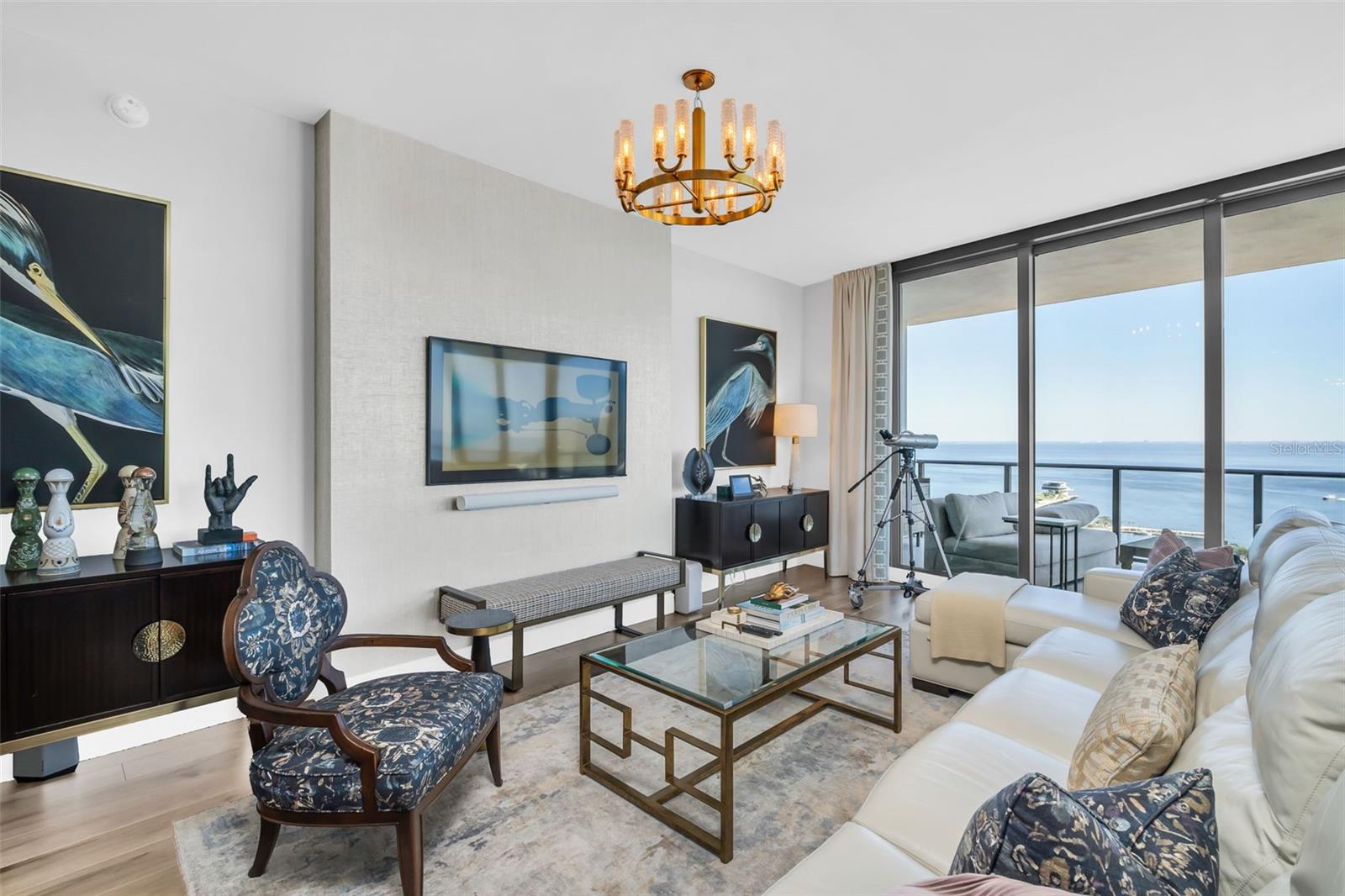 Perched high on the 30th floor, this stunning corner residence redefines elevated city living. Wrapping the coveted south corner of the tower, it showcases panoramic views that sweep from the tranquil blue waters of Tampa Bay to the glittering skyline and Gulf sunsets to the west. Inside, discover a world of refinement and design excellence. The expansive open-concept layout features hardwood floors throughout, 10' floor-to-ceiling windows, and three private terraces that blur the boundary between indoor and outdoor living. The sleek European-inspired kitchen and contemporary finishes create a seamless backdrop for entertaining or relaxed evenings at home. The residence also includes a private, climate-controlled storage unit and two premium parking spaces with an electric vehicle charger. Life at ONE St. Petersburg means access to the region's most impressive suite of resort-style amenities: a 40,000-square-foot elevated amenities deck with a 75-foot lap pool, private cabanas, spa, fire pits, outdoor kitchen, lush landscaping, and ample gathering spaces. Indoors, enjoy the Formal Social Room, Game Room, and Club Room, along with a state-of-the-art fitness and yoga center. A professional concierge, 24-hour security, and dedicated management team ensure a truly first-class living experience. Positioned in the vibrant heart of downtown St. Petersburg, you're mere steps from Beach Drive's world-class dining, art galleries, waterfront parks, theaters, and boutiques. From sunrise over the bay to sunset over the Gulf, this is the ultimate expression of the downtown St. Pete lifestyle; luxurious, walkable, and effortlessly sophisticated.