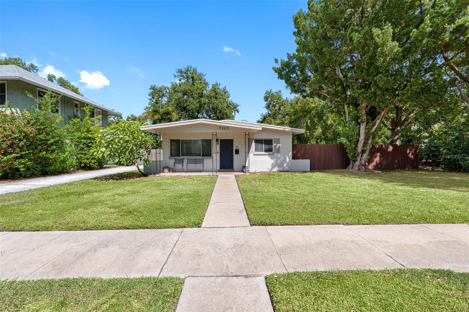 Recently updated, move-in ready home at 7101 4th Avenue North in St. Petersburg, non-flood zone and no hurricane damage. Beautifully remodeled, with a tasteful large modern kitchen featuring solid wood cabinets, quartz countertops, Samsung appliances with a bar and coffee area. In addition to the kitchen, the baths have also been completely updated with new tile and vanities. Throughout the whole house, Aqua Guard water-resistant engineered hardwood floors have been installed. The home also features a newer air-conditioning system, as well as upgraded electrical service and breaker box. Also, this year, a new solar system was installed that will save you money on your power bill. The property features a large backyard, with ample room for a pool, large deck, playground and many other ideas you might have. Behind the home is alley access to a one-car garage with attached laundry room. There is plenty of parking space behind for more cars, or even a boat or RV if you want. One of the best features of the home is that the location is at the end of a private brick-lined street, with access to the Pinellas Trail right next door. This home is close to Central Avenue which brings you downtown quickly, and minutes from the beach. This home has a lot of room and also has room to grow, ready for the future.