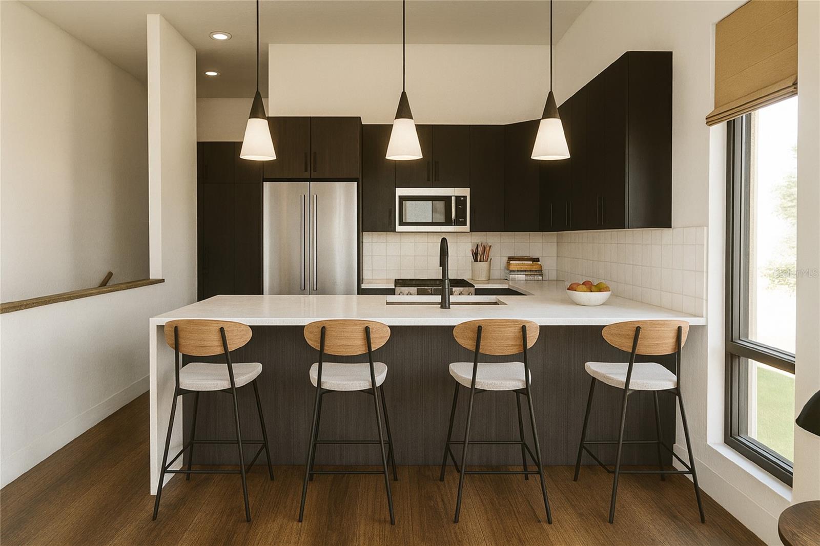Under Construction. Welcome to Junction Townhomes – Discover modern luxury and contemporary elegance in the heart of vibrant Central Oak, St. Petersburg. With no detail overlooked, this thoughtfully designed three-bedroom townhome features open layouts, expansive impact resistant windows, and high-end finishes that blend style, comfort, and natural light. The striking aesthetic blends bold elegance and refined simplicity, creating a perfect balance of drama and warmth. Enjoy sleek, modern luxury with the Metropolitan Essence design scheme, crafted to impress with a contrasting palette of deep blacks, soft greys and clean, contemporary lines. Featuring a skyview layout, the first floor welcomes you with a spacious bonus living room, guest bath and two bedrooms. Upstairs, the main living area unfolds with a generous 26’ x 16’ layout, 11 1/2-foot ceilings and effortless flow—perfect for both relaxed living and stylish entertaining. The custom designed kitchen has sleek European-inspired cabinetry, quartz countertops, stainless steel appliances and matte black fixtures. The primary suite features a generously sized walk-in closet and an en-suite bathroom, with elegant porcelain tile, quartz countertops and double undermount sinks. Each 3-bedroom home comes with a private patio and one assigned parking spot. Nestled among charming brick streets, historic Craftsman homes, and mature oak trees, Junction Townhomes are ideally located on the SunRunner rapid transit line—offering easy access to both downtown and the beach. Built in a NON-FLOOD zone with block construction, these homes offer the perfect blend of durability, beauty, and lifestyle convenience. Floor plans are for illustration and general information only and final design enhancements and construction detail may differ. Buyers are responsible for verifying all information to their satisfaction, construction completion anticipated early Spring 2026. Home is part of 2-10 warranty program, schedule your hard hat tour today!