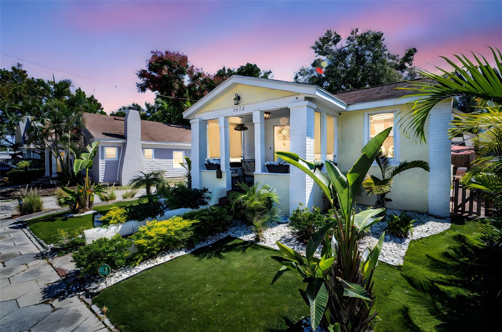 Welcome to your slice of St. Pete sunshine! This charming 2-bedroom, 1-bath home in the heart of the vibrant Euclid neighborhood perfectly blends modern updates with cozy Florida charm. Situated high and dry in an X flood zone with 50-foot elevation, you'll enjoy peace of mind and everyday convenience just minutes from downtown St. Petersburg's shops, dining, and waterfront parks. Step inside to a bright, open living space featuring luxury vinyl plank flooring throughout, modern white cabinetry, subway tile backsplash, and stainless-steel appliances in the cheerful eat-in kitchen. Thoughtful updates, including a newer roof (2015), A/C system (2018), water heater (2018), and updated electric and plumbing (2019), make this home move-in ready and worry-free. Outside, enjoy Florida living at its best with a covered front porch, artificial turf and lush landscaping in front, and a paver patio and sitting area in back, perfect for morning coffee or evening gatherings under the stars. There's also a one-car garage with additional street and side parking for guests. With low-maintenance features, modern upgrades, and prime proximity to Crescent Lake, trendy restaurants, and St. Pete's buzzing downtown core, this home offers an unbeatable combination of charm, convenience, and lifestyle.