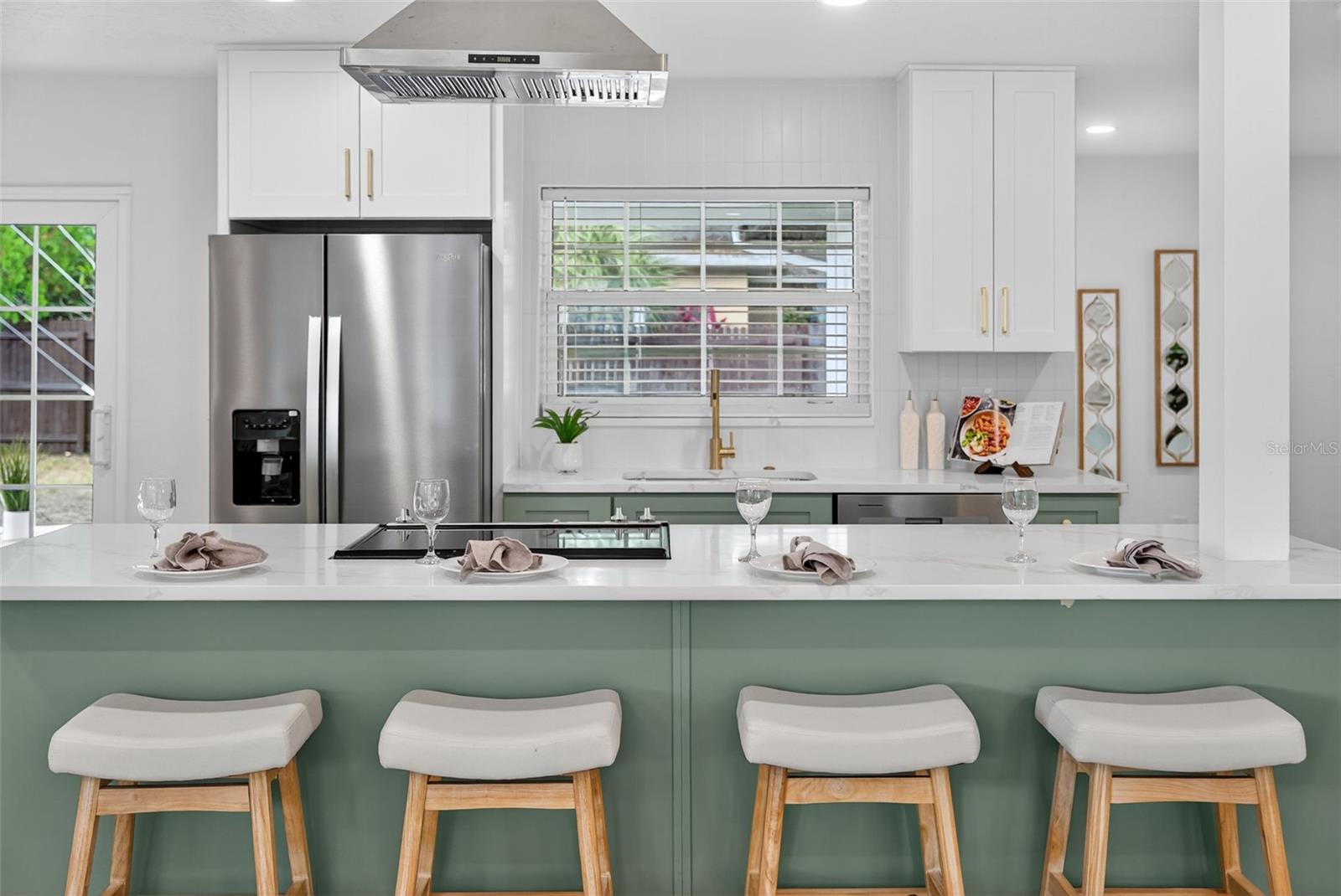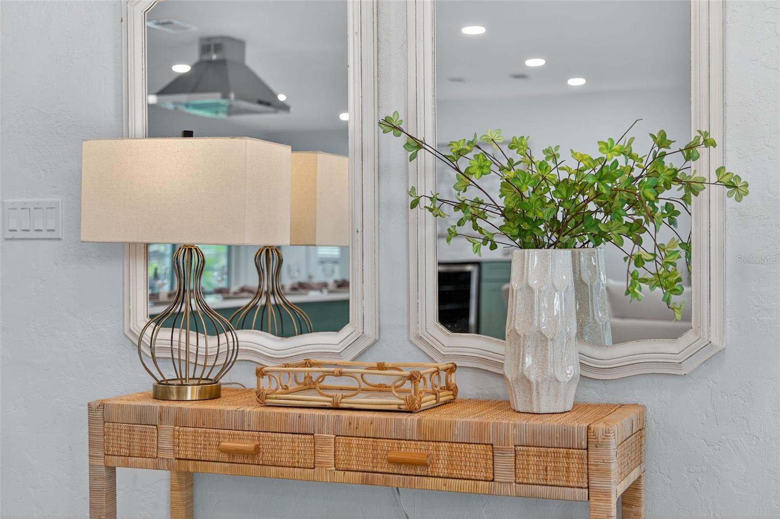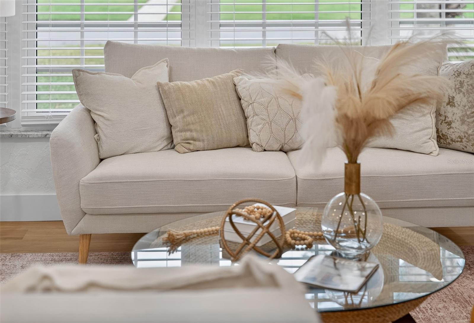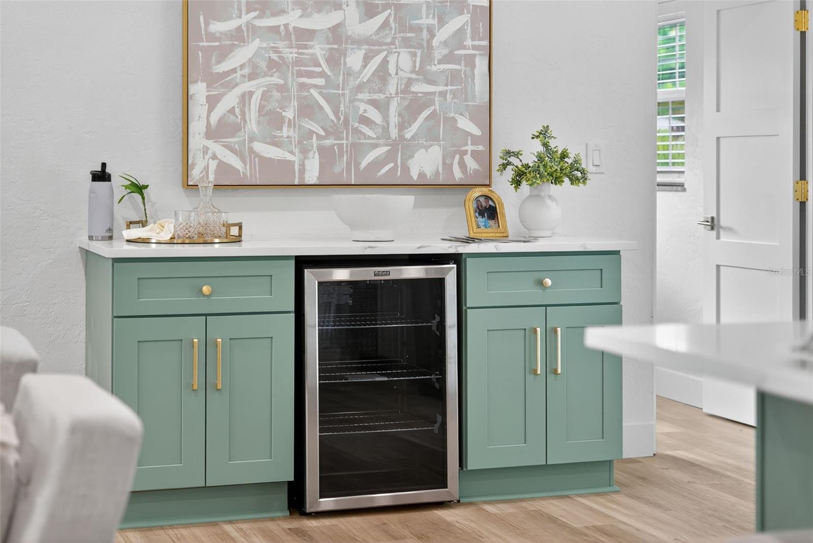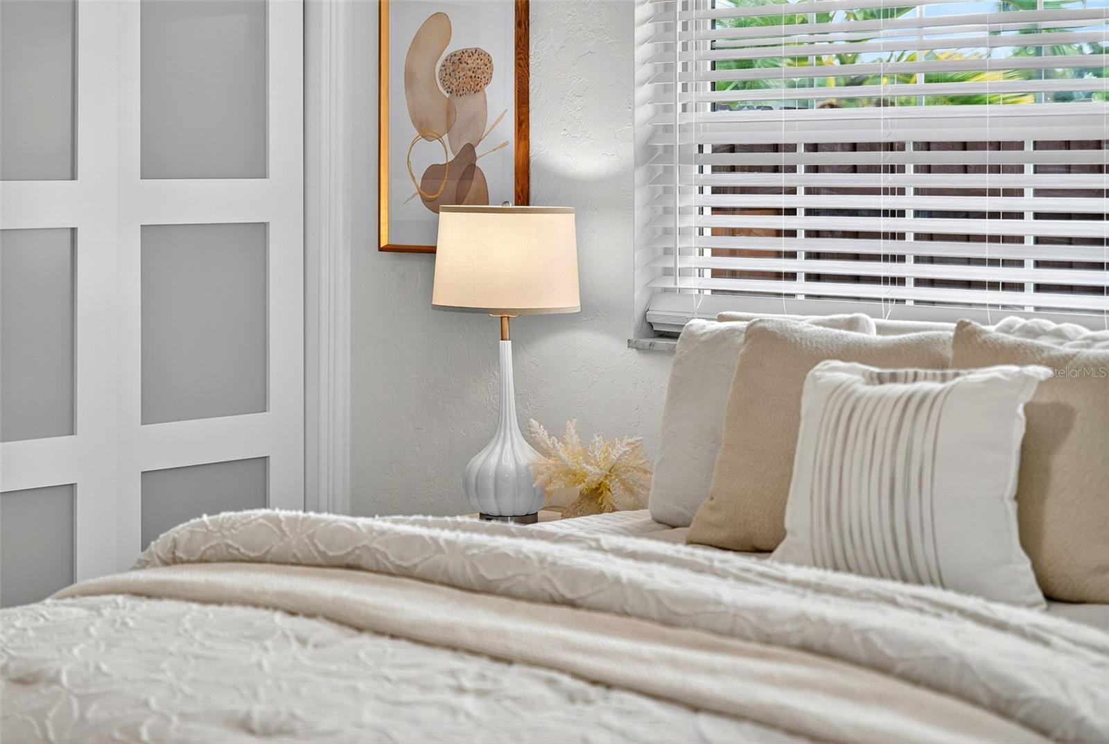 One or more photo(s) has been virtually staged. "Make Every Day Feel Like a Holiday" - Welcome to this stunning, fully renovated home in the desirable Holiday Park neighborhood of West St. Pete. Situated on a spacious corner lot, this 1,558 sqft residence seamlessly blends modern comfort with effortless Florida living. Step inside to discover a thoughtfully designed split-bedroom floor plan offering two guest bedrooms on one side of the home and a private primary suite on the other. The primary retreat features a gorgeous en-suite bathroom with a walk-in shower, dual vanity, and custom closets with built-in storage. The two additional bedrooms are generously sized and include built-in closet systems, sharing a beautifully updated hallway bath. A convenient interior laundry room and abundant storage, including multiple hallway closets and a large pantry, add everyday functionality. The open-concept living, dining, and kitchen areas flow seamlessly together, creating the perfect environment for relaxing or entertaining. Two sliding doors open to the covered lanai and backyard, extending your living space outdoors. The kitchen offers an organic yet contemporary vibe with muted green lower cabinets, crisp white uppers, stunning quartz countertops, and a full suite of new stainless steel appliances. A chic dry bar with a wine cooler and beverage fridge is perfectly positioned for entertaining or unwinding after a long day. Every detail of this home has been upgraded in 2025, including a new roof, HVAC system and ductwork, plumbing, water heater, PGT windows, and a stylish new front door with sidelights. Freshly painted inside and out, this home is truly move-in ready! Located in a high-and-dry, flood zone X area, this home is just minutes from the Gulf beaches, walking distance to schools, and close to shopping, dining, and entertainment. Downtown St. Pete is a quick 15-minute drive away, with both TPA and PIE airports approximately 30 minutes from your doorstep.