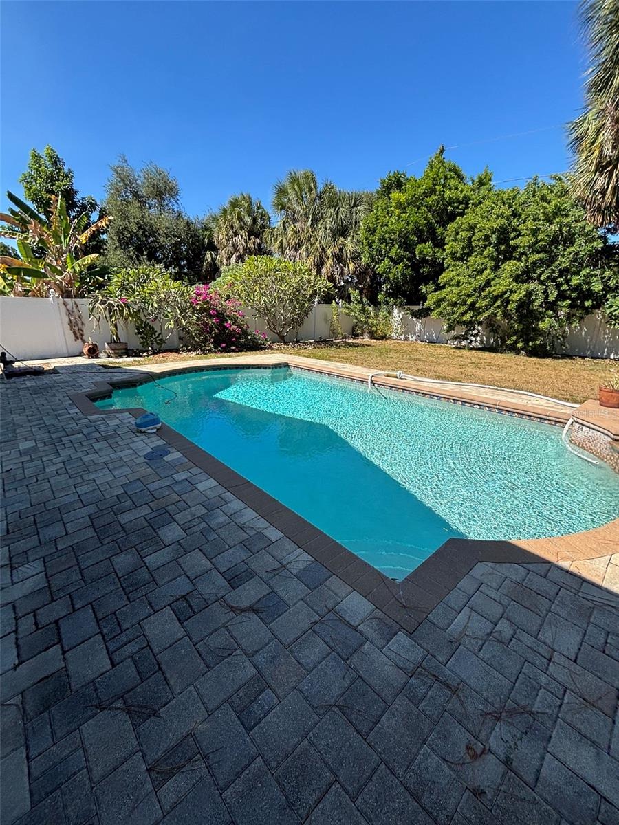 Welcome home to this beautifully maintained 3-bedroom, 2-bathroom, 2-car garage pool home — and best of all, it’s not in a flood zone! Step inside to find gorgeous bamboo flooring throughout most of the open-concept floor plan. The kitchen features wood cabinetry, granite countertops, stainless steel appliances, and a breakfast bar overlooking the spacious family, dining, and living areas — perfect for everyday living and entertaining. An indoor laundry room conveniently sits just off the kitchen. The primary suite offers vaulted ceilings, a walk-in closet, and an ensuite bathroom with dual sinks, a large glass-enclosed shower, and direct access to the all-weather screened porch with removable windows. From the porch, step out to your private backyard oasis featuring a sparkling saltwater pool with a spillover spa, surrounded by a vinyl fence for privacy and plenty of room for family, pets, and gatherings. The porch can also be accessed from the dining area, blending indoor and outdoor living effortlessly. Located close to shopping and dining — with a new Publix being built right across the street! Just over a mile from the Tyrone Square Mall area and Sprouts grocery store, and only a short drive to St. Pete’s award-winning beaches, vibrant downtown, and two international airports.