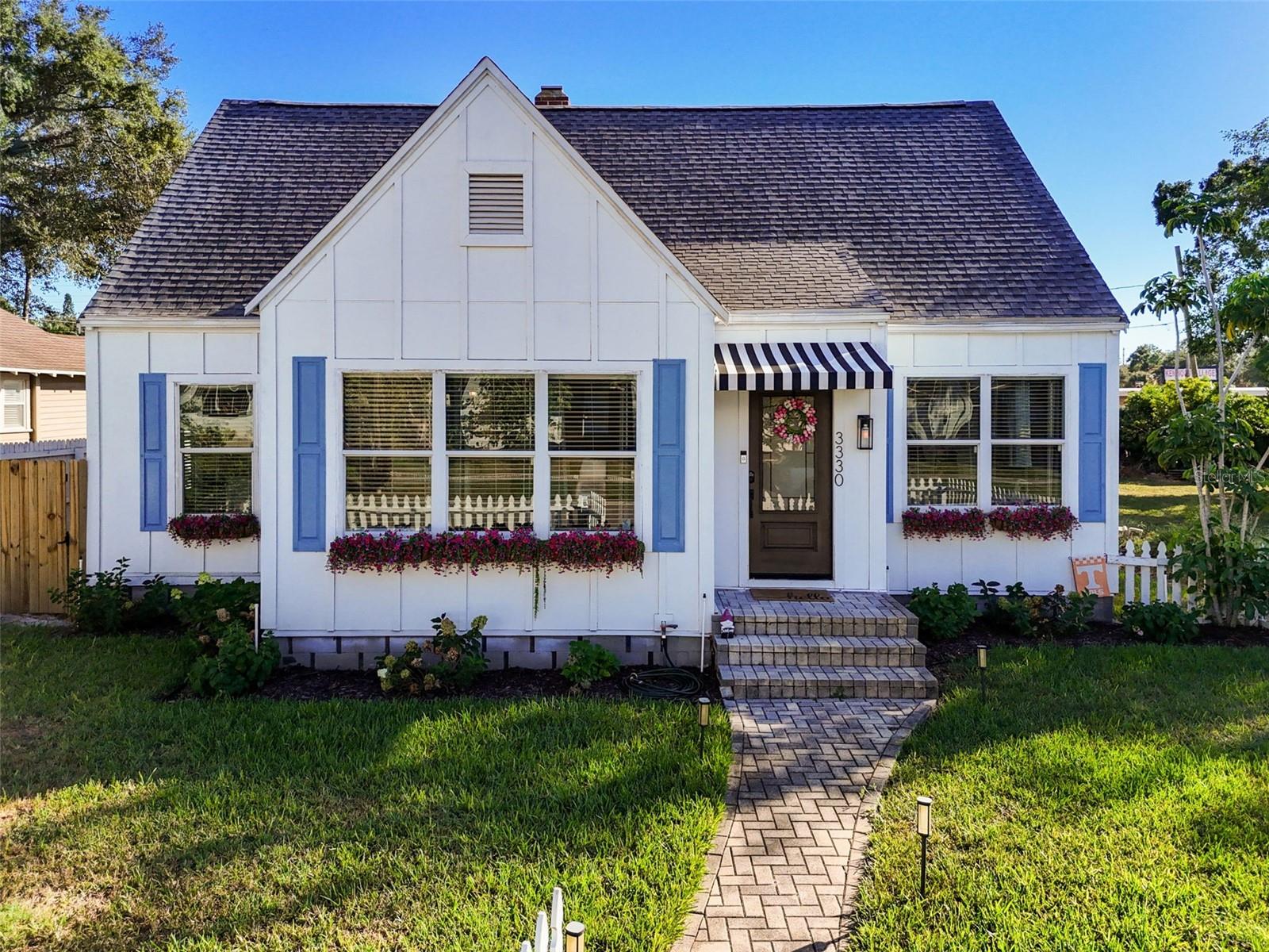 Located in the heart of Historic Kenwood, this 1939 Tudor-style residence blends timeless character with thoughtful updates. A classic white picket fence frames the front yard, while board and batten Hardie board siding, backed with Tyvek wrap, enhances the homes curb appeal, energy efficiency and long-term value. A four-year-old roof adds piece of mind. Inside, luxury laminate flooring extends throughout the home. Each room features a newer mini-split air conditioning system, offering customized climate control. The layout includes four full bedrooms, ideal should you need a flex space for a home office, gym, or fourth bedroom. Two updated baths and a modernized kitchen complete the interior. The fully fenced in backyard is designed for entertaining, featuring an oversized deck with ample space for outdoor dining, grilling, and even an outdoor kitchen or pizza oven. Should you desire a pool there is room for one! The home was recently inspected and passed the four-point inspection required to secure homeowners insurance, offering added confidence for the next owner. Historic Kenwood is known for preserving the neighborhood’s long-term residential character and desirable location not located in a flood zone. Located just minutes from downtown, art districts and the Gulf Coast’s iconic beaches, this residence blends history, comfort and accessibility in one of St. Petersburg’s most vibrant neighborhoods. Floor plans are available and attached video link and Matterport tour.