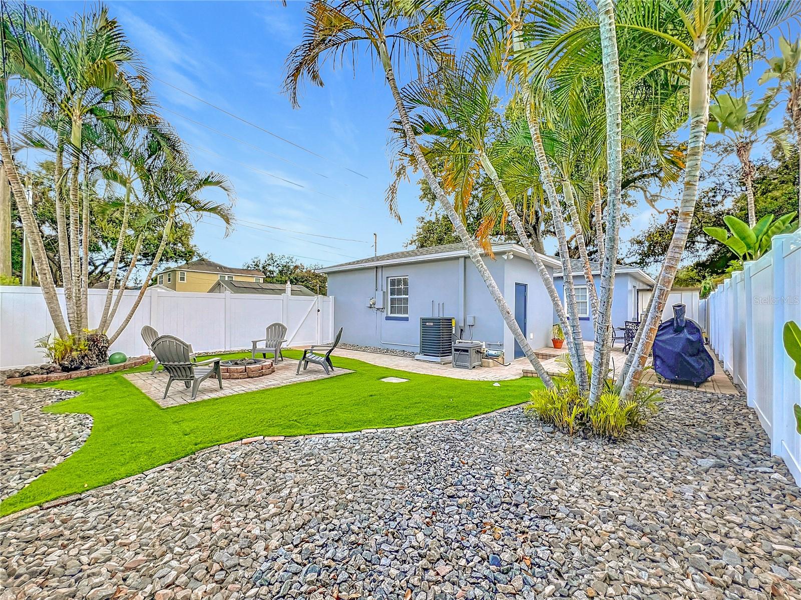 Discover this delightful 2-bedroom, 1-bathroom single-family home in Magnolia Heights, perfectly positioned on a spacious corner lot. Filled with natural light, the inviting layout offers a cozy and move-in ready atmosphere. Inside, enjoy stunning hardwood floors paired with ceramic tile, elegant granite countertops, modern stainless-steel appliances, and ceiling fans throughout most rooms. The attached 1-car garage provides secure parking and extra storage. Outside, the large yard presents endless opportunities for gardening, entertaining, or future expansion. Relax in the backyard oasis featuring a generous paver patio, winding walkways, a firepit surrounded by low-maintenance artificial turf, lush tropical landscaping, and a sizable storage shed. Perfect for first-time buyers, downsizers, or investors, this home has everything you need. Located in a tranquil neighborhood in close proximity to downtown St. Petersburg, with easy access to local shops, parks, and schools, this charming home is ready to welcome you.