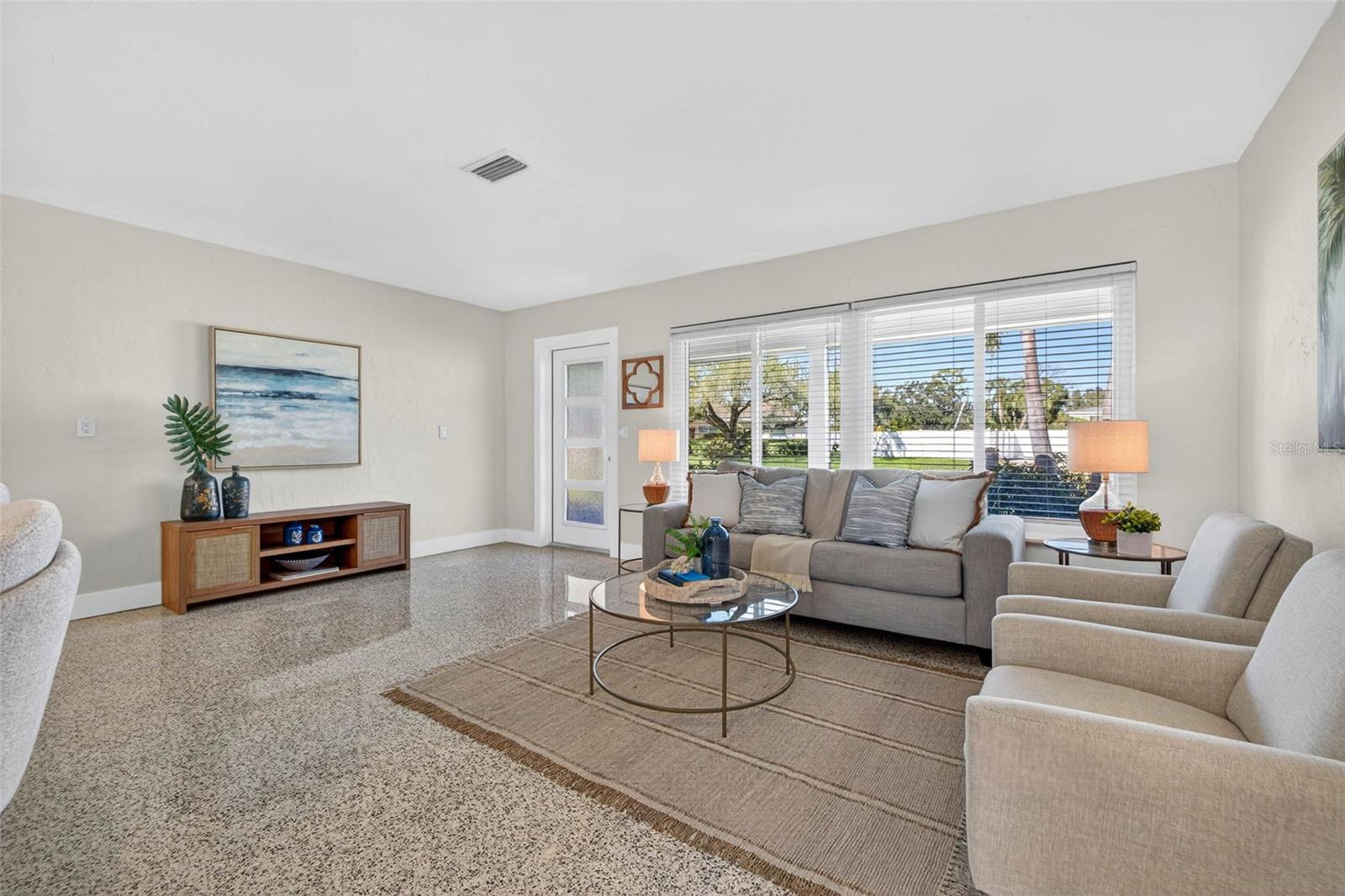 Beautifully Renovated 3-Bedroom 3 bath POOL HOME on a HUGE CORNER LOT! This fully updated home offers modern finishes, excellent functionality, and a private outdoor retreat. The interior features: refinished sparkling terrazzo floors, an open-concept living and dining area, a renovated kitchen with new appliances, a coffee bar, and a wine bar with a beverage refrigerator. The primary suite includes an updated bath, and both secondary bedrooms have ample space and natural light. HOME FEATURES: updated NEW electrical wiring and insulation, NEW A/C system, and a NEW hot water heater. A new roof is currently under contract to be completed 2025. Sewer lines were replaced in 2018, and the fascia and soffits have been upgraded with durable Hardie Board. The backyard includes a custom swimming pool and spa which was added to the property in 2023 with a spacious stone pool deck. Hurricane Impact Windows in 2018 along with lush landscaping creates a private space for relaxation and entertaining. This move-in ready home combines thoughtful upgrades with comfortable indoor–outdoor living. Schedule your showing today.
