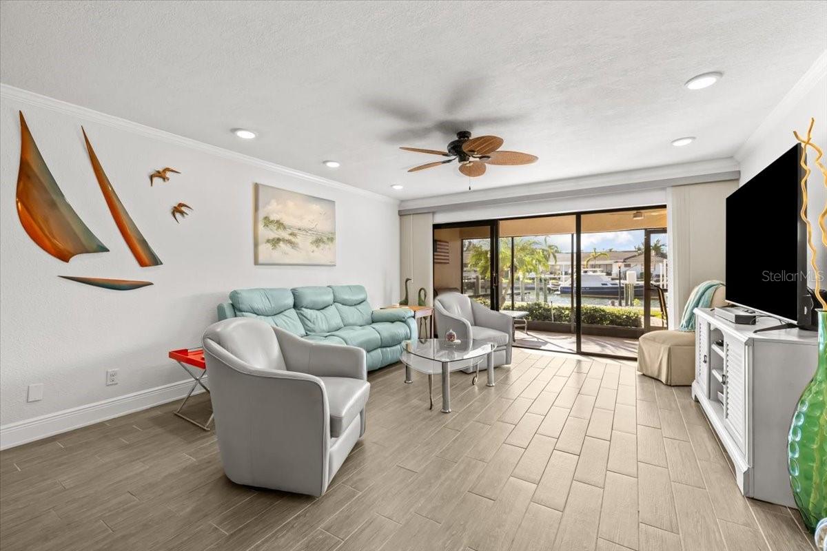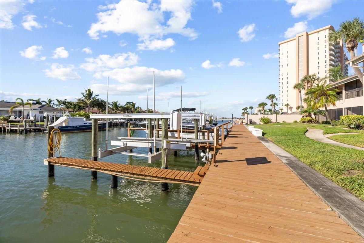 DEEDED BOAT SLIP/ LIFT • PRIVATE GARAGE • FULLY RENOVATED WATERFRONT CONDO This rare first-floor end unit is the only one available with the expanded footprint, perfectly positioned on the serene side of the community along a quiet canal, offering peaceful water views and you boat lift just a few steps away. Step outside to your brand new (2025) 12,000-lb deeded boat lift sitting just steps beyond your lanai, and in under five minutes you’ll be cruising into the Gulf of Mexico. Whether it’s a quick run to the sandbar, a sunset dinner by boat, or an off shore fishing trip, this is the location for serious boaters. This ground floor unit remained completely dry through past storms, offering peace of mind. Inside, the home has been completely reimagined with timeless coastal style, designer finishes and a brand new HVAC system for year round comfort. A brand new standing seam aluminum roof enhances both island aesthetics and storm-ready durability. The chef’s kitchen steals the show with custom tile backsplash, high-end stainless appliances and an oversized island topped with butcher block, perfect for entertaining. A sleek built-in workspace with glass-inset cabinetry provides an elegant, functional nook for remote work or planning the next boat day. The open layout flows effortlessly through the dining and living areas, anchored by wood tile flooring and recessed lighting that amplifies the airy coastal vibe. Massive sliders flood the space with natural light and open to your oversized screened lanai, the larger style in the community, offering panoramic canal views, gentle breezes, and a seamless indoor-outdoor connection. The waterfront primary suite offers a serene retreat with a walk-in closet and a beautifully updated en suite bath. A true split floor plan ensures privacy, with the guest bedroom, bath, and in-unit laundry tucked on the opposite side. Outside, your private garage easily accommodates a full-size vehicle with additional space for paddleboards, fishing gear, and beach toys, an incredibly rare find for waterfront condo living. The property’s heated and cooled waterfront pool and spa promise resort-style comfort year-round, while lush tropical landscaping and community barbecue grills create the perfect setting for effortless dockside dining. All of this just 10 minutes from Downtown St. Petersburg, 2 miles from St. Pete Beach, and moments from Fort De Soto’s white sand beaches. Whether you’re seeking a vacation retreat, investment property, or your forever waterfront escape, this one checks every box.