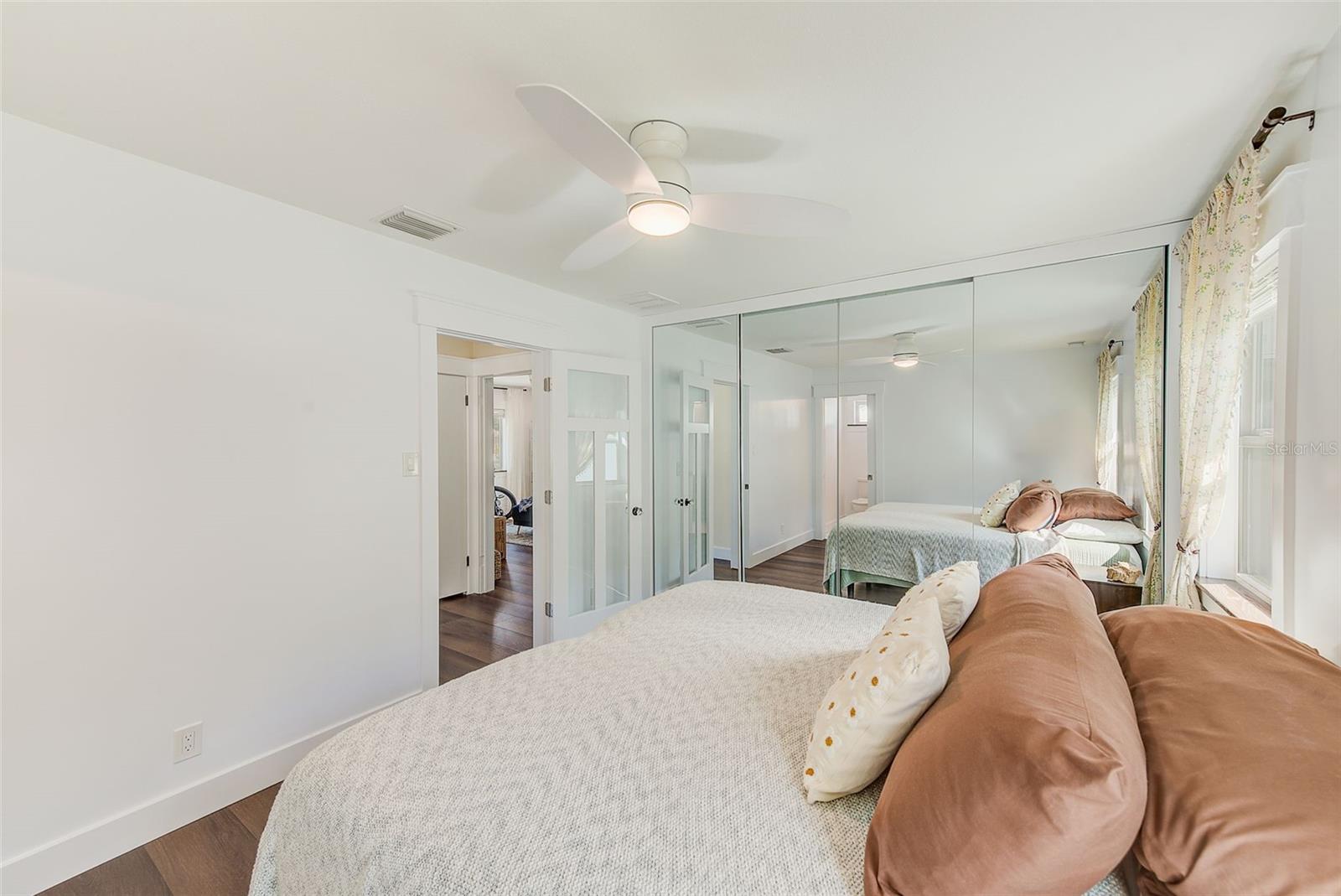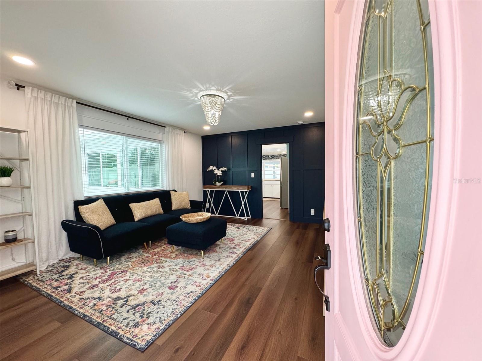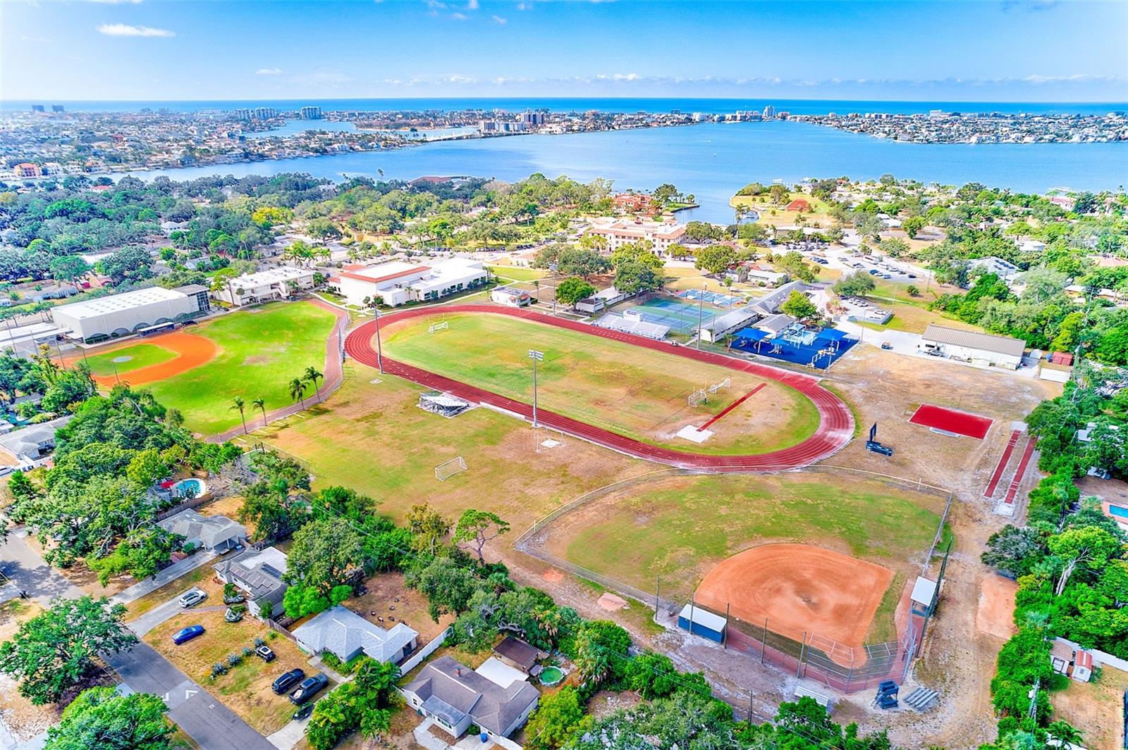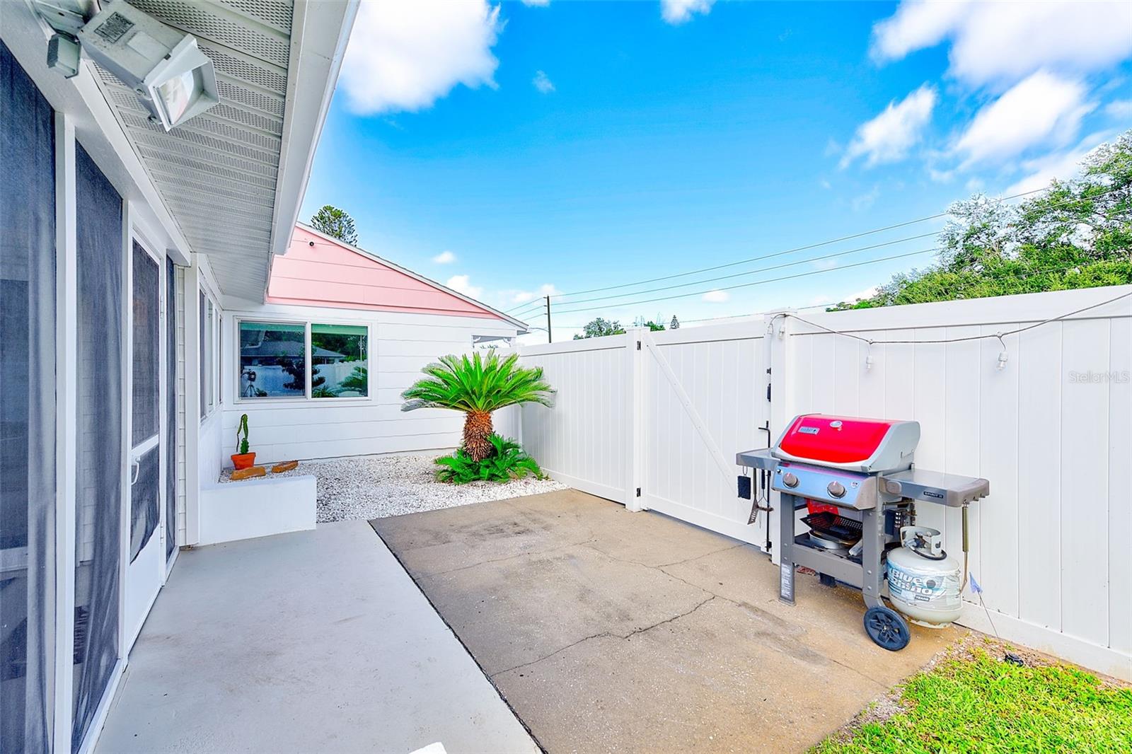 Welcome to an impeccably remodeled 2-bedroom, 3-bath home on a handsome corner lot with room to add a pool — in a full no-flood zone, less than 10 minutes from the beaches of Treasure Island, Madeira Beach and St. Pete Beach, and only 10-15 minutes to vibrant downtown St. Petersburg. Inside, the style feels entirely custom-designed: luxury vinyl plank flooring throughout, three beautifully finished bathrooms with distinctive tile work, and abundant attention to detail. The third full bath (recently constructed with future pool plans in mind) is sleek and modern; the second bath is a statement room with oversized polished porcelain tile (60×120), a freestanding tub set against a deep blue vertical tile accent wall and a floating wood vanity with brushed-gold fixtures; the primary bath exudes spa-like elegance with marble-look wall tile, hexagonal floor tile and a slatted wood-vanity design. The kitchen is full of personality and charm: butcher-block countertops paired with light-blue upper and white lower cabinets, stainless-steel appliances, an island cooktop and a bay window at the sink. In the adjacent dining area, custom window bench seating complements a matching butcher-block table, and skylights overhead flood the space with bright, cheerful natural light. Major systems and structural upgrades have been completed 2023-2024: new HVAC with ductwork, full 200-amp electrical service and panel, hurricane-impact sliders & windows, fresh exterior paint (2024), new vinyl privacy fence and gating for vehicle/boat/RV storage, programmable outdoor lighting, well-pump irrigation system, and two large aluminum storage sheds (16×8 & 7×6) for generous storage without rust. Mature Peruvian Apple cacti anchor the landscaping, together with recently planted palms, avocado and orange trees — a lush backdrop that complements the clean modern interiors. This home is truly move-in ready, thoughtfully updated from top to bottom, offering designer styling, peace of mind, and a prime location.