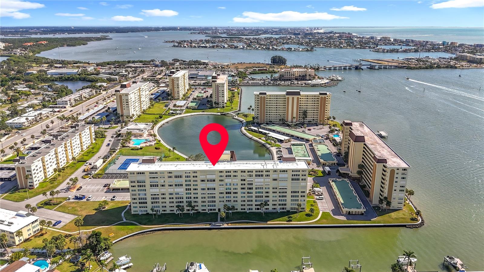 Enjoy spectacular water views from this 8th-floor 2-bedroom, 2-bath furnished waterfront condo in the highly sought-after 55+ gated community of Sea Towers! This spacious 1,040 sq. ft. residence features an open kitchen layout and luxury vinyl plank flooring throughout. Relax and take in the views of the Intracoastal from your living area or Florida room. Enjoy entertaining and cooking in your kitchen that offers water views from both directions, has a breakfast bar and is open to the living and dining areas. The primary bedroom has an ensuite bathroom with a tub and shower and a walk-in closet. An added bonus is the Florida room that is just off of the living area and the primary bedroom. Enjoy great waterviews from the Florida room. The 2nd bedroom is nice and spacious and has a full bath attached to it. There is also a utility room that offers great space for storing larger items. This unit comes with a storage unit that is located on the same floor of the condo. There is a laundry room that is also located on the same floor as the condo. You have one covered parking space that is great because you will only have another car on only one side of your car, the other saide is just a wall, since the space is at the end of the covered parking area. Sea Towers offers resort-style living with outstanding amenities, including two heated pools, a soon to be renovated clubhouse, fishing pier, full-size gym, billiards room, entertainment area, tennis and pickleball courts, shuffleboard, walking trail, and a covered grilling area. The community also has a full-time on-site manager and an exciting new marina is anticipated to be coming soon. Ideally located just minutes from beautiful Madeira Beach, shopping, dining, and entertainment — this vibrant waterfront community offers the best of Florida living!