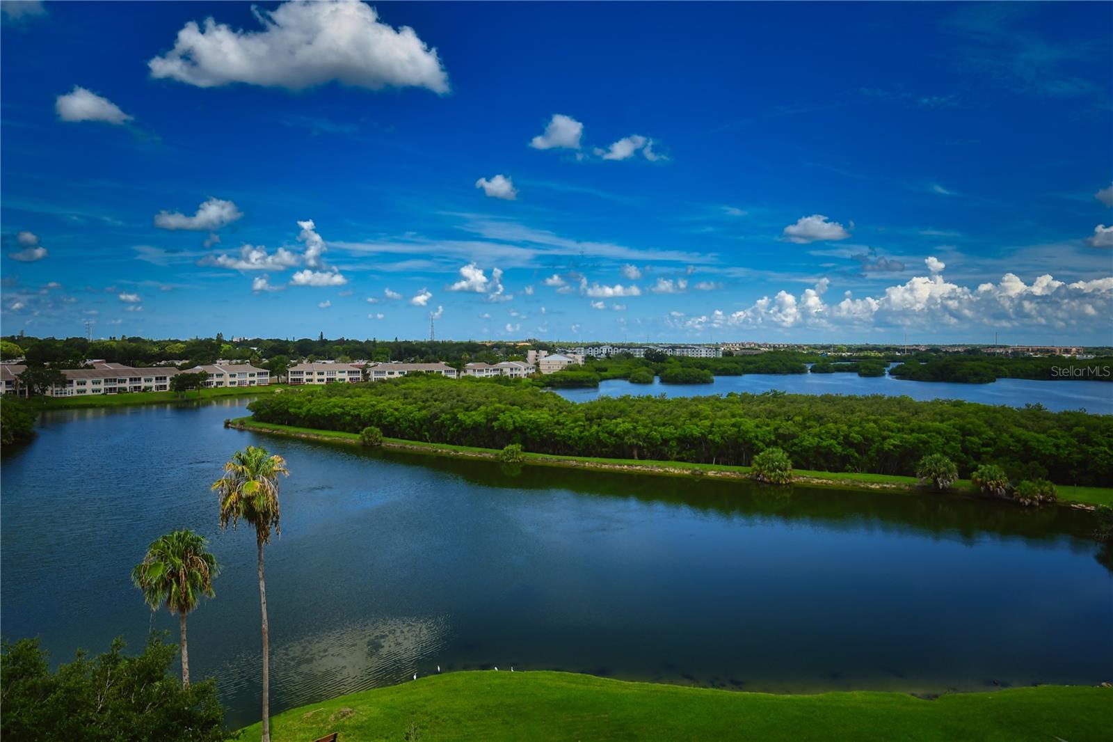 Exclusive waterfront condo, best view in complex, garage and beautifully update. located I the Shores of Long Bayou: security gated community. Nestled in the 77 acres of nature preserve in the Pinellas County. Gorgeous water view and of preserve. Newer Roof, newer HVAC, with UV disinfection system installed 2024. Quartz Kitchen counters, new appliances, fridge filtration system and.whole house filtration system. Hunter Douglas Blinds, Easy care luxury vinyl flooring throughout. Electric Hurricane shutters, Lot of storage, fabulous screen enclosed Florida room, spacious open deck that wraps around. Large one car garage under bldg, elevator. Several miles of walking area, two pool, fitness center. Club house, heated spa, kayaking and fishing, close to the Pinellas Trail. Seminole shopping centers, close to the beaches. Hardly used since renovations.