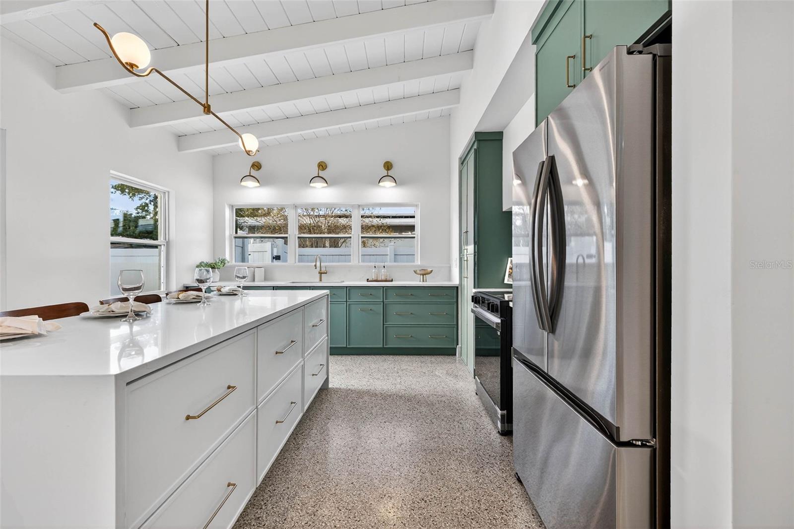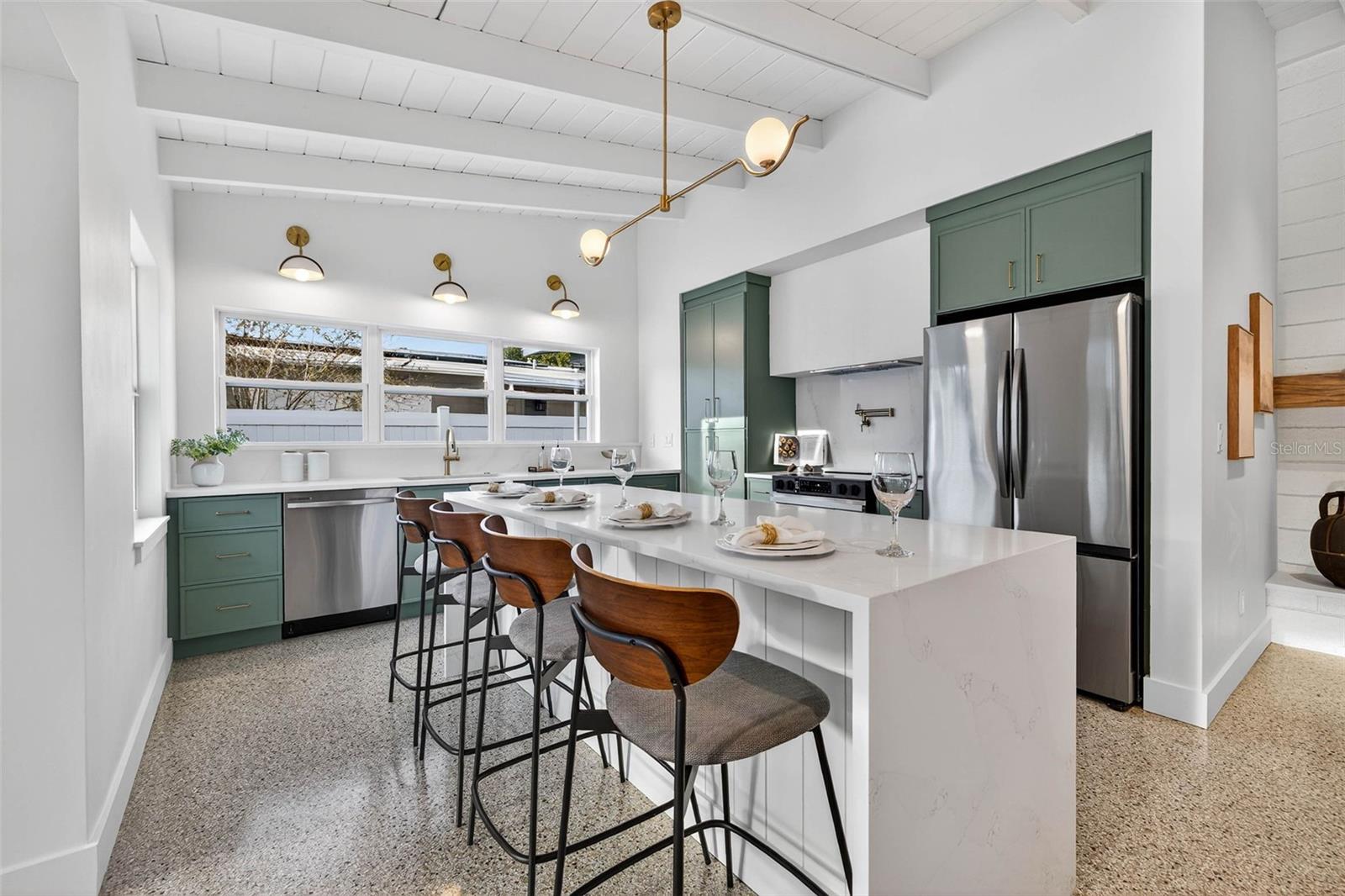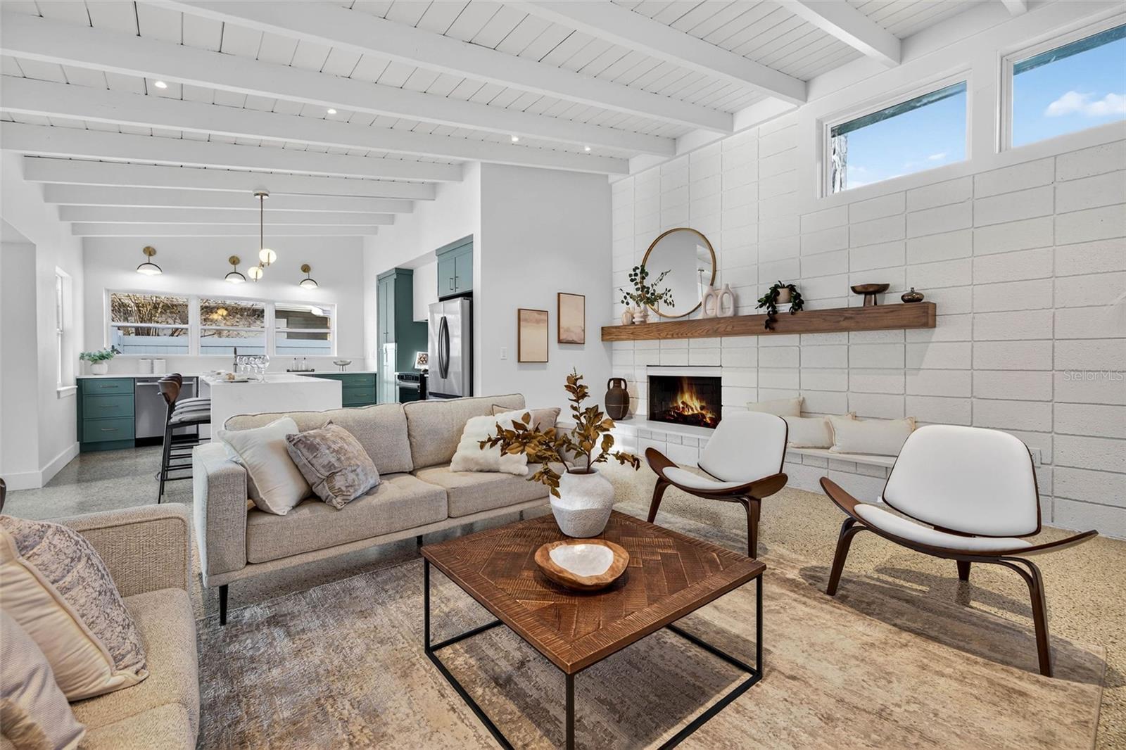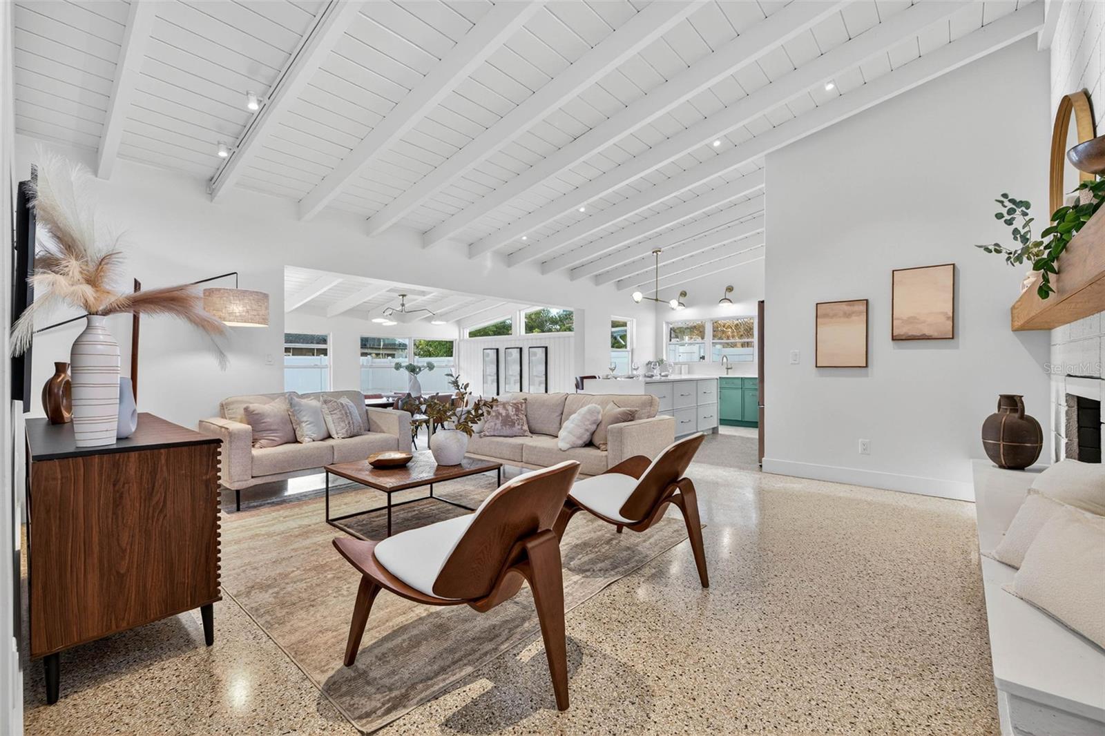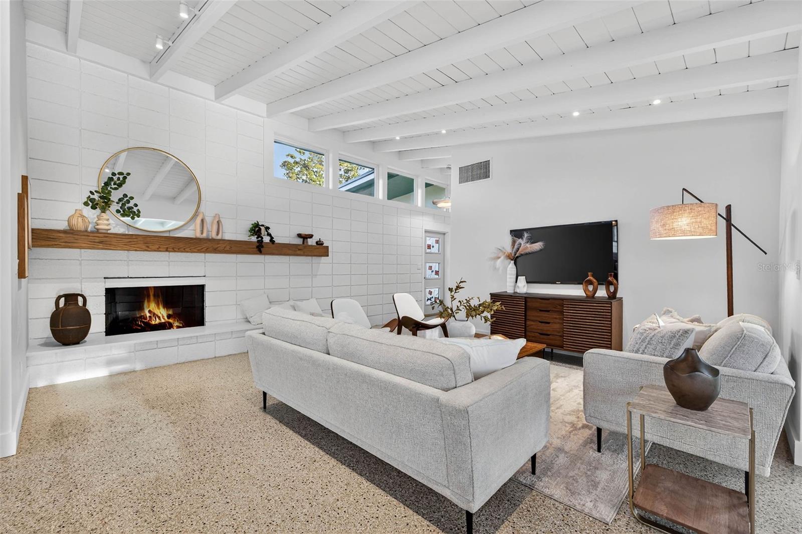 Located in the desirable Lakewood Estates neighborhood - welcome to your Mid Century Modern dream home come true. Originally built in 1957 and now meticulously reimagined with 2025 updates while still keeping its historical charm. This modern design through a minimalist approach, iconic lighting fixtures, open floor plan, and a mix of textures and patterns, create a visually captivating and functional home. When entering the home you are immediately greeted by sleek lines, original Terrazzo floors and a seamless indoor outdoor living experience that exudes sophistication and charm. The spacious living room turns cozy with a wood burning fireplace. Beyond the living space is your "want for nothing" kitchen with a beautiful Calacatta Gold quartz island, all new appliances and beautiful cabinetry. Hidden behind what appears to be a pantry door is a sizable scullery with plenty of storage, a sink, laundry area and its own entrance. Truly a must see!! Entertain your guests with a formal dining experience while overlooking your large yard and pool. The bedroom arrangement is perfect as they are all located at one end of the home for privacy. Two equally sized bedrooms with plenty of storage share a beautifully tiled bath full of natural light. The large primary bedroom has an equally beautiful ensuite which is a perfect oasis away from it all. This home boasts all updates in 2025, original Terrazzo floors throughout, an in-ground pool, a non-flood zone and two car parking garage. Don't walk - but RUN to see this incredible masterpiece as it won't last long.