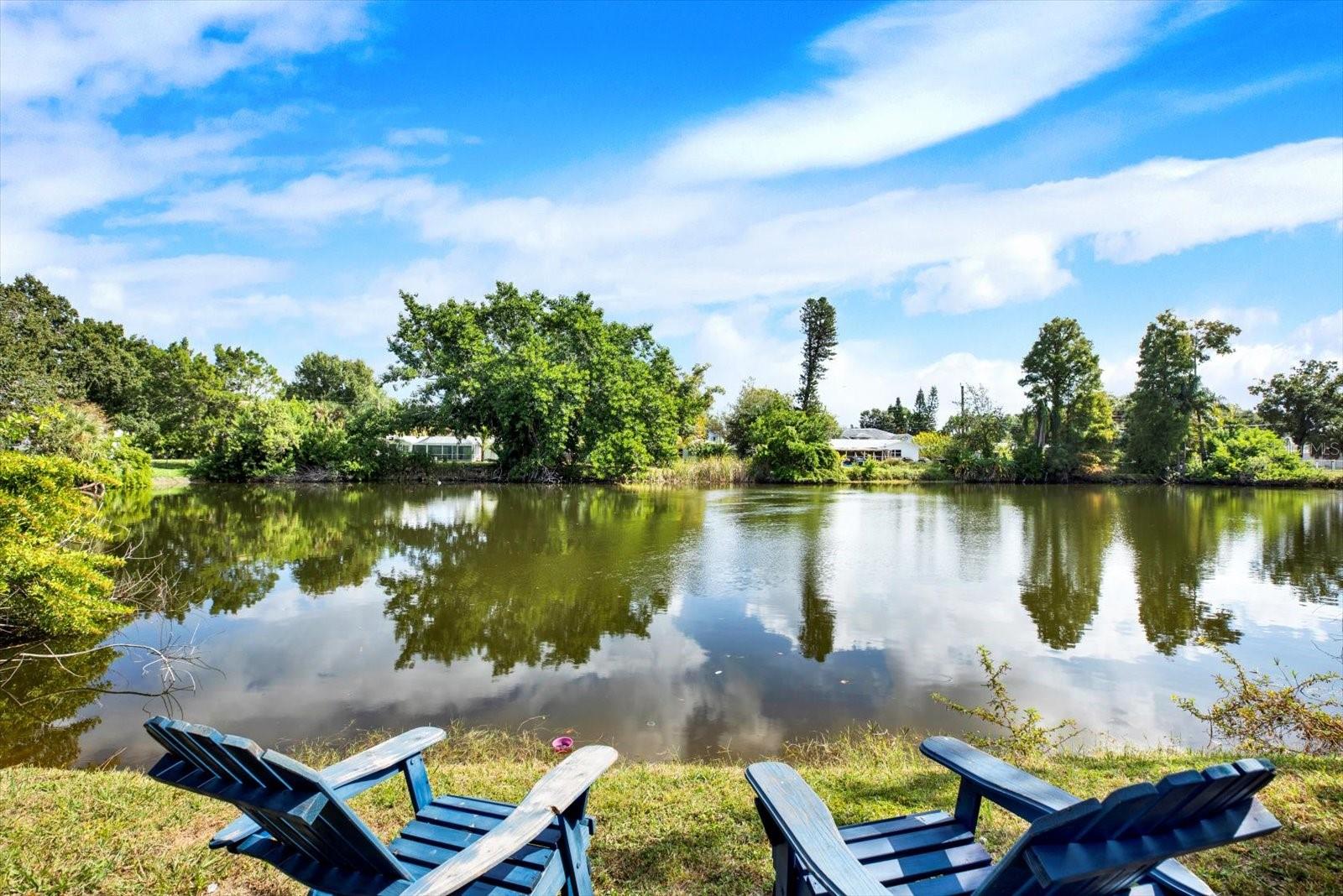 Lakefront beauty in desirable Meadowlawn! This updated pool home offers a 5-year-new roof, hurricane-resistant windows, and an updated master bath (2022). Enjoy a spacious layout with large living and dining areas and a stunning kitchen featuring dark cabinetry and stainless-steel appliances. This property is high and dry and no history of flooding! The outdoor space is incredible—perfect for relaxing or entertaining around the screened saltwater pool overlooking the lake. There is also a secondary lanai that overlooks the lake. Additional upgrades include solar panels with generator and safety bypass switch, Smart thermostat, exterior cameras, retractable awning, RV/boat parking, new energy-efficient pool pump (2023), and hot water heater (2023). Flood insurance approx. $1,521/year. Convenient to shopping, Downtown St. Pete, and easy access to Tampa. This home truly has it all!