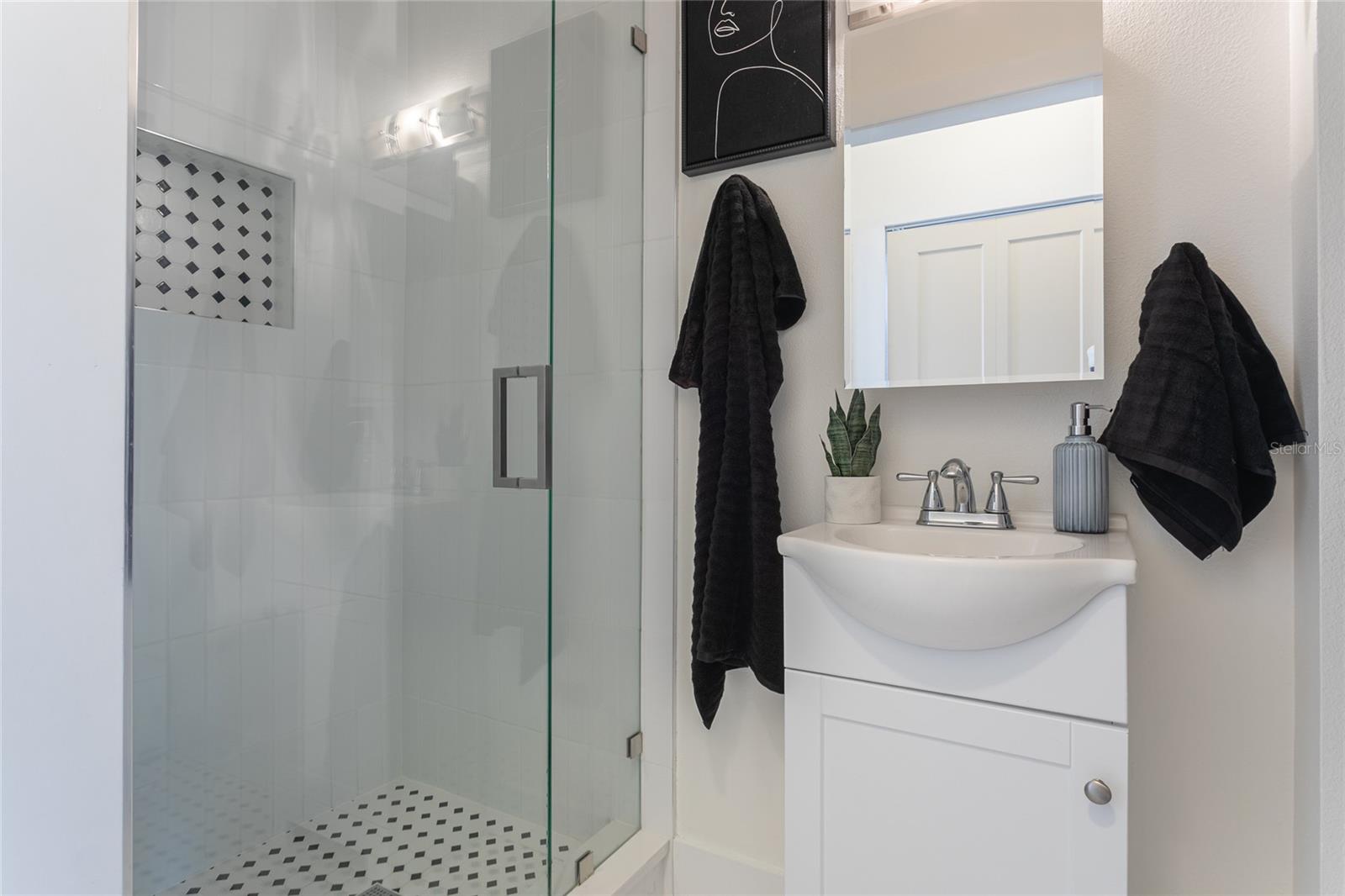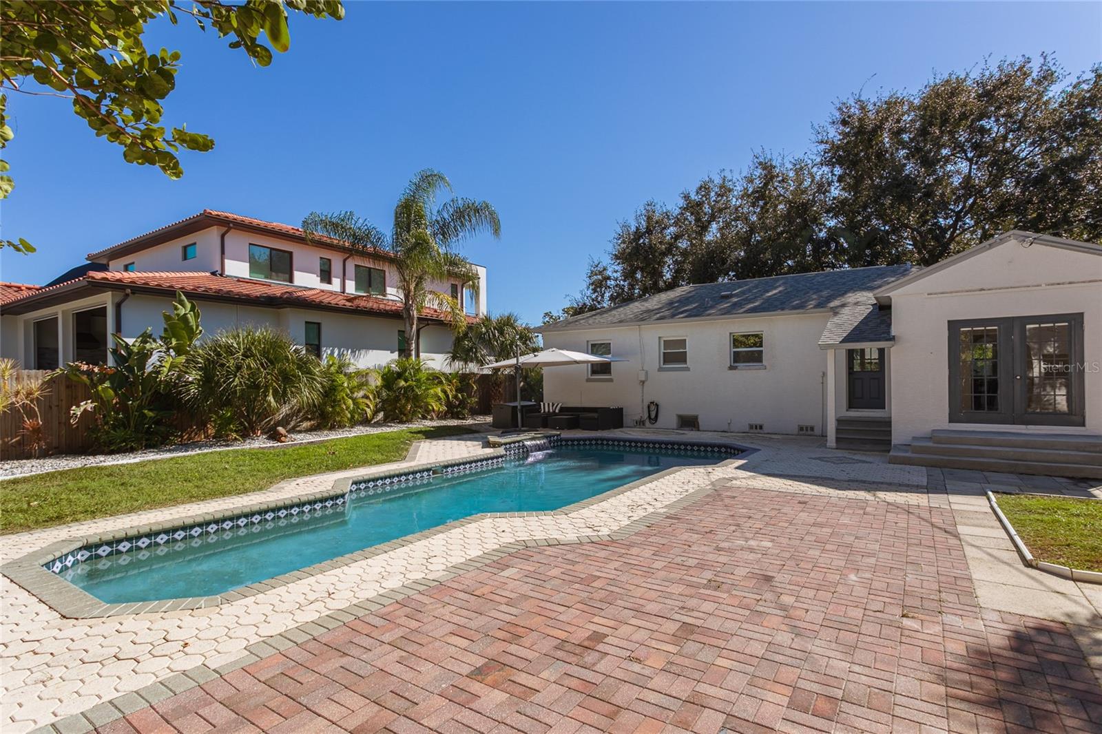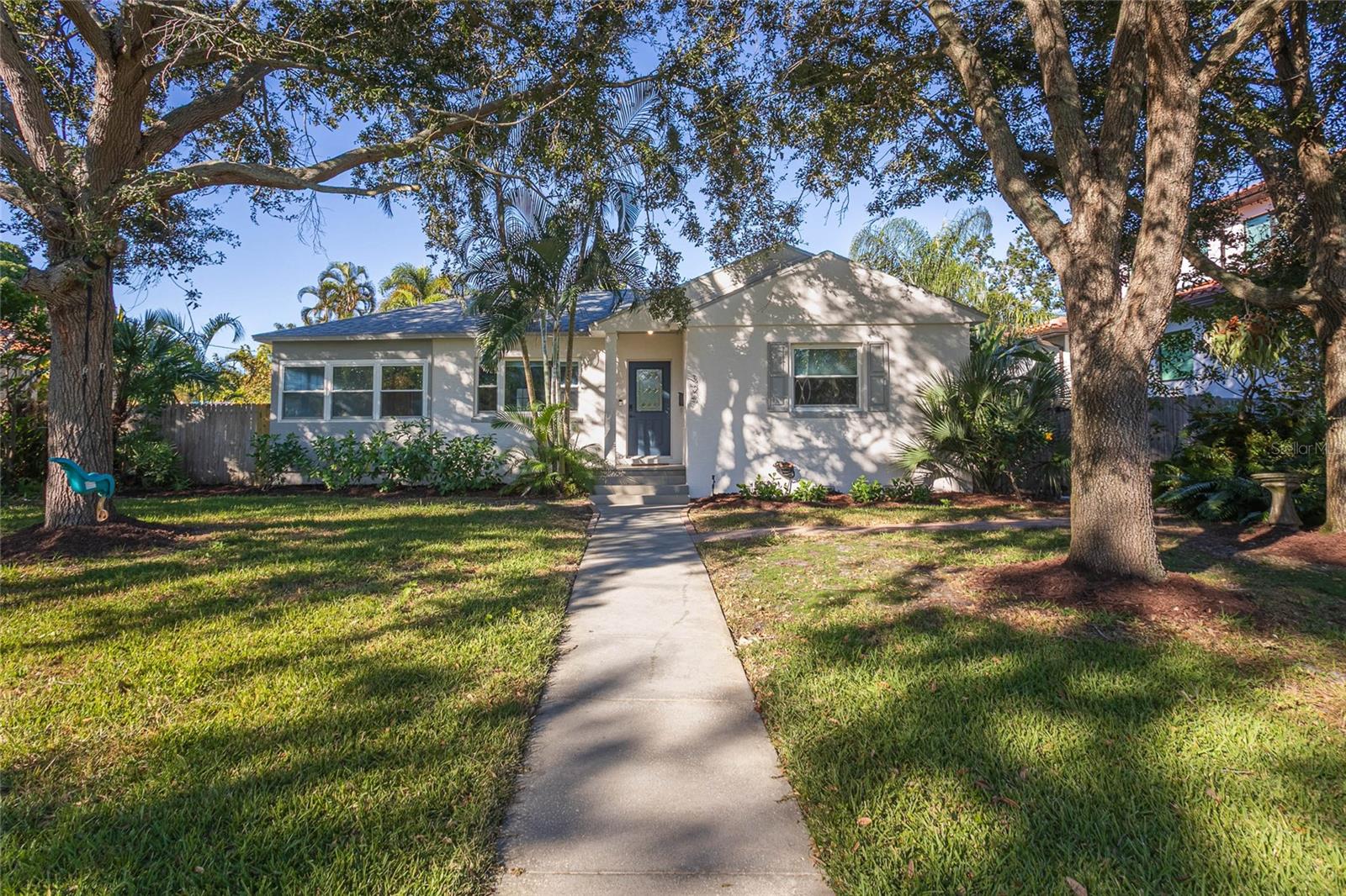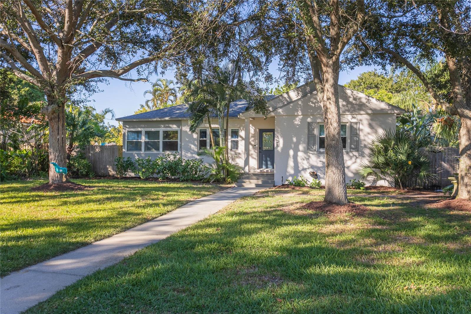 Located in Snell Isle Shores, just steps away from the famous Vinoy Golf Course and one block away from the serene Coffee Pot Bayou, this three bedroom home is sure to win you over with its mix of character with modern upgrades. Plus, NO WATER INTRUSION from Hurricanes Helene & Milton per the owner! The kitchen was beautifully remodeled in 2022, and the original wood floors were refinished in 2023, creating the perfect blend of old and new. Two bedrooms off to the right share a hall bathroom, and through the dining room you will find a hallway leading to the potential third bedroom or den, a hall closet that doubles as laundry, and a gorgeous updated bathroom with stand up shower (renovated 2024). One of the most exciting features of this property? A detached air conditioned flex space not counted in the heated square footage of the home (formerly used as an office) is waiting for the next vision... will it be a study area, hobby room, lounge, yoga studio, amazing gym, or even a "pub shed" while you entertain guests at the pool? Let your imagination run wild. Thanks to the large lot, your backyard patio and green space is not compromised by the size of the large swimming pool - you get the best of both worlds! And as a bonus, the swimming pool comes with a child safety fence ready to go if needed. Lastly there is a parking pad off the alley behind the fence for those who wish to keep cars off the street. Also just a few blocks away is Crisp Park which boasts the locals' favorite boat ramp and playground, and 2 miles to downtown St. Pete! Plus some of the best grocery shopping available: Whole Foods, Trader Joes, Fresh Market, and Publix... all within a 5 minute radius! Important updates include: roof (2019), HVAC (2021), most windows replaced with hurricane impact rated.