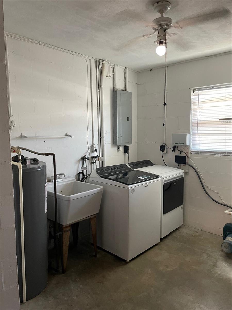 Non-Flood zone X. Pride of Ownership neighborhood on low traffic street. just off of Pinellas Point Dr. Approximate 5 min. drive to Seville Square Shopping Center for groceries, banking, gas station, etc. Easy care terrazzo flooring, 16x16 ceramic tile. Many closets including coat closet by the front door, 2 closets in hallway and linen closet in hall bath. Lighted bedroom closets. Retro tiled bathrooms and kitchen counters. Florida room light and bright with natural light plus door to the roofed & screened lanai. Kitchen has closet pantry with pull-out shelves, large corner cabinet to left of the double sink. Over-the-range microwave. Trane a/c. Fenced rear yard. New roof in May 2020. The oversized double garage has 1/2 bath, a laundry sink along with a storage closet. & room for a workbench, if desired. Minutes to Sunshine Skyway, I-275, US 19 and points south & north. Short drive to beaches. Lots of nature close by: Maximo Park and boat ramps to the west, as well as Lake Vista Recreation Center with public pool, skate park, fitness center, walking trails, tennis courts; Bay Vista Waterfront Park w/recreation building, boat ramps, playground and picnic shelters; north is Boyd Hill Nature Preserve and Lake Maggiore waterfront park. Note: sprinkler system sold "as is".