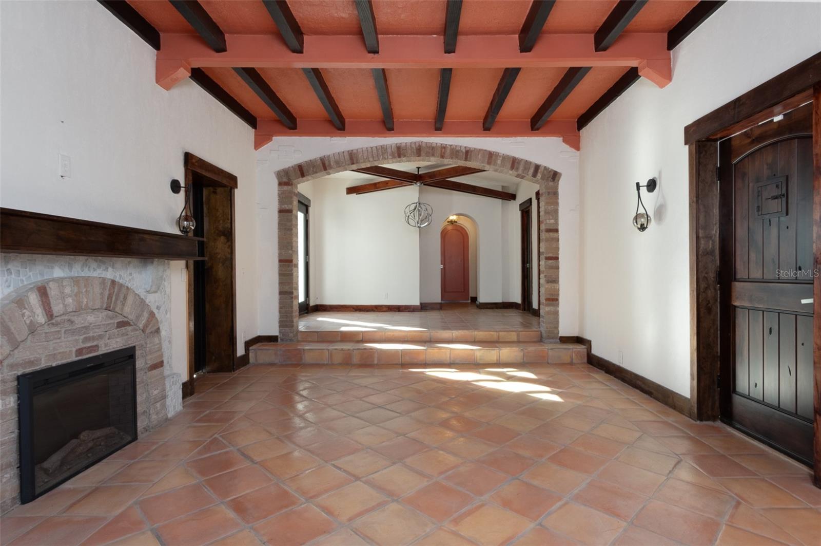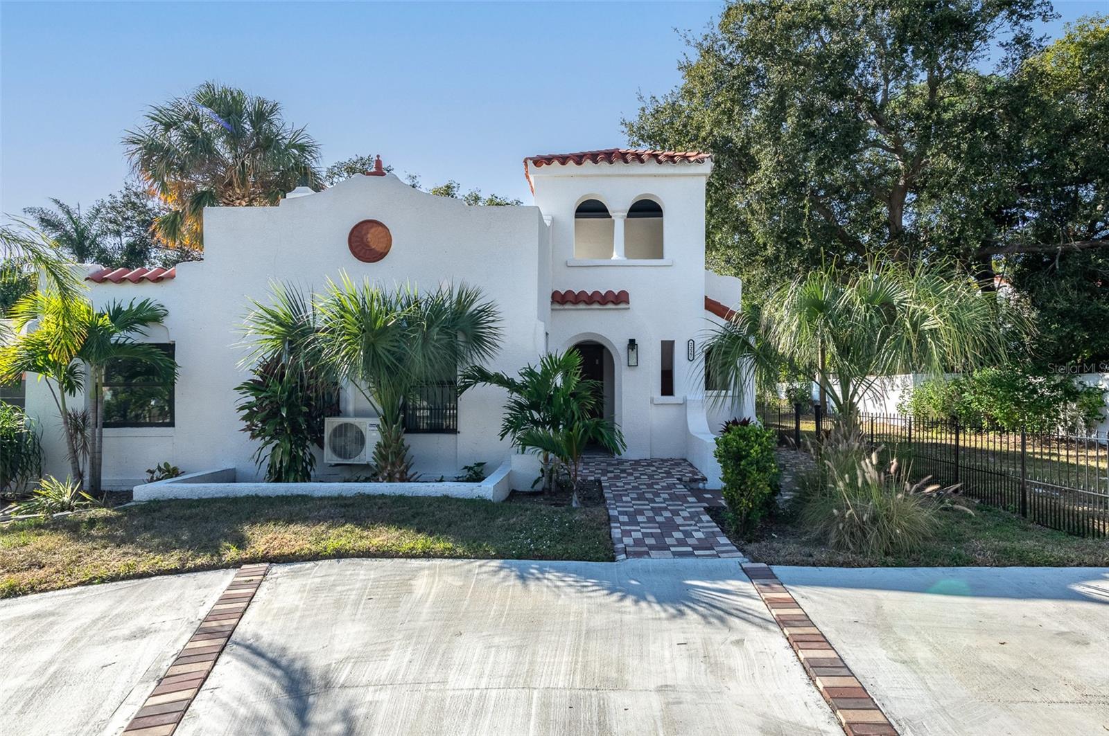 One or more photo(s) has been virtually staged. Discover an extraordinary blend of timeless Spanish architecture and refined modern living in this elegant St. Petersburg estate. A statement of sophistication, the home showcases its heritage with terracotta hued roof tiles, smooth stucco, wrought-iron detailing, and lush tropical landscaping that evoke the feel of a serene European retreat. Inside, warm tones and thoughtful details create an inviting ambiance. Hand-laid Spanish tiles guide you through the open-concept layout, while exposed wood beams showcase timeless craftsmanship. Large windows providing generous natural light set the stage for effortless luxury, enhancing the character and beauty in each room. Every detail has been curated to elevate the home’s character and create a seamless flow throughout. At the heart of the home, the gourmet chef’s kitchen impresses with lustrous granite surfaces, stainless-steel appliances, and custom cabinetry that marries function with artistry—perfect for creating memorable meals and hosting gatherings with ease. The primary suite offers a peaceful private sanctuary complete with a spa-like en-suite bathroom designed for relaxation. Outdoors the residence continues to enchant. A picturesque courtyard provides a sanctuary for al fresco dining or fireside evenings. Choose from the covered porch off the Primary suite, a side patio with arbored coverage allowing for plenty of sunshine, or the secluded rooftop terrace accessible by ascending the spiral staircase – an exquisite perch for morning coffee, sunset views, or starlit evening. The detached garage adds further convenience and flexibility. Nestled within a charming St. Petersburg neighborhood, this residence is more than a home; it is a Spanish-inspired sanctuary celebrating design, comfort, and timeless elegance. A truly exceptional offering for the discerning buyer who values character, craftsmanship, and an elevated coastal lifestyle. This home comes with a 13 MONTH HOME WARRANTY for buyer's Peace of Mind and to help make transitioning easier!