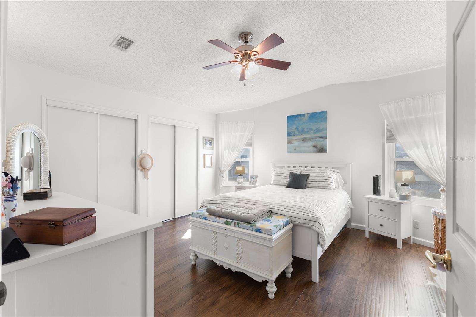 Tired of viewing homes that need to be remodeled? You will appreciate this 1997 two bed/two bath/den or office home that has been well cared for and upgraded. No flooding! With almost 1,400 sq. ft of living space, this property features 2022 HVAC system, 2022 water heater, 2008 TPO roof over shingle, updated double pained windows with 2024 double paned windows on east side of home. Beautiful kitchen with eat-in space, stainless appliances, lots of counter and cabinet space for the cook who appreciates prep space! Beautiful wide-plank laminate flooring throughout with tile in baths. Large living/dining/den area to entertain family and friends. Primary bedroom suite has full wall of closets and bath with walk-in shower. Large guest bedroom with guest bath located across the hall for easy access. Guest bath has tub/shower combo. Utility room with washer and dryer that leads to 250 sq. ft screened lanai with mature landscaping keeping the area cool and private. Irrigation system. Large shed for extra storage. Side-by-side parking with extra space for golf cart. Comes partially furnished. Located close to community waterfront park to enjoy the dolphin and manatee. Price includes share for the lot and ownership in the co-op. Annual termite protection with Home Guard. Owner has three-year paid flood insurance with two years remaining. Americana Cove is the premier 55+ factory-built housing community in the county and is located only 10 mins from popular downtown St. Petersburg, 20 mins to two airports and 5 mins to 4th St shopping, dining and many grocery stores. Two pets (dogs or cats) up to 35 pounds are welcomed! Renting is allowed with 2-month minimum. Low monthly maintenance fee of $380 includes water, sewer, trash pick up, lawn mowing, 24 hr manned gate, private streets and all amenities including 2 boat ramps, kayak launch, clubhouse, heated pool, fitness center, billiards and so much more! This friendly community of 650 homes is waiting for you!