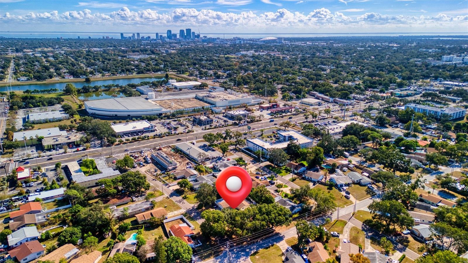 Step into the charm and potential of this light-filled three-bedroom, two-bath home, perfectly situated on a picturesque, non flood zone, shaded corner lot that still feels bright and welcoming throughout. Upon entry, you’re greeted by a spacious living room, ideal for gatherings or a quiet sitting area, while the separate family room at the back of the home features a cozy wood-burning fireplace—creating a warm, inviting place to unwind. The thoughtful split floor plan includes a generous en-suite primary bedroom, while the two additional bedrooms are also generously sized and conveniently located off the family room. An oversized screened-in patio, accessible from both the family room and dining room, features a newer jacuzzi tub and offers the perfect setting for relaxing or entertaining. Peace of mind comes with meaningful updates, including a four-year-old roof, three-year-old AC, updated electrical panel, and newer kitchen appliances. Located in high-and-dry Flood Zone X and centrally positioned near sandy Gulf beaches, downtown St. Pete, shopping, dining, and I-275, this home offers comfort, convenience, and promising potential. While it would benefit from some TLC and updating, the wonderful layout and location make it an exceptional opportunity for its next owner. Schedule your showing today and see the potential for yourself.