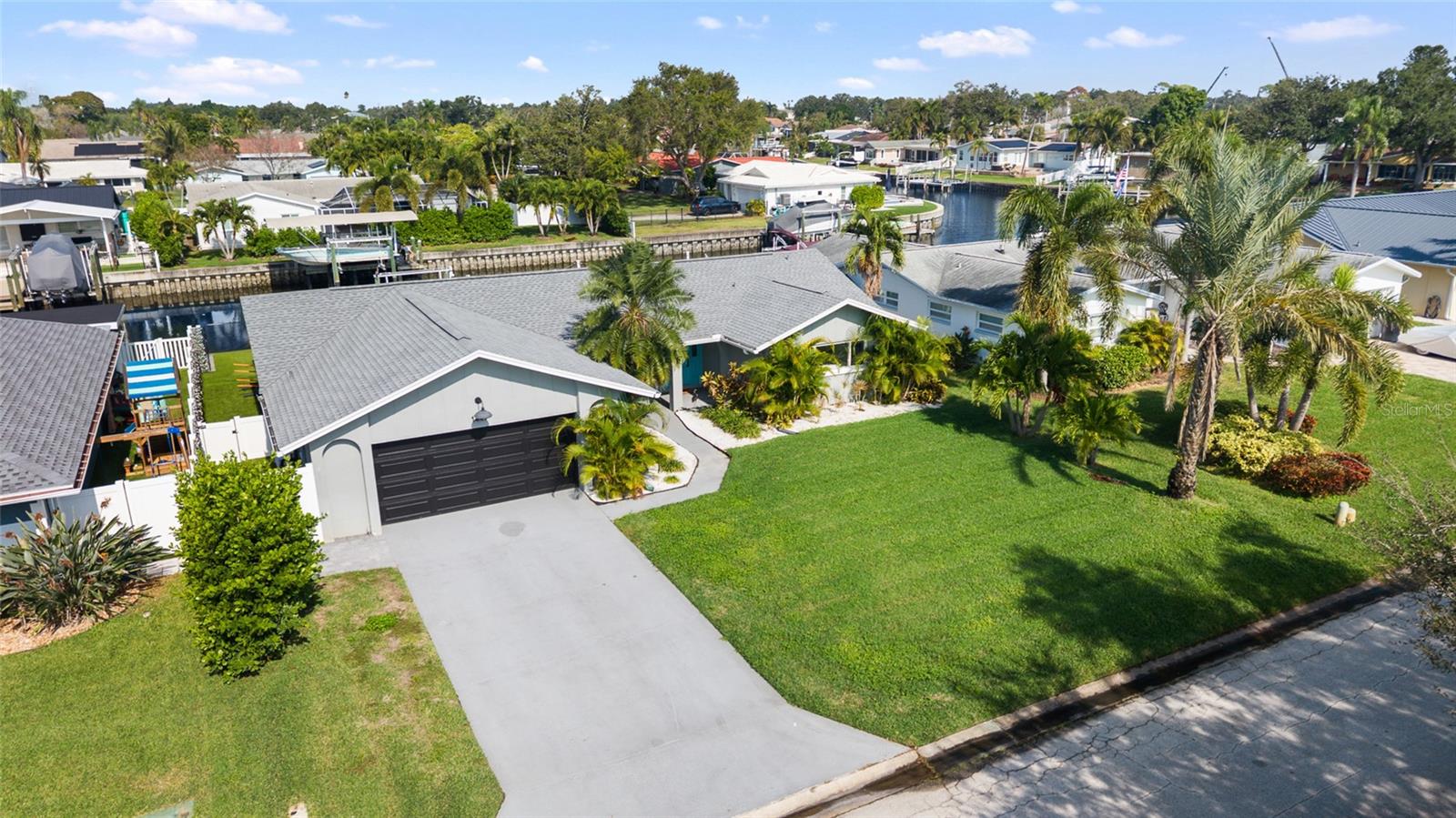 Beautifully renovated 3BD/2BA waterfront home offering 2,043 sq ft of thoughtfully designed living space. This classic-meets-contemporary residence has been fully updated from top to bottom, blending clean modern style with the comfort and ease of Florida waterfront living. Inside, an open and sunlit floor plan features custom wood accent walls, upgraded solid-core doors, built-in closet systems, and designer lighting throughout. The kitchen is outfitted with custom cabinetry, quartz countertops, and new GE Café appliances, while both bathrooms include Moen fixtures, custom glass enclosures, and quality finishes. Major improvements—roof (2022), HVAC (2022), and new tankless water heater—ensure peace of mind. The backyard feels like a private retreat, complete with a hot tub/swim spa, zero-scaped landscaping, premium turf, and pavered outdoor living areas. A new vinyl privacy fence surrounds the space, while the reinforced seawall (estimated 10–15 years old with concrete pilings) and private dock with upgraded boat-lift cables provide long-term stability and convenience. The lift can accommodate boats up to 10,000 lbs or approximately 25–27 feet. For added protection, the entire yard has been elevated by roughly 18 inches and supported by a solid block and concrete retaining wall—creating an effective secondary seawall and enhancing flood resilience. Ideally located, this home is just 10 minutes from Downtown St. Pete, 30 minutes to Tampa International Airport, and 25 minutes to the area’s renowned Gulf beaches. Stylish, move-in ready, and perfectly positioned—this waterfront home offers the best of St. Petersburg living.
