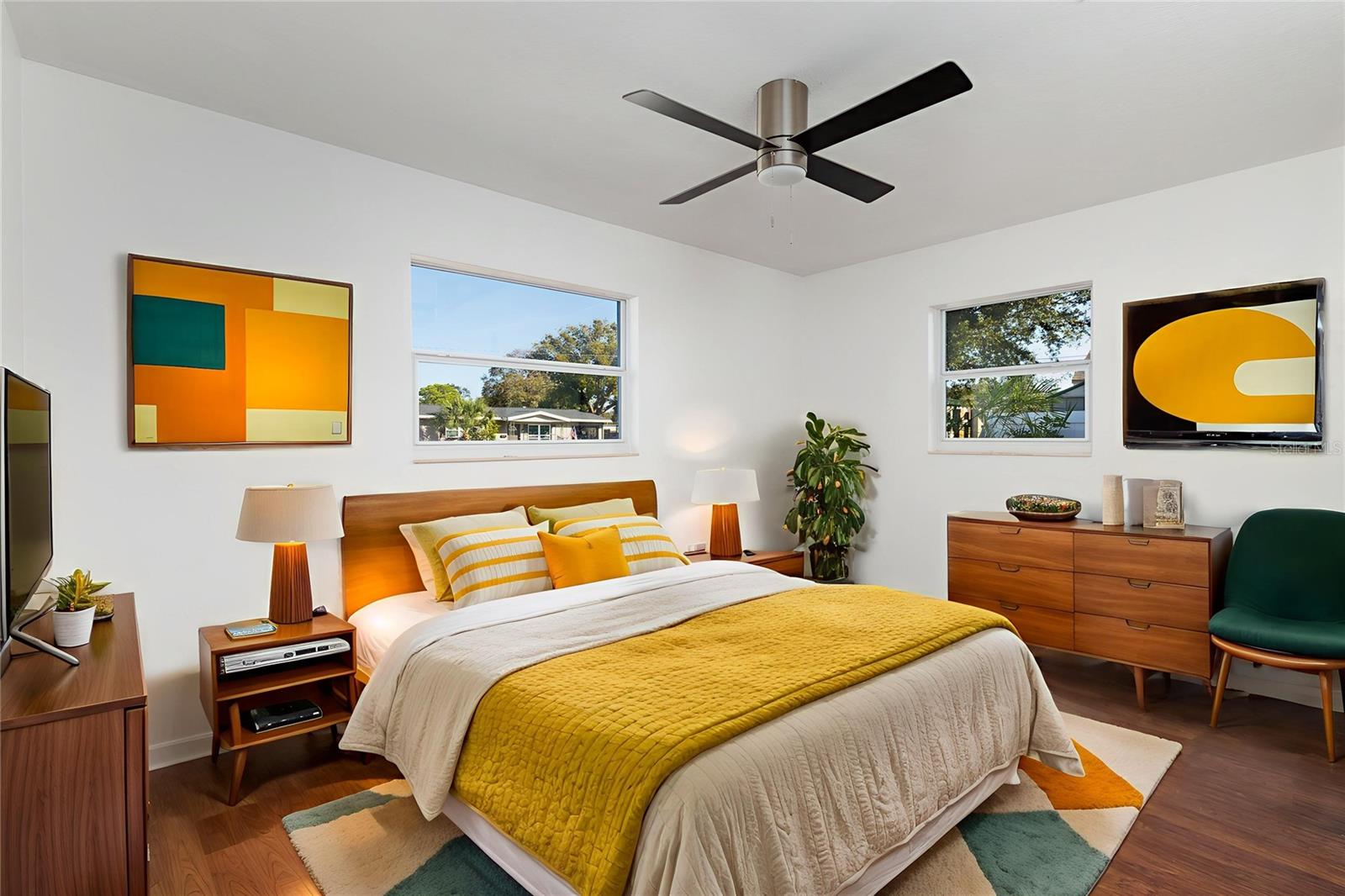 One or more photo(s) has been virtually staged. This north-facing block home is a 3-bed, 2-bath, split plan with a separate dining room/den. Freshly painted interior. Home was completely renovated in 2015 by prior owner. The garage and second bath were converted into the Primary Suite in 2021 and the tankless water heater was installed at that time. Enjoy the coziness of the interior as you gather in the heart of the home or you can tell stories out back around the campfire on cool nights. Updated insulation and windows make the home run efficiently all year long. Very large fenced yard with alley access. Lot could hold additional development, for possible ADU or pool. Fenced with gates on the east and west sides of the house. Paved side yard makes your regular maintenance easy to manage. Easy to maintain. Low annual costs to homeowners. Chatham Park is part of the Fossil Park community. Location is walking distance to Fossil Park, North Community Library and Willis S Johns Rec Center in addition to nearby shopping, local shops and restaurants. The park features a playground, walking trails, pool and organized sports. This is an excellent opportunity to purchase a home in St Pete that is central to the Tampa Bay region.