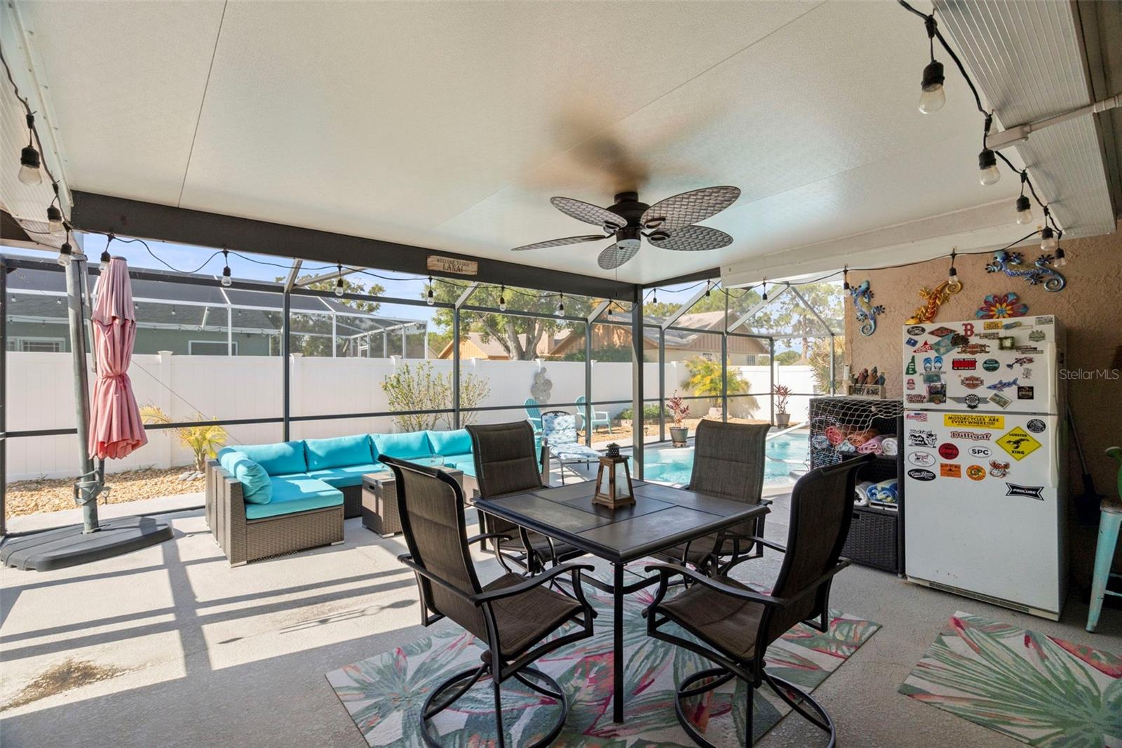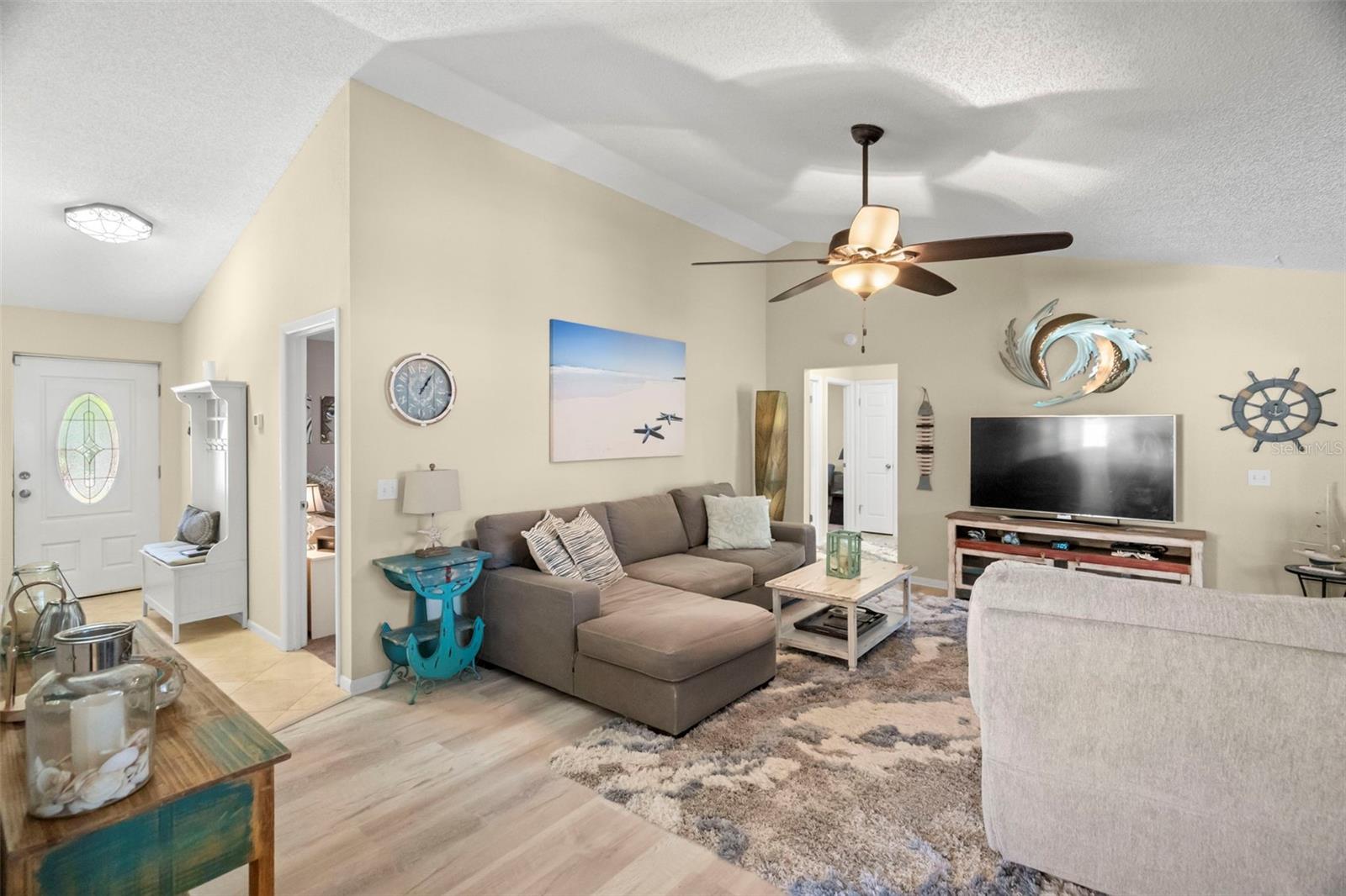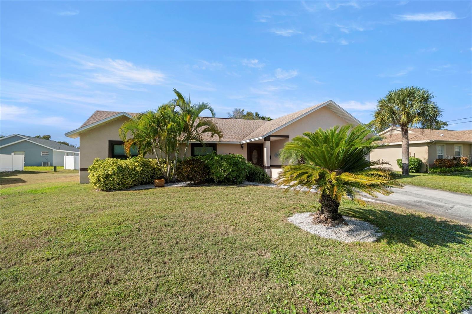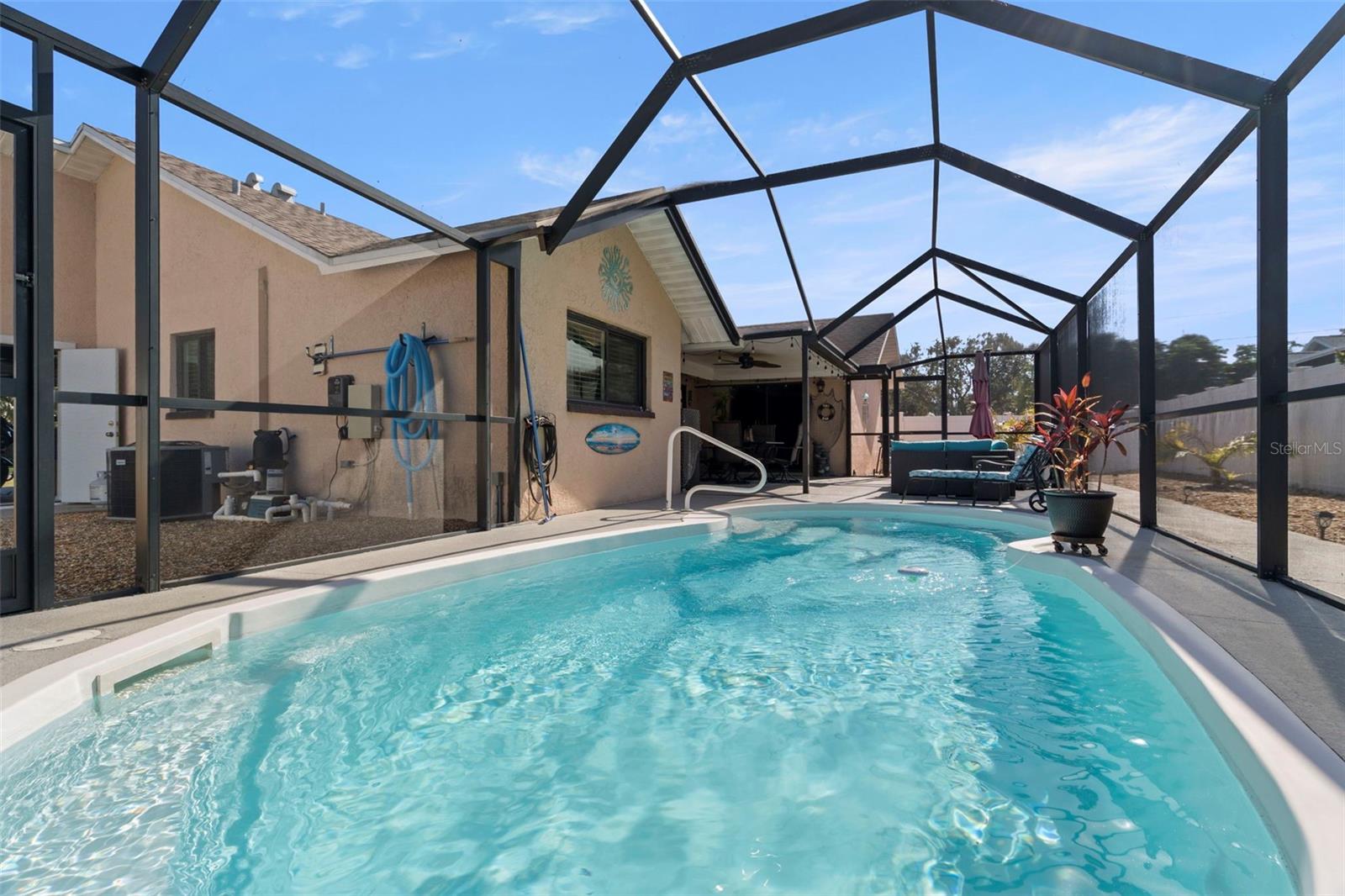 Welcome to your private Florida pool home oasis. This beautifully updated 3-bedroom, 2-bath solid block residence offers the perfect balance of modern upgrades and effortless indoor-outdoor living. Ideally located just minutes from St. Petersburg Country Club and situated in a no-evacuation zone, peace of mind comes built in—NO FLOOD INSURANCE REQUIRED. Step inside and be amazed by new luxury vinyl plank flooring flowing throughout the main living areas, creating a fresh, cohesive feel that pairs beautifully with the vaulted ceilings. The updated kitchen shines with light quartz countertops, stainless steel appliances, soft-close cabinetry with under cabinet lighting, and a clean, neutral backsplash—perfect for the home chef. Enjoy casual meals at the breakfast counter or gather around the dining table within the kitchen. Durable travertine flooring complements the 2025 kitchen upgrades, offering both elegance and longevity. The primary ensuite bathroom was tastefully renovated in 2025 and features a stunning walk-in shower for a spa-like retreat. All three bedrooms are generously sized and can comfortably accommodate king-sized furniture. Two of the bedrooms have large walk-in closets, bonus! The spacious living room and primary suite both feature sliding glass doors that open directly to the sparkling saltwater pool and redesigned outdoor entertaining area, making this home ideal for hosting or unwinding poolside. Light the gently used gas fire pit and relax on the outdoor sectional after an evening with friends or neighbors (furniture set negotiable). Outside, enjoy a fully caged pool and a newer vinyl-fenced backyard which is low-maintenance xeriscaped - perfect for easy living and more time to enjoy doing what you love. Storage is abundant throughout the home, including a 2-car garage with additional overhead storage perfect for seasonal décor. This meticulously maintained home is truly move-in ready, with furnishings negotiable to make it turn-key. Notable upgrades include double-pane impact windows, two hurricane-rated doors (2024), a new garage door (2024), new pool pump motor (2025), HVAC (2023), ductwork (2018), water heater (2019), $30,000 in new landscaping, and a pool cage installed in 2019. Centrally located just 10 minutes from both the beaches and vibrant downtown St. Petersburg, this home offers quick access to I-275 for easy travel to Tampa, Sarasota, and Tampa International Airport. Nearby shopping, dining, grocery stores, and wellness services add everyday convenience. If boating, beaches, golf, parks, palm trees, and sunshine are what you’re looking for, this home delivers it all. A rare opportunity to enjoy comfort, style, and the very best of Florida living in a highly desirable location.