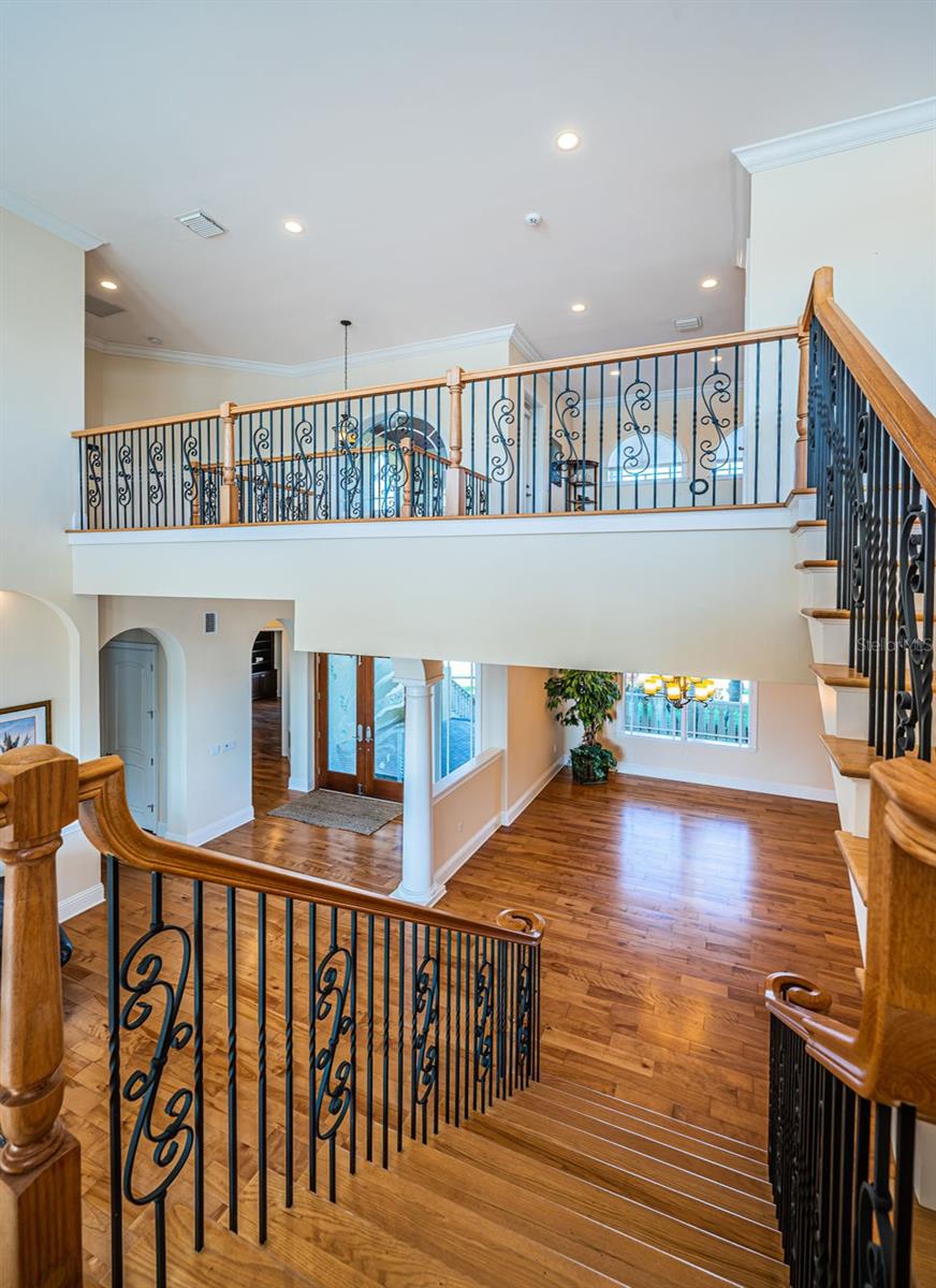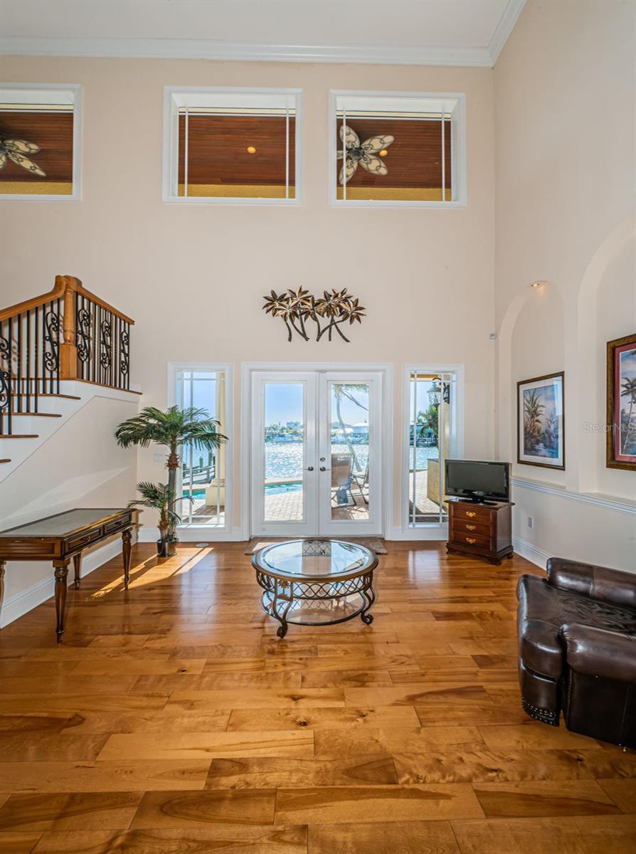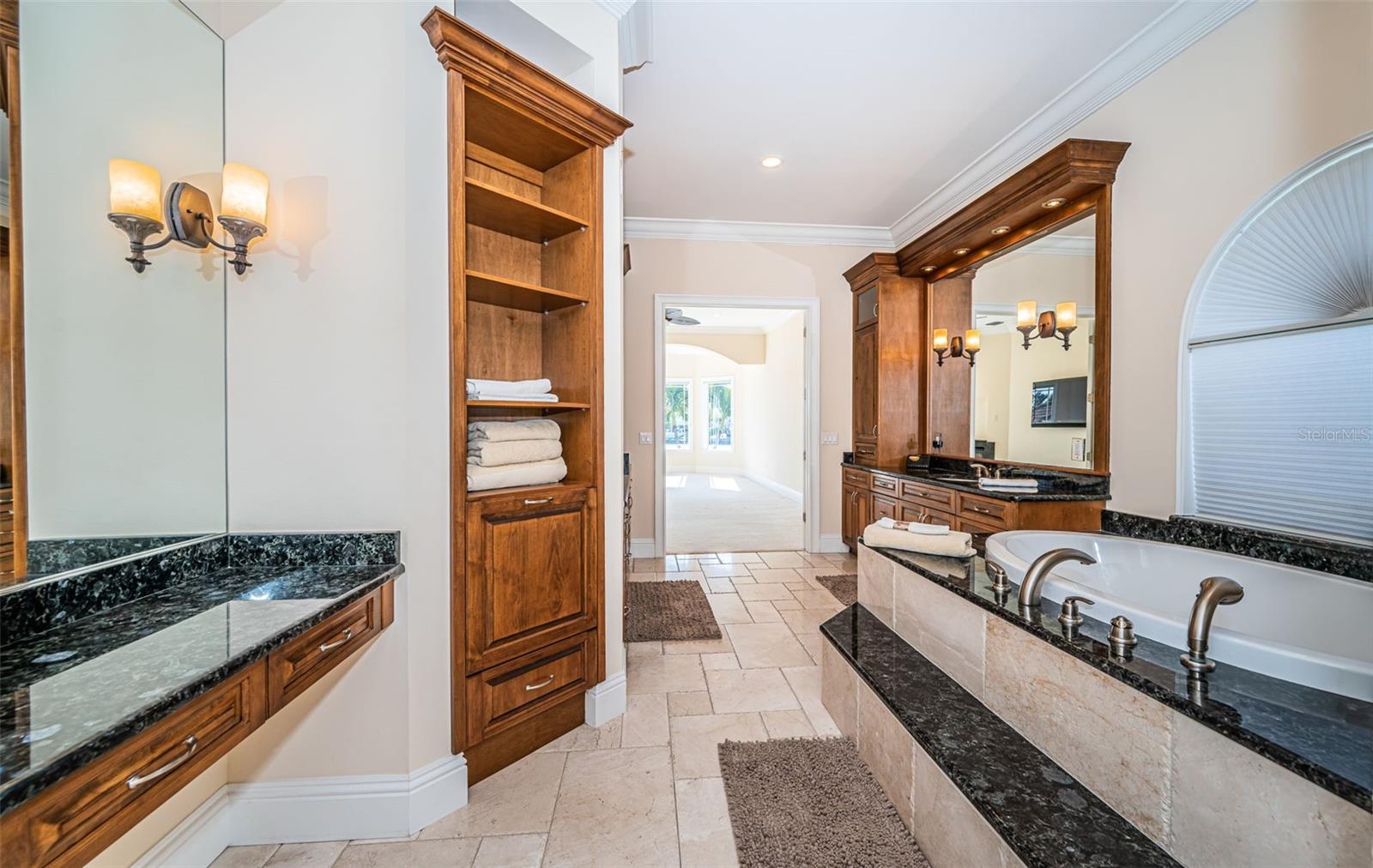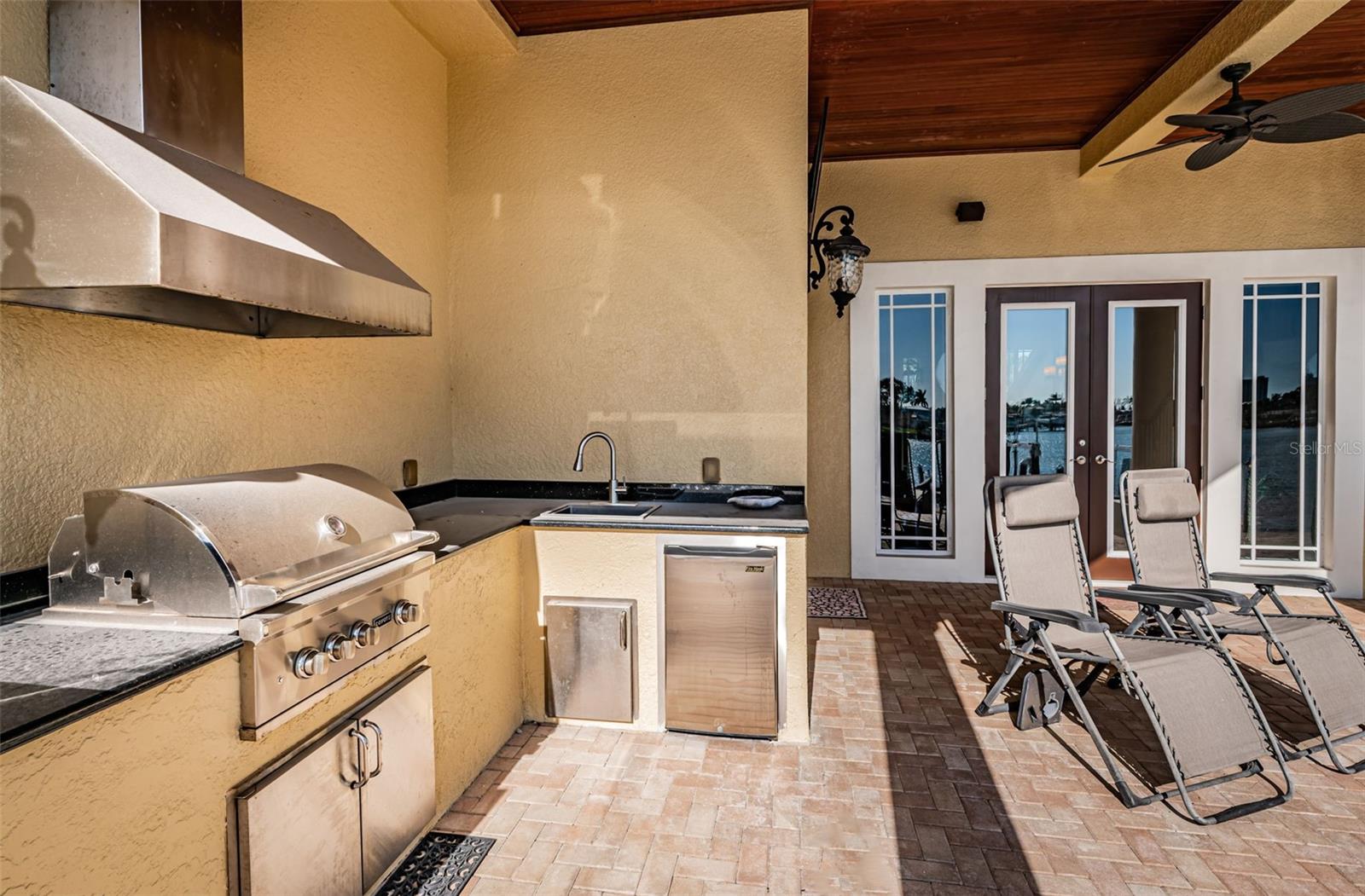 A GRAND, ELEVATED AND IMPRESSIVELY-BUILT LUXURY ESTATE WITH EASY BOATING ACCESS TO THE INTRACOASTAL WATERWAY AND THE GULF! Beautifully landscaped with stately cast stone exterior finishes and fine wood ceilings, welcome to an extraordinary executive residence introduced by a splendid, covered entry, soaring 22ft -high foyer, tall 11ft-high ceilings, and a towering sitting area overlooking the waterfront. This inspiring home offers 5 bedrooms, 5 baths and a sprawling 7969 sqft under roof. Fabulous water views, exceptional crown trim work, radiant lighting and many custom designer elements deliver a posh, sophisticated and inviting appeal. The incredible gourmet chef’s kitchen is truly a joy - with coffered ceilings, custom designer wood cabinetry, dazzling granite counters, stone tile backsplash areas, Wolf/SubZero/Miele appliances with dual Fisher & amp, Paykel dishwashers, gas cooking, an island prep center, large multi-level breakfast bar, dedicated workstation, and a sizable walk-in pantry. A massive waterfront living room opens to the pool deck and boasts lovely tray ceilings, a gas log fireplace and extensive surround sound capabilities – all supported by a custom luxury wet bar (matching the kitchen) with beverage chiller and two adjacent wine chillers. The resplendent owner’s suite features a dedicated sitting area overlooking the waterfront and a gas fireplace. Ready yourself to be pampered by the magnificent owner’s bath - with exquisite cabinetry, gorgeous granite surfaces, richly-honed travertine tilework/flooring, separate his/her vanities, a sumptuous built-in microjet spa tub, cosmetic center, a spectacular walk-in rain shower/steam room with body sprays, and a huge walk-in closet system with dressers. Sizable private office with fine built-ins is suitable as a bedroom/den. Upstairs, discover a large open work area that transitions to a private, covered 200sqft deck. The substantial upper-level family area opens to a 40ft-long balcony and is ideal for gaming/entertainment; this space includes a large custom luxury wet bar supporting the entire floor. Wanna get away? Step into the terrific media room with ample theater seating for six. All upper-level bedrooms are generously-sized and are supported by three luxurious full baths. 2nd bedroom suite opens to the balcony and includes a cosmetics center. Beyond the living room you’ll find a wonderful, covered waterfront deck with built-in outdoor kitchen and brand-new gas cooking center. The paver deck transitions to a Pebbletec pool/spa with heater & salt-chlorination system. Updated seawall, composite dock, 15,000 lb boat lift and extensive shore power. 2024 instant gas HW heater, 2024 whole-house water softener, lavish pool bath, EV charging port, central vac, oversized garage with extensive storage, hurricane impact windows/doors and many, many extras. An exceptional luxury waterfront opportunity in one of Tampa Bay’s finest boating communities. Dimension are estimates, buyer to verify.