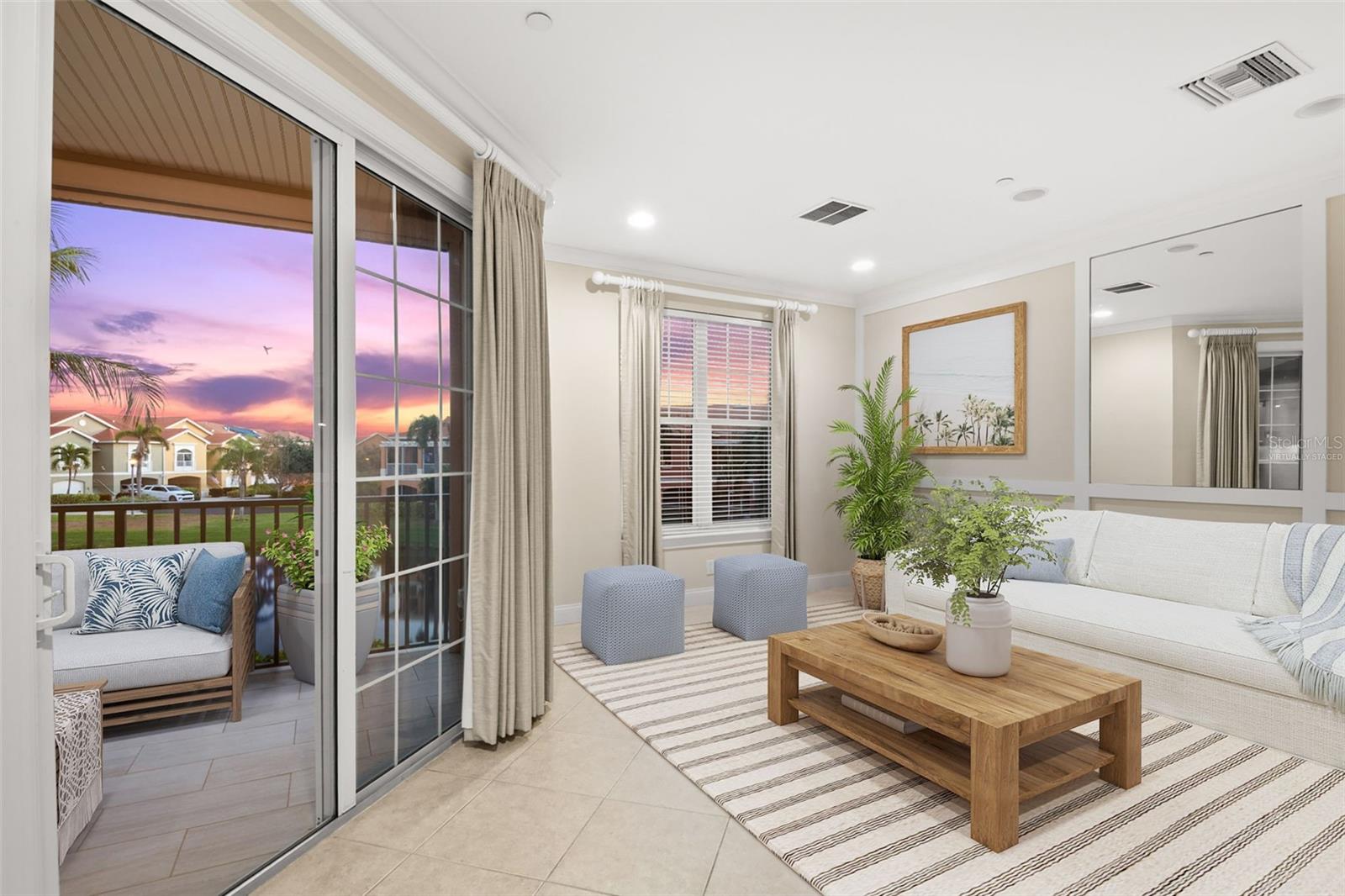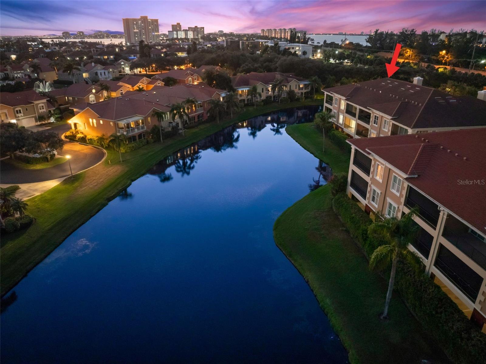 One or more photo(s) has been virtually staged. From the moment you step out of your secure, semi-private elevator that opens directly into your private entry foyer, you can feel the casual elegance. Pristine, light and airy with 9' ceilings, this original builder's Sanibel model feels more like a house than a condo. In the kitchen you will enjoy new Cambria counters and matching backsplash, updated stainless-steel appliances, a large, upgraded wall oven, timeless maple cabinets, a storage pantry with translucent glass door, and beautiful lighting. The living and dining areas are spacious, bright and thoughtfully finished with built-in architectural details. Both the living room and main bedroom open to a large, covered terrace (19' x 10') with automated roll down screening to enjoy beautiful sunsets and calming water views year-round. The main bedroom suite will accommodate even the largest furnishings and features two custom-finished closets, one large walk-in closet and a second reach-in closet. The main bath features dual vanities, a large soaking tub, an oversized walk-in shower with dual heads and a separate water closet. This split floor plan offers privacy to two more bedrooms, each with walk-in closets, and a large laundry room with utility sink, hanging space, a brand-new washer and dryer and an entire wall of upper and lower cabinetry for even more storage. Top of the line construction including solid concrete structure and impact hurricane windows providing total peace of mind. Distributed audio throughout the home with speakers in the main living area and in all three bedrooms. Located in the waterfront, gated community of Marina Bay, amenities include 2 pools (one with geothermal heat for year-round use), 2 spas, fitness center, clubhouse, fishing pier, direct access to the Bike Trail, tropical, mature landscaping, spectacular water features and fountains, an abundance of wildlife and pet friendly. Enjoy great fishing from the community fishing pier and three-day docks available to all residents. A 32' private boat slip is available to purchase. Less than 10 minutes to downtown St. Petersburg, the location also provides quick access to our beautiful Gulf Beaches, the Sunshine Skyway Bridge, Ft. De Soto Park and just 25 minutes to Tampa airport.