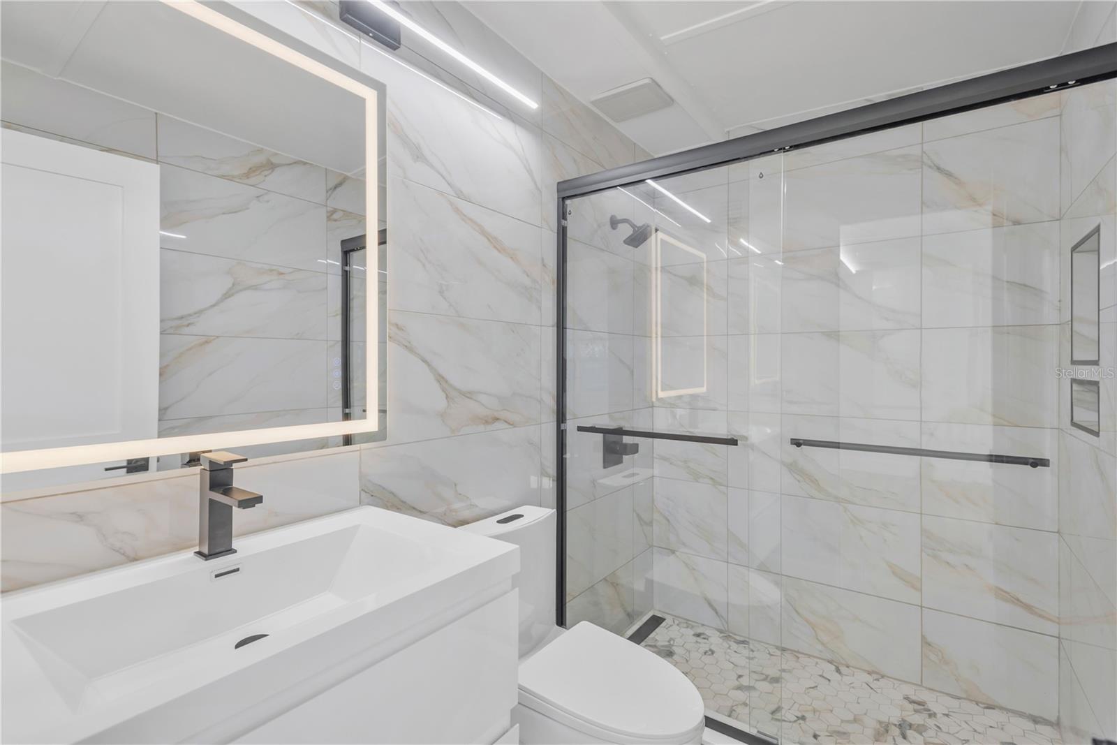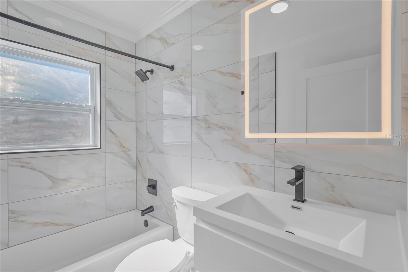 Welcome Home! This fully renovated four-bedroom, three-bathroom block home offers a rare blend of modern design, quality construction, and everyday functionality. With 1,400 square feet under air, a two-car garage, and a 10,219-square-foot corner lot, this property delivers space, upgrades, and flexibility that truly stand out. Every major system has been replaced or upgraded. The home features a brand-new roof, new HVAC system with all-new ductwork, and brand-new impact-rated windows and doors for energy efficiency, comfort, and peace of mind. Inside, luxury vinyl plank flooring runs throughout the home, complemented by fresh interior and exterior paint that creates a clean, modern feel from room to room. The kitchen has been completely rebuilt with new cabinetry, countertops, and appliances, offering a sleek and functional space designed for everyday use and entertaining. Custom touches include tall cabinets, premium hardware, thoughtful storage solutions, and a layout that flows seamlessly into the main living areas. All three full bathrooms are brand new and finished with modern tile, glass enclosures, floating vanities, LED mirrors, and high-end fixtures. Beyond the finishes, the home is wired and designed with intention. The electrical panel is equipped with all 20-amp breakers, offering strong and reliable power throughout. A tankless water heater, new plumbing, washer and dryer hookups, and termite bait stations further enhance long-term value. Smart-home features include lighting controls, security cameras, termostat, and exterior outlets. Outside, the property continues to impress. The large corner lot is fully fenced with new vinyl fencing and an eight-foot gate, providing convenient access and flexibility. A restored, full-size concrete birdbath adds character to the front yard, while the backyard features a working fireplace, exterior outlets, and space ready for customization. Grass seed has already been laid, with new growth underway. Located at 4300 28th Ave N in St. Petersburg, this home sits in the heart of Disston Heights, a well-established neighborhood known for its central location and easy access to I-275, downtown St. Petersburg, Tampa, and nearby beaches. Shopping, dining, parks, and daily conveniences are all just minutes away, making this location both practical and highly desirable. This is a thoughtfully rebuilt home designed to deliver modern comfort, efficiency, and lasting appeal. Schedule your private showing today!