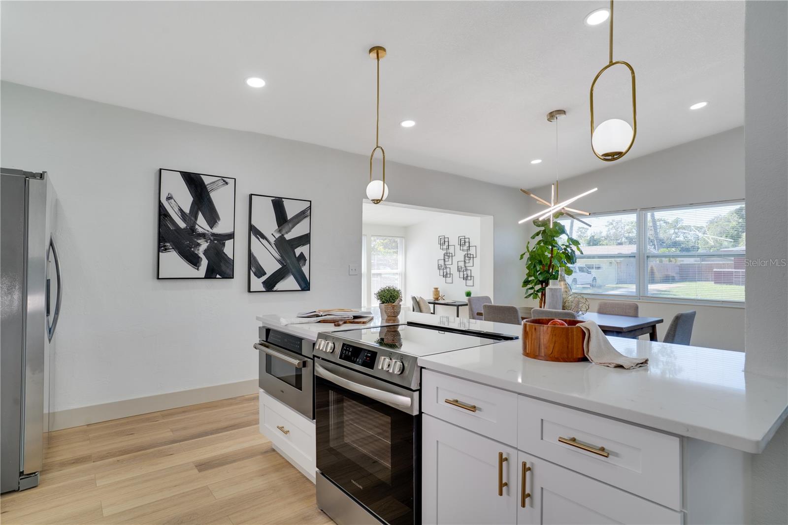 This beautifully maintained 3-bedroom, 2-bath single-family home with a 2-car carport offers a bright, open layout designed for comfortable Florida living in the heart of St. Petersburg. The spacious open-concept kitchen, living, and dining areas feature LVP flooring throughout the main spaces and a stunning kitchen complete with stone countertops, stainless steel appliances, a stylish tile backsplash, recessed lighting, a large cooking island with bar seating, and ample cabinet and counter space, plus a separate bar area with a wine fridge, perfect for entertaining! Modern bathrooms complement the home’s clean, polished feel, while a large, light-filled bonus room overlooks the expansive fenced backyard, creating a seamless indoor-outdoor connection. Fresh interior and exterior paint enhance the home’s crisp appeal, and its non-flood zone location adds peace of mind. Just minutes to the water and conveniently close to Lake Vista Rec Center, multiple parks, beaches, shopping, dining, entertainment, and vibrant downtown St. Pete, this home checks all the boxes, schedule your private showing today and see it for yourself.