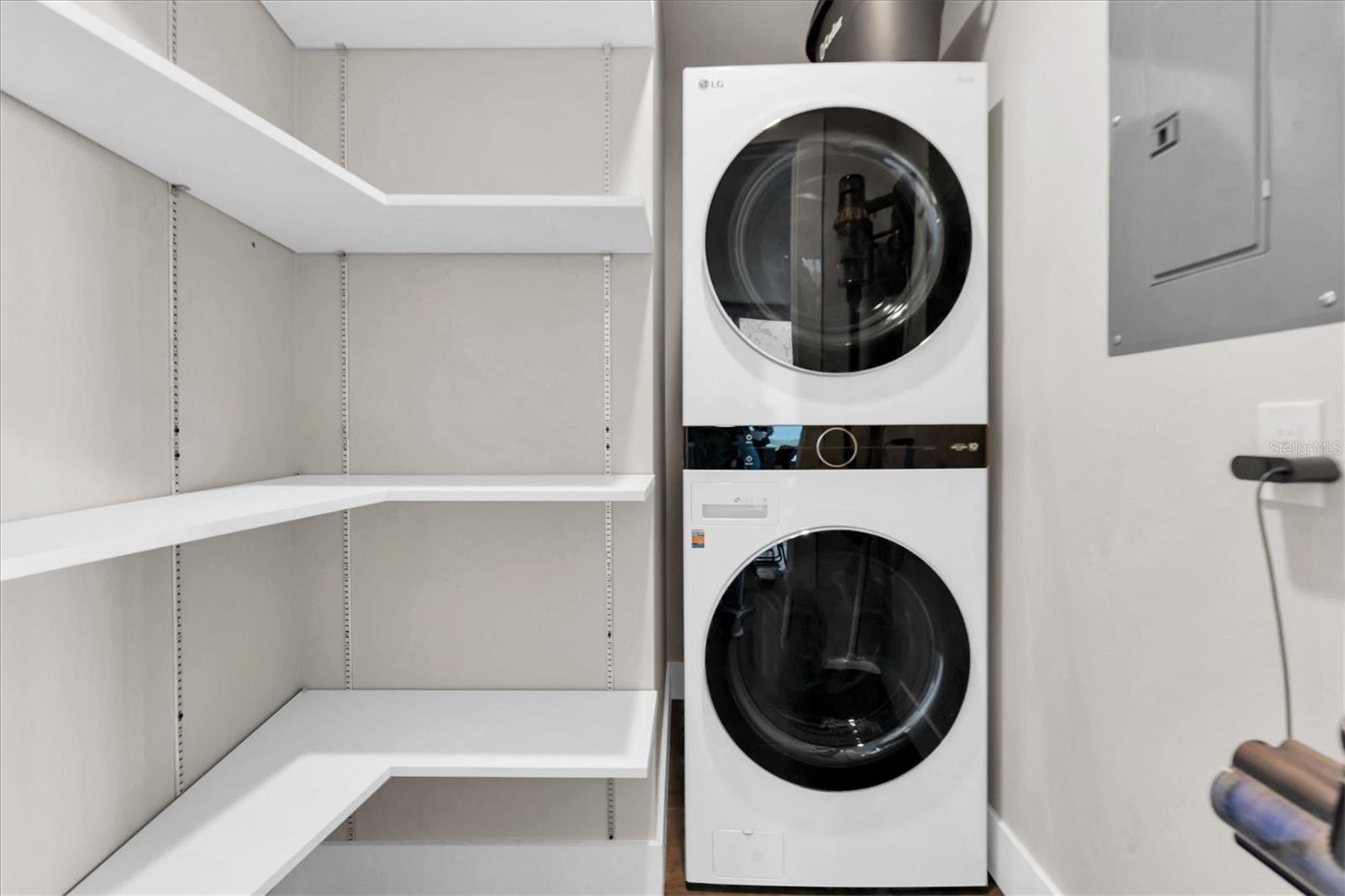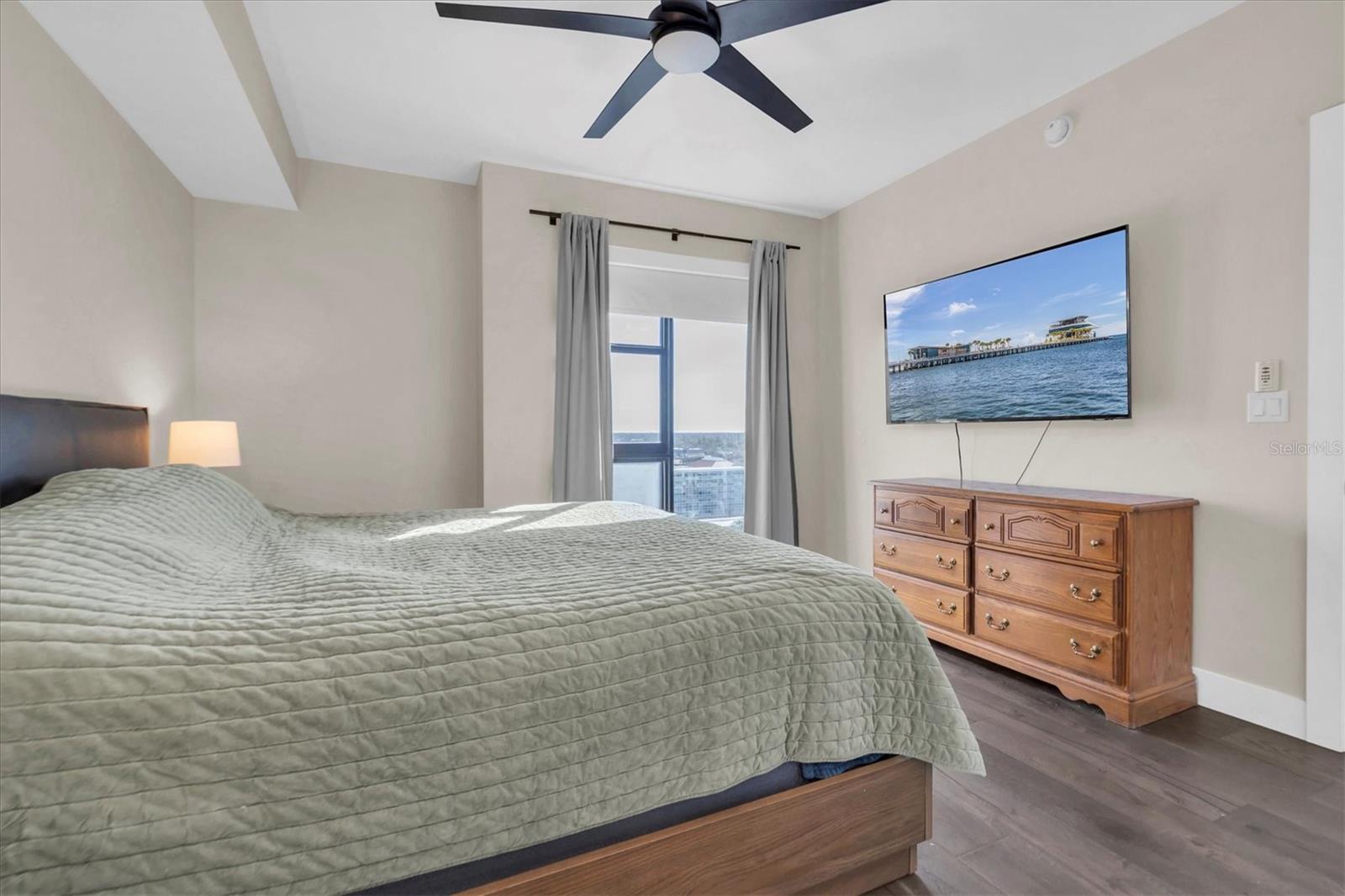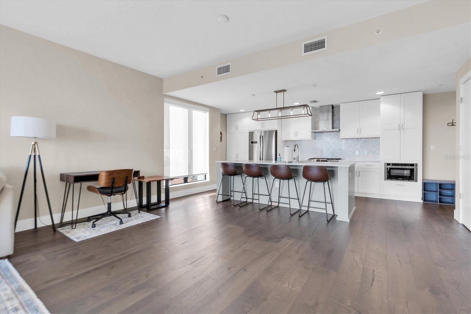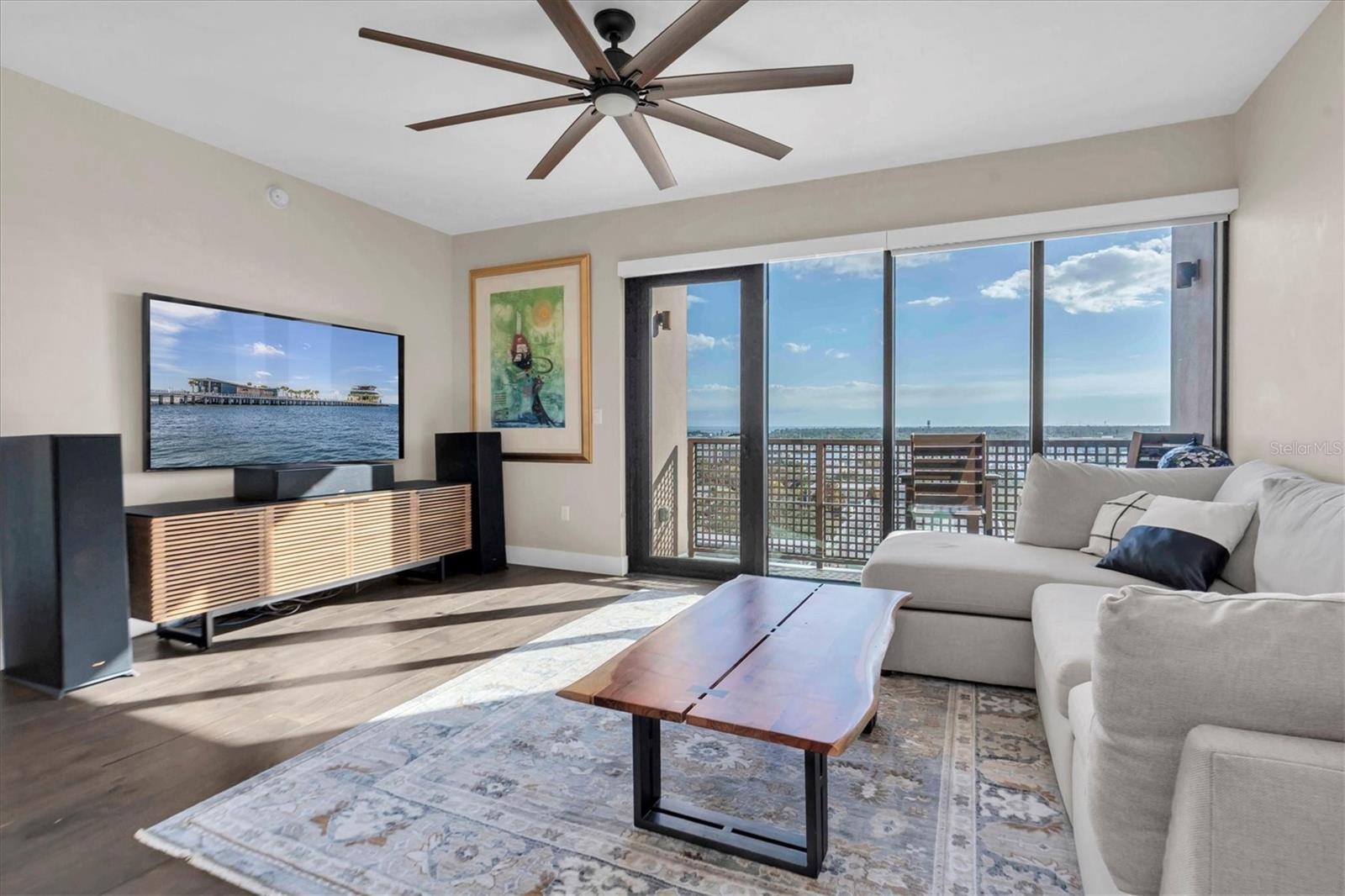 SPECTACULAR WATER VIEWS in this light-filled and spacious 1-BR 12th floor corner unit in the Salvador Building, optimally located to enjoy downtown living in style. Upscale and in pristine condition, the unit features engineered hardwood floors, an open concept layout and well-designed kitchen space with quartz counters, a large center island, ample cupboards, and stainless steel Bosch appliances including a gas cooktop and a wine fridge. Huge windows and balcony flood the living area with light and provide expansive sunrise and sunset views. Large bedroom includes a generous walk-in closet, attached bathroom with tub/shower, and another large window facing south with water views. There is a half bath off the entrance hall, and in-unit laundry room. Also includes a secure assigned parking spot with electric vehicle charger, and climate-controlled storage. The Salvador is a LEED certified, professionally planned, and artfully designed building, solidly constructed to withstand a category 4 hurricane. Numerous amenities including a concierge staffed lobby, saltwater pool and lounge area, state-of-the-art fitness center, well-appointed community room with opportunities to socialize, dog walk area with washing station. Dali Boulevard is a tree-lined street, a peaceful oasis a few blocks from The Pier, The Dali Museum, galleries, numerous waterfront parks, and dozens of restaurants and shops as well as a Publix, CVS, Starbucks, hospitals, and the USFSP campus. WalkScore is 97, BikeScore 91. Comfort, style and convenience in Downtown St. Pete, in your slice of paradise.
