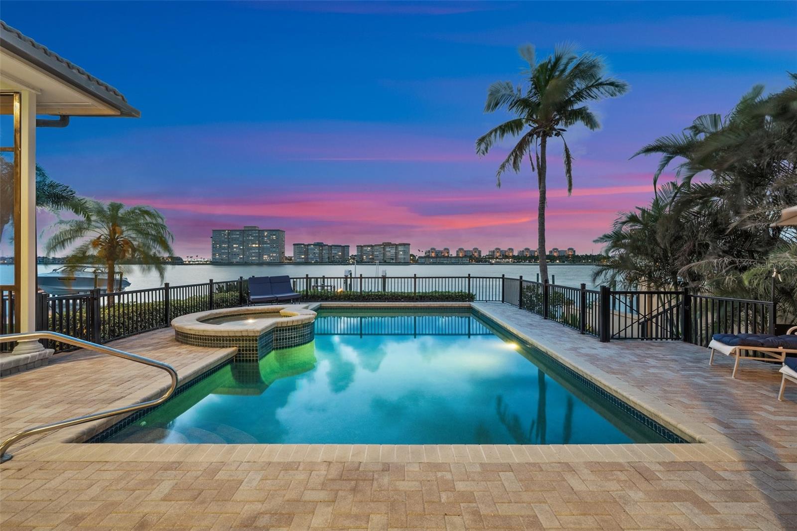 YOUR WATERFRONT DREAM residence awaits in the exclusive BAYWAY ISLES II community! This exceptional Mediterranean, Florida coastal-style waterfront estate is perfectly positioned on the tranquil waters of Boca Ciega Bay, offering just minutes of navigating to the Gulf of Mexico. The show-stopping 5-bedroom, 5-bathroom home provides expansive thoughtfully designed living spaces, seamlessly blending timeless elegance with modern comfort. Step inside and be greeted by soaring ceilings, grand arched windows, and sun-drenched open-concept floor plan, with each room thoughtfully designed to capture fabulous water views!!! The spacious family room overlooks the pool deck and the waterfront amenities, creating a true sense of serenity and seamless indoor-outdoor living! Located on the main level, the luxurious primary suite opens to a versatile flex room - perfect for unwinding while enjoying breathtaking sunset views. Outdoor living is elevated with a resort-style swimming pool and raised spa, a private dock featuring a 50-60 FT wet slip, and a 12,000-LB boat lift, making this home a boater's dream! Located within a guard-gated community, this exceptional residence is just minutes from Florida's world-famous beaches, premier golf courses, and the vibrant downtown St. Petersburg dining and arts scene, with Tampa International Airport only a 25-minute drive away. Whether hosting sunset soirées or enjoying peaceful morning coffee by the water, this is where unforgettable memories are made! Experience waterfront luxury at its finest - schedule your private tour today.