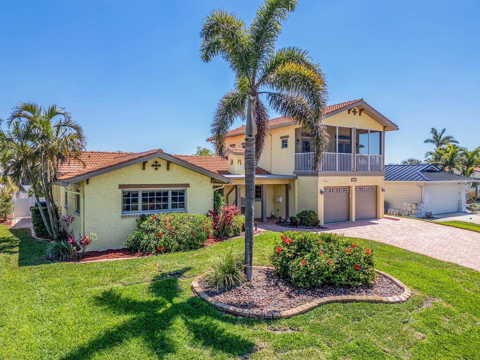 Welcome to this beautiful Mediterranean-style, two-story home offering 2,761 sq ft of well-maintained living space, featuring a split-plan 4 bedrooms and 3.5 baths in the highly desirable South Causeway Yacht Club Estates. This sought-after community is known for its charm and elevation, and this property benefited from that advantage with no water intrusion during last year’s hurricanes. Both the exterior and interior are impeccably maintained, with mature landscaping that perfectly complements the home’s architecture. Step through the glass-panel cathedral-style front door and you’re greeted by stunning bamboo hardwood flooring and a tasteful, inviting color palette. The open floor plan is ideal for entertaining, leading you from a short hallway into a spacious living room with travertine marble flooring and three wood-and-glass French doors opening to the pool area. The gourmet chef’s kitchen is a standout, equipped with stainless steel appliances—including a KitchenAid gas range—granite countertops, a beautifully coordinated backsplash, custom cabinetry, and a generous center island perfect for gatherings. The pool area is a private oasis, surrounded by lush landscaping and featuring a cascading waterfall from the attached spa, along with a heat pump and cooling system replaced in March 2025 (with a 5-year parts warranty). The home offers two options for a primary suite: one on the main level with a new bathroom and walk-in closet, and another upstairs with an elegant bath featuring double vanities, a stone-and-glass shower, two walk-in closets, and French doors leading to a private screened porch. Two additional guest bedrooms are thoughtfully split from the primary spaces, with one offering direct access to the pool. The laundry room includes a cabinet sink, and the oversized two-car garage provides ample storage. Notable upgrades include a new refrigerator (2025), hydro-jetted main water lines (2024), tankless water heater (2022), HVAC system (2017, under warranty through 2027), roofing repair (2022), and thermostat (2024). All windows and French doors are Anderson hurricane-rated, offering peace of mind. This is truly a must-see home in a wonderful community.