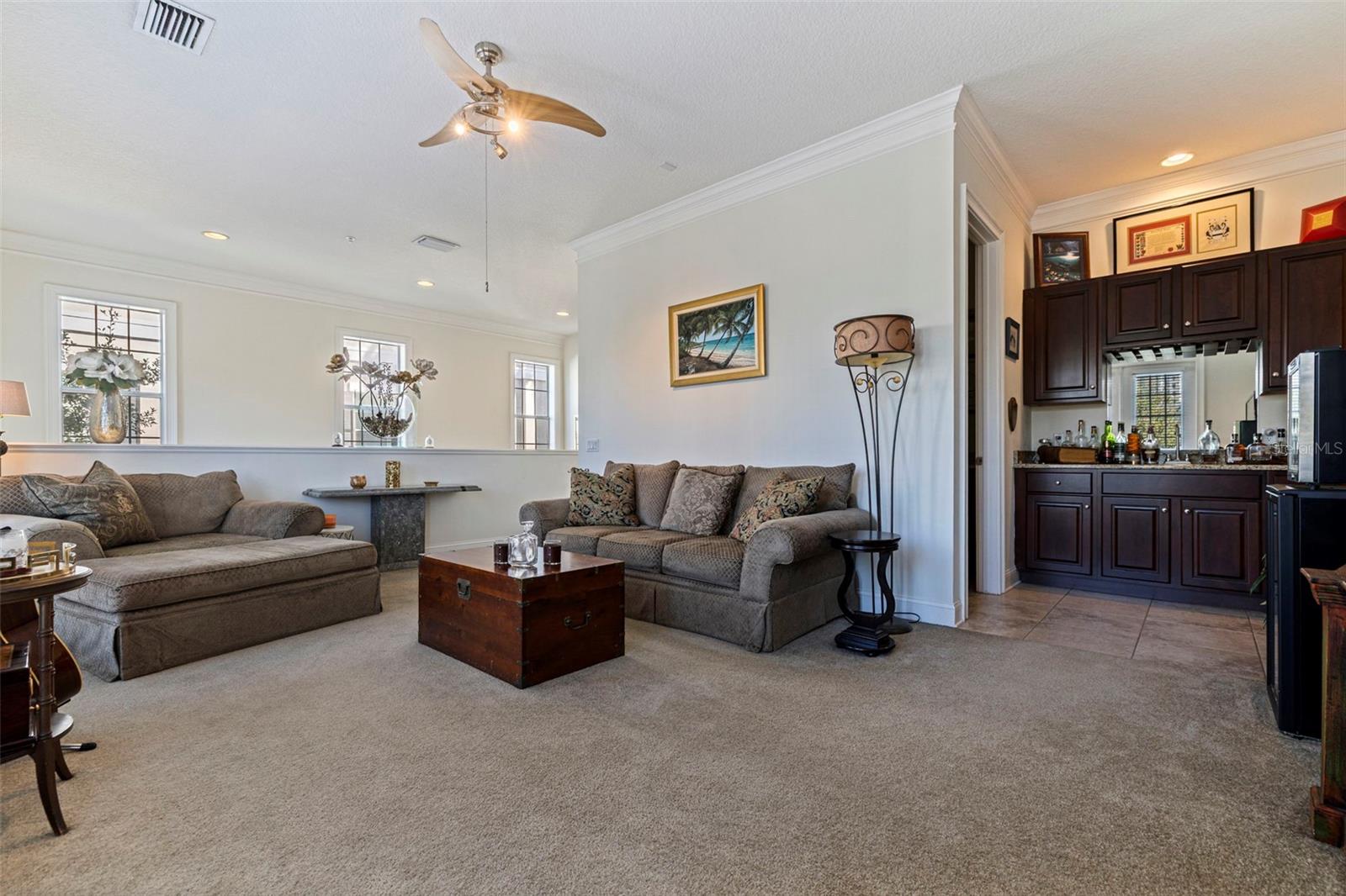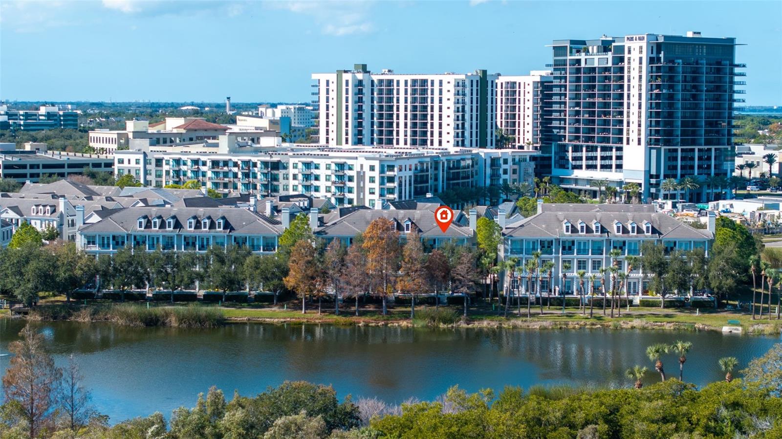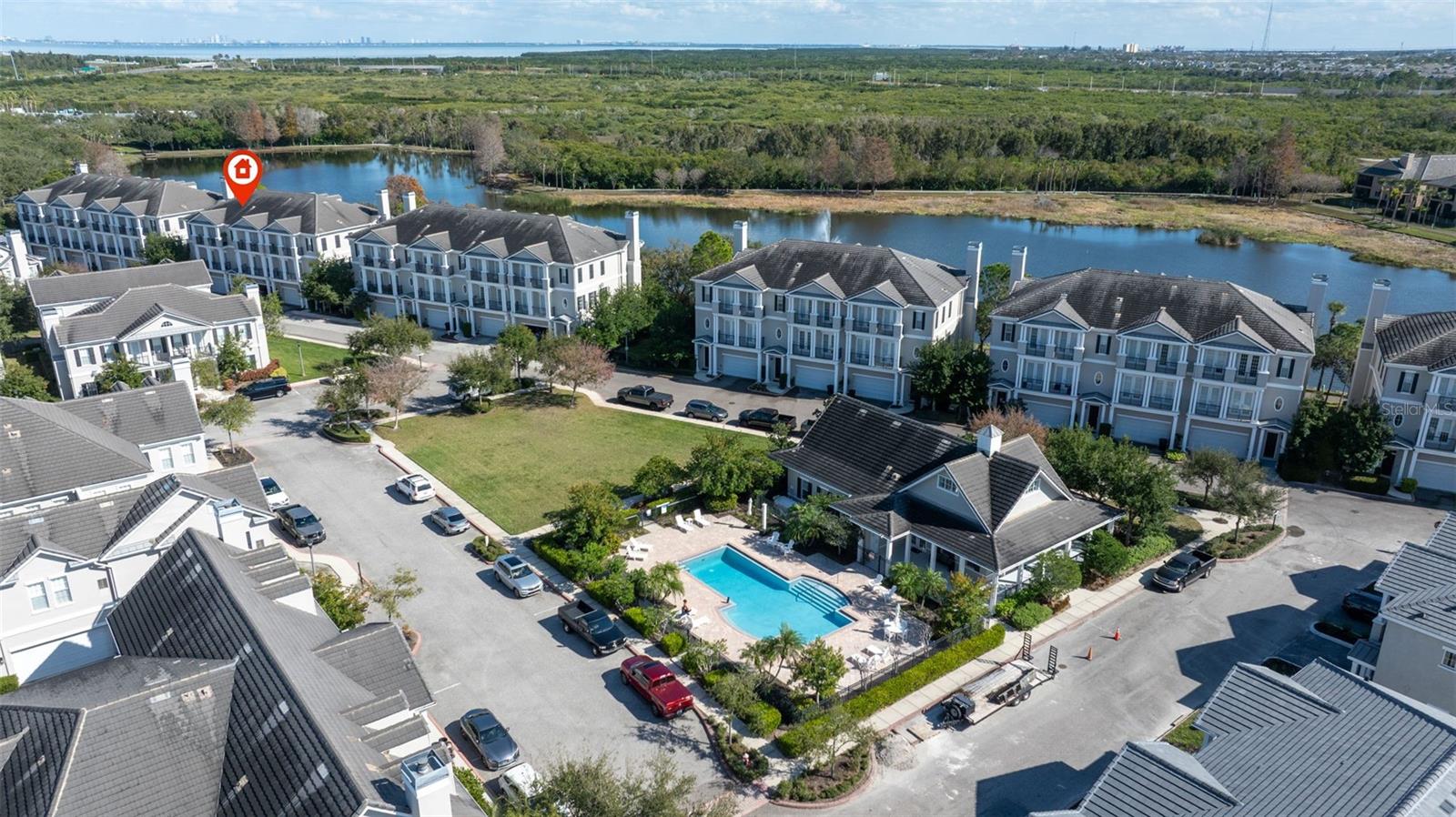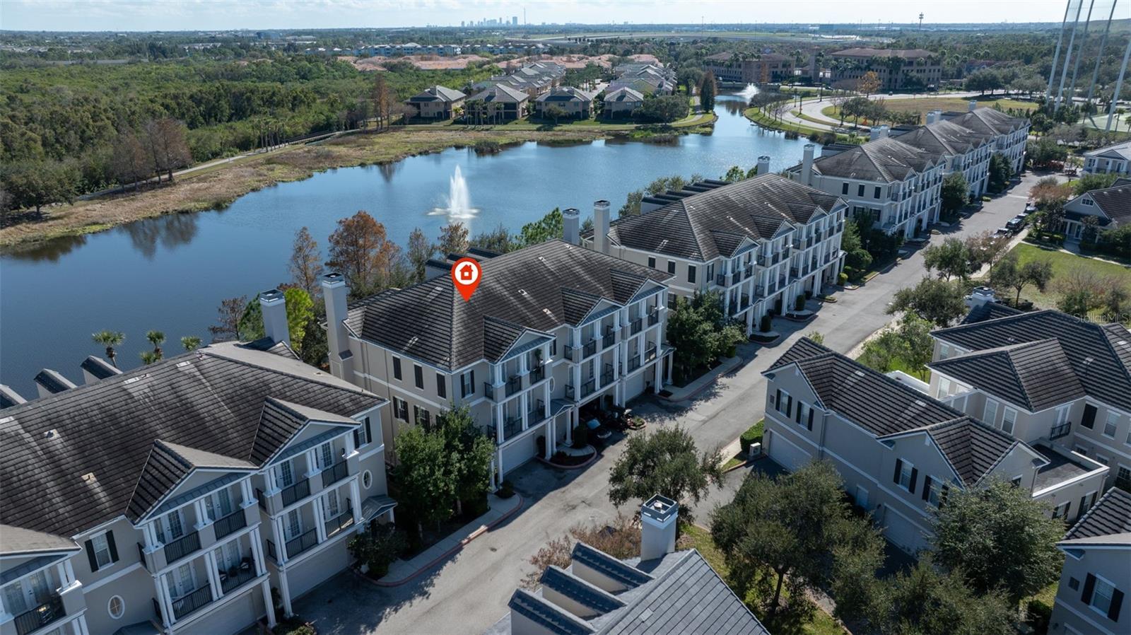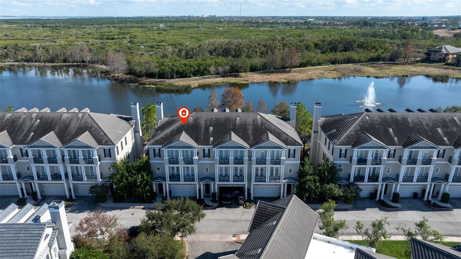 One or more photo(s) has been virtually staged. ACCEPTING BACK OFFERS Luxury Lakefront Townhome in Back Bay. Nestled in the heart of Carillon Point, this luxury lakefront townhome offers an exceptional blend of upscale contemporary living, prime location, and resort-style amenities. Featuring 3 bedrooms, 5 bathrooms, Office and Media room with three levels of refined living space, this stunning residence is perfectly positioned near I-275, Tampa International Airport, St. Pete–Clearwater Airport, downtown St. Petersburg, Tampa, and the Gulf Beaches—making it ideal for those seeking both convenience and sophistication. Step inside to soaring 20-foot ceilings, a bright open-concept floor plan, and elegant finishes throughout. The main living level is designed for entertaining. Showcasing a custom wine cellar, a cozy fireplace, and expansive living and dining areas that flow seamlessly to a large lakefront patio. Enjoy peaceful water views and frequent wildlife sightings—your own private retreat right at home. An elevator with access to all levels adds everyday ease and long-term convenience. The second floor features 10-foot ceilings and a versatile media room with wet bar and bathroom, perfect for movie nights or hosting guests. French doors open to a charming balcony, extending your indoor-outdoor living. An adjacent office or flex space offers the ideal setup for remote work or creative use. The third level is home to a luxurious primary suite with a coffered ceiling, private balcony, and panoramic lake views. The spa-inspired en-suite bathroom includes dual sinks, a soaking tub, a separate walk-in shower, and two walk-in closets. Two additional guest suites, each with balconies and en-suite bathrooms, provide comfort and privacy for visitors. A generously sized laundry room with abundant storage is conveniently located on this level. Residents of this Carillon community enjoy miles of scenic trails, a lakeside boardwalk, manicured grounds, a clubhouse, fitness center, and a resort-style pool. Walk to shopping, dining, Publix, Topgolf, and the new Echelon City Center at Carillon Park. This is a rare opportunity to own a lakefront luxury townhome in one of Tampa Bay’s most desirable locations. Schedule your private showing today and experience the ultimate in upscale Back Bay living.