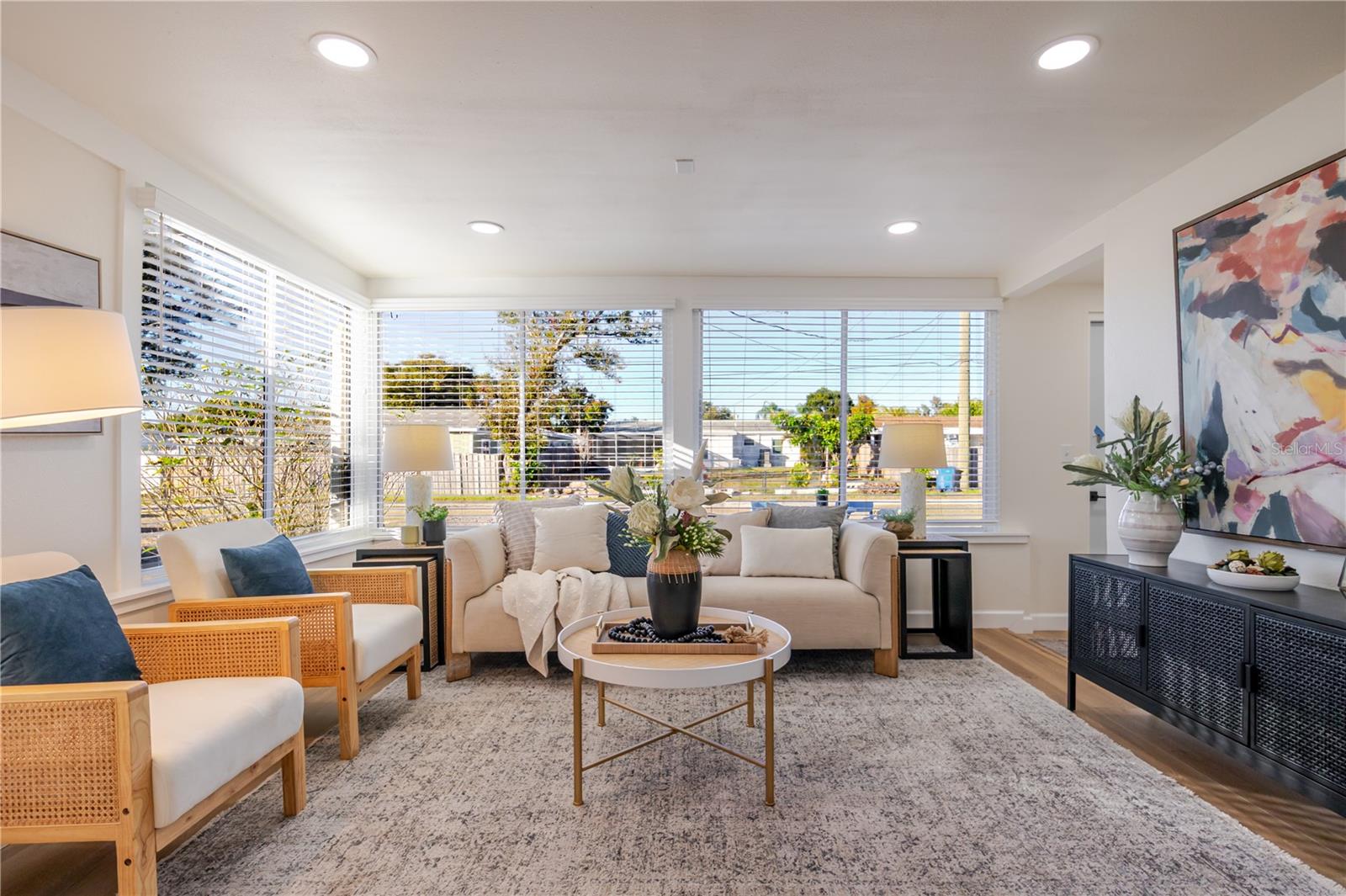 Welcome to this beautifully freshly remodeled 1133 square foot 3-bedroom, 2-bath home located in the sought-after St. Petersburg area. Thoughtfully updated throughout, this home offers a modern, functional layout paired with timeless finishes—along with major system upgrades for peace of mind. Inside, you’ll find all-new luxury vinyl plank flooring, fresh interior paint, and updated lighting fixtures that create a bright, cohesive feel across the home. The kitchen features quartz countertops, contemporary cabinetry, an open, refreshed layout, and brand-new stainless steel appliances, making it ideal for both everyday living and entertaining. Both bathrooms have been fully updated with new vanities, quartz vanity tops, modern fixtures, and stylish tile designs, delivering a clean, contemporary look throughout. Each space has been carefully finished to feel cohesive and move-in ready. Recent improvements include a brand-new 2024 AC system and a 2016 roof with a newly replaced flat roof section at the rear of the home (2024), offering added efficiency and long-term value. Step outside to a brand-new paver patio, perfect for hosting guests or relaxing outdoors. The sizable backyard provides ample space for entertaining, pets, or future customization. Additional highlights include alley access, driveway parking, and a spacious one-car garage, providing both convenience and storage. With thoughtful upgrades inside and out, this home delivers modern comfort with functional outdoor space in one of St. Petersburg’s most desirable locations, close to shopping and entertainment, just 10–15 minutes from downtown St. Petersburg and 10–15 minutes to St. Pete Beach. Buyer to verify all listing details and square footage measurements.