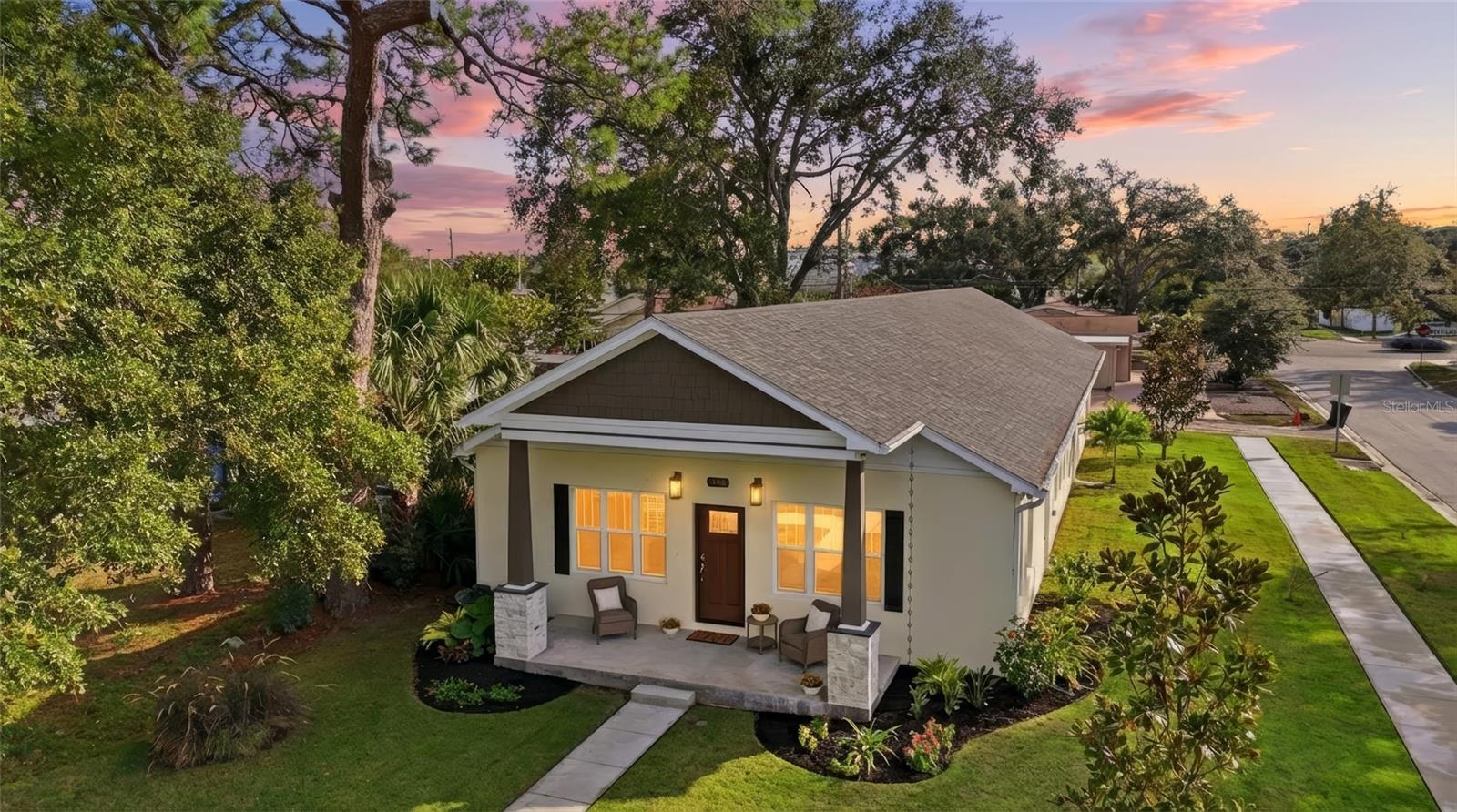 One or more photo(s) has been virtually staged. An exceptional opportunity to own a thoughtfully crafted, custom single-story residence in the heart of St. Petersburg’s coveted Allendale/ Five Points district - beautifully designed, meticulously built, and outside of a flood zone. This 2,200 SF, 3 bedrooms, 2.5 bath block home blends timeless design with modern performance, featuring impact-rated low-E windows and doors, refined luxury vinyl plank flooring, custom closets, and a one of a kind chef’s kitchen appointed with painted cabinetry to the ceiling, quartz countertops, herringbone backsplash, an expansive island, upgraded Samsung appliances, and elegant under-cabinet lighting. The primary suite offers a spa-like retreat with a soaking tub, marble walk-in shower, and dual vanities. Beyond its striking aesthetic, this home exceeds standard construction with mechanical upgrades rarely found in new builds, from the open-cell spray foam insulation for superior energy efficiency and sound control, the 30-year architectural shingle roof with 5-year labor warranty, to the recirculation pump that delivers instant hot water throughout the home. Also constructed for your comfort with app-controlled Rheem HVAC, CAT 5e and USB pre-wiring, and infrastructure for future whole-home water filtration. A two-car EV ready garage with insulated door, additional attic storage, exterior clean-out connection for an RV, adds daily convenience. Every detail was designed with intention. Outdoors, sustainable landscaping is supported by a private well-pump irrigation system, complemented by magnolia trees, coastal grasses, rain chains, and leaf-filter gutters. Ideally situated just blocks from Tampa Bay and a short walk to Coffee Pot Park, neighborhood cafés, shops, and dining, this residence offers a rare combination of luxury living, intelligent construction, and an irreplaceable St. Petersburg location. This is not just a beautiful new home, it’s a smart, energy-efficient investment designed to perform for years to come.
