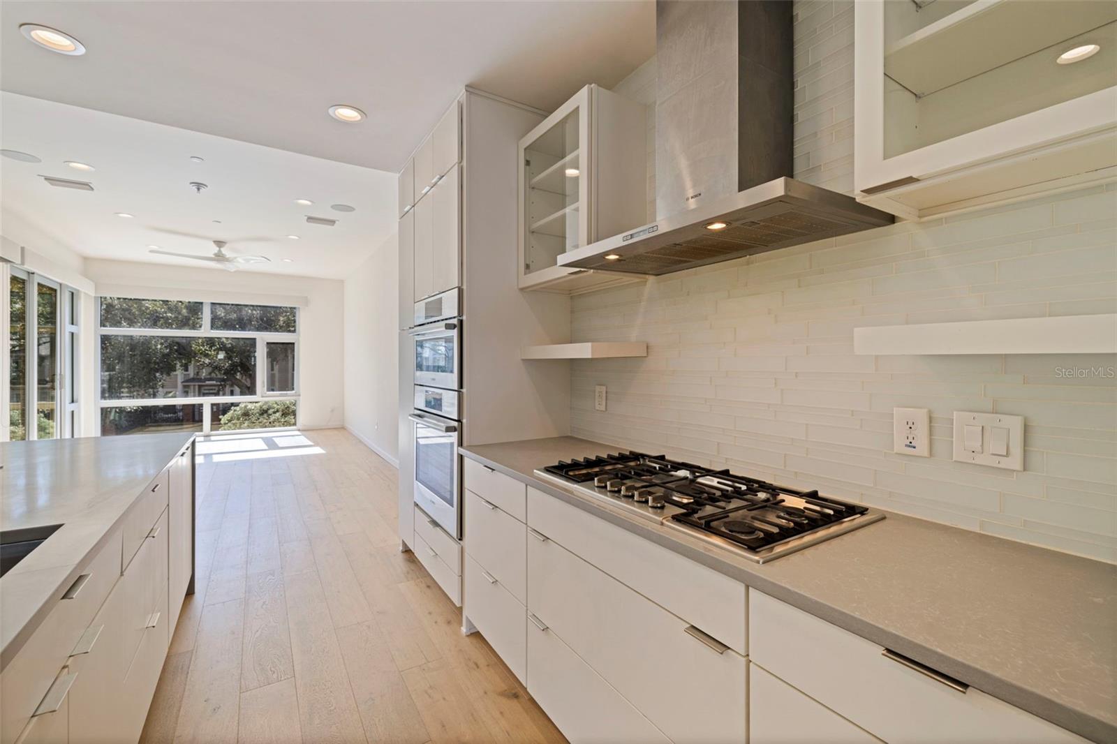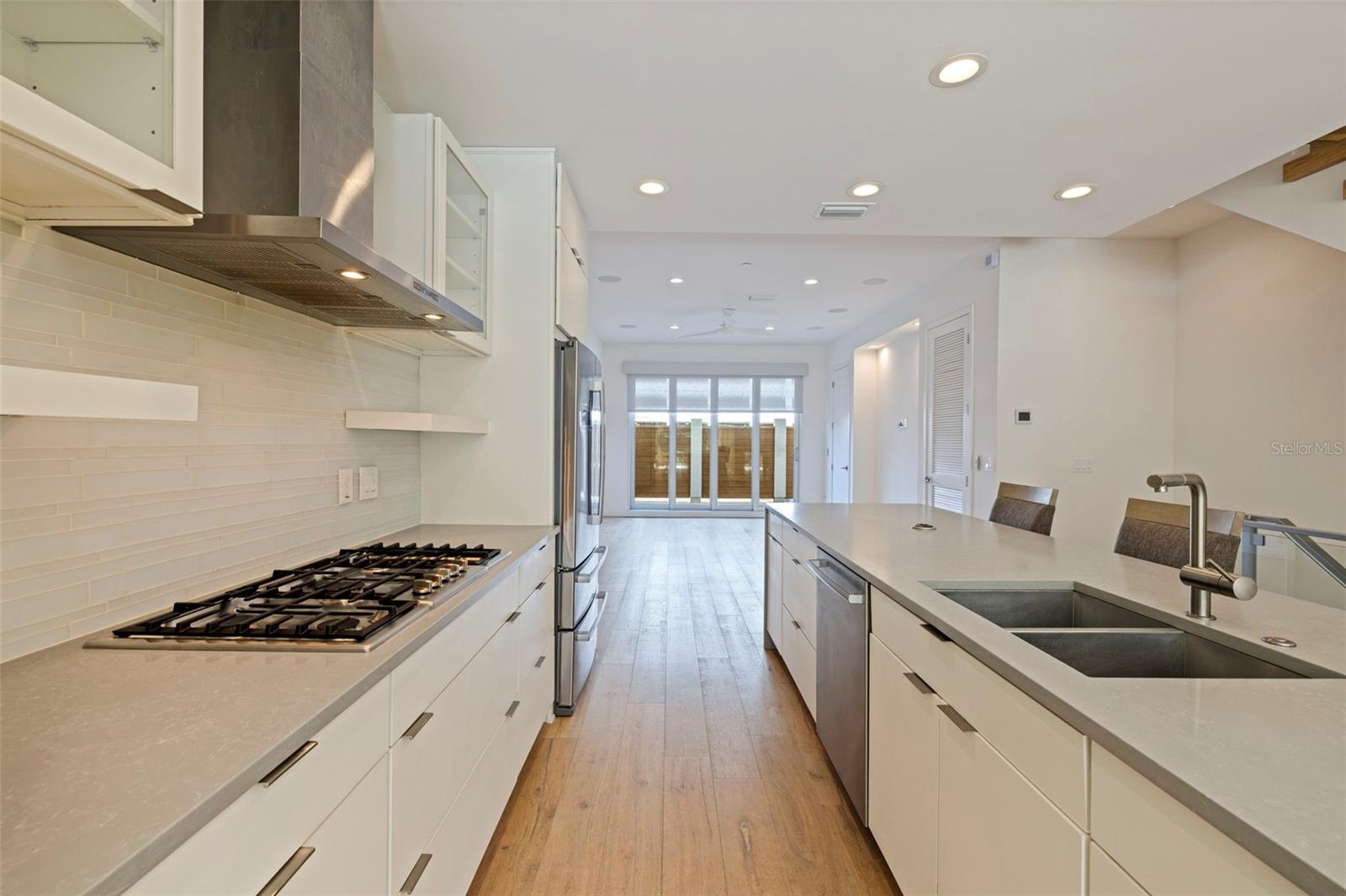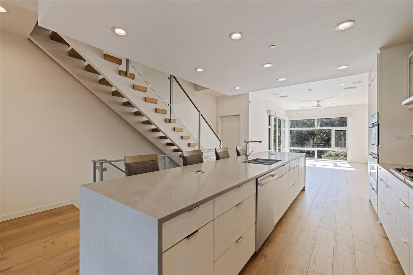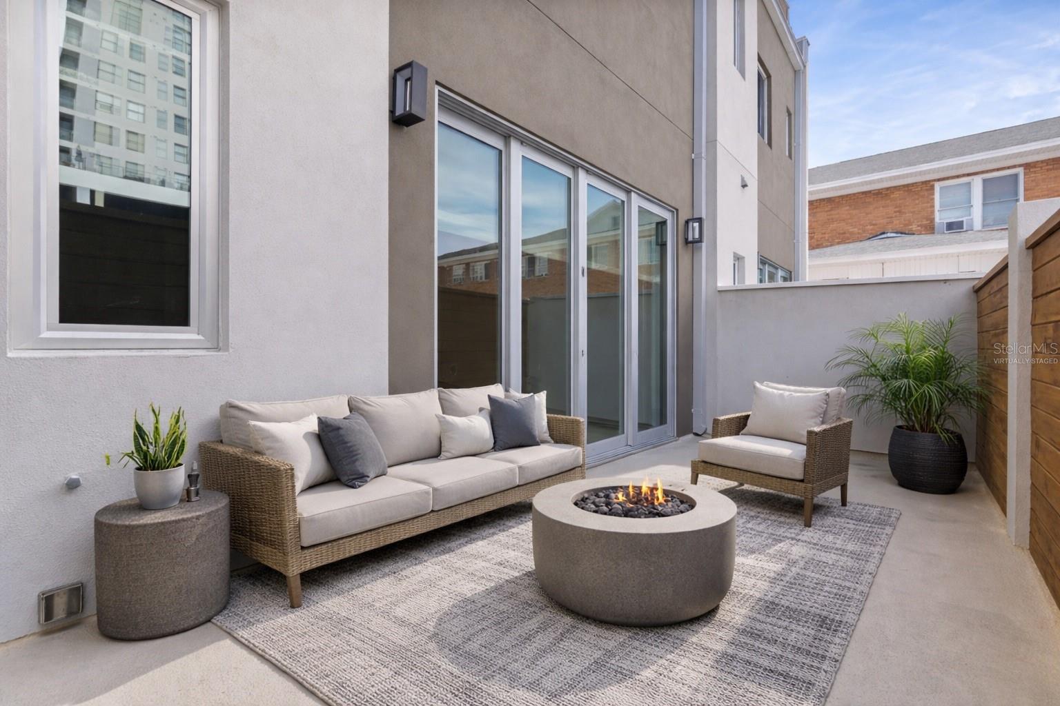 One or more photo(s) has been virtually staged. LIV233 is an exclusive boutique enclave of three luxury townhomes ideally located near Beach Drive, The Vinoy, and the heart of Downtown St. Pete. These four-story, three-bedroom, 4.5-bath plus den contemporary residences feature private elevators, full home automation, surround sound on every level, custom open staircases with glass railings, floor-to-ceiling windows, three balconies, and a private rooftop terrace with views. The chef’s kitchen offers a 14-foot island, waterfall-edge quartz countertops, floor-to-ceiling wood cabinetry, gas range, wine cooler, and Bosch appliances. French white oak and ceramic tile flooring flow throughout. The primary suite includes a private balcony, dual walk-in closets, soaking tub, walk-in shower, and double-sink vanity. Masonry construction with contemporary cypress accents, expansive private outdoor space, one garage space, one covered exterior space, and private storage complete this exceptional offering.